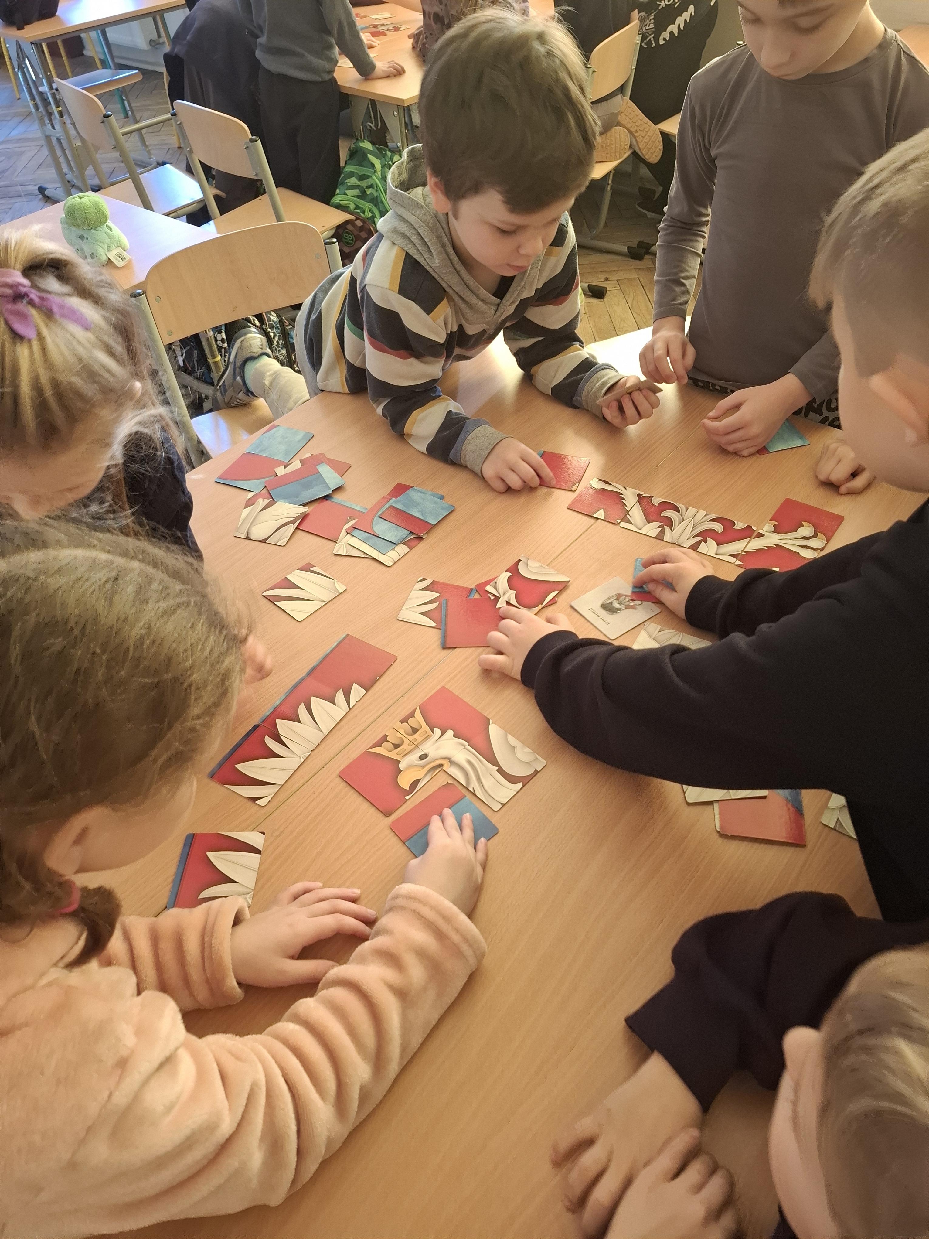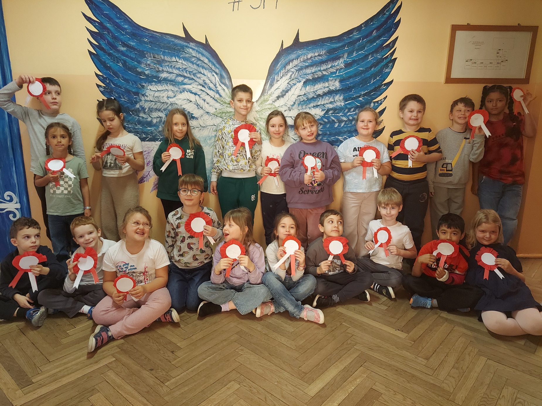 Klasy młodsze tego dnia również z zaangażowaniem włączyły się w obchody związane z tematyką patriotyzmu. Uczniowie rozmawiali o symbolach narodowych, poznawali ważne wydarzenia z historii Polski oraz przygotowywali piękne prace plastyczne i występy.