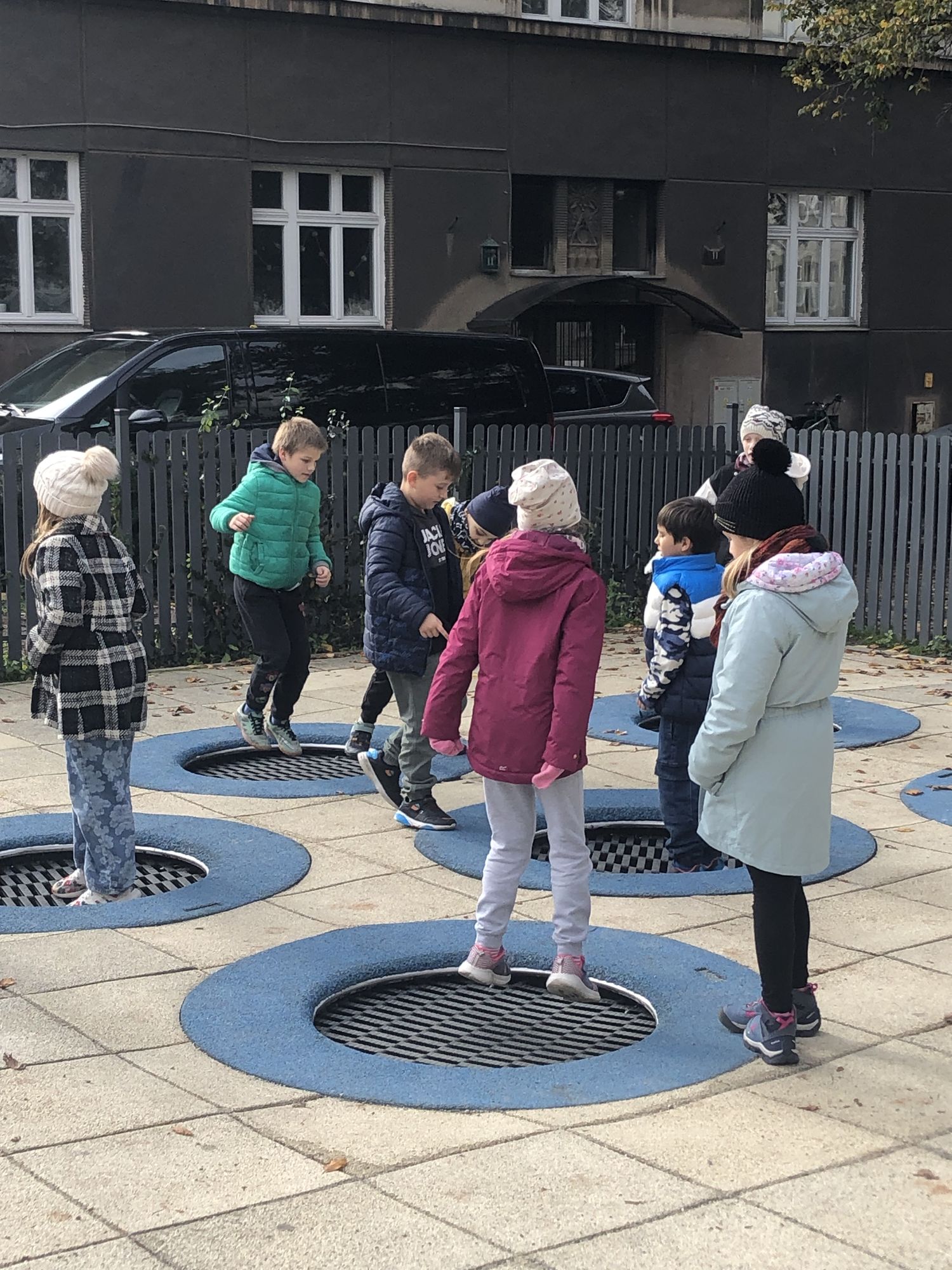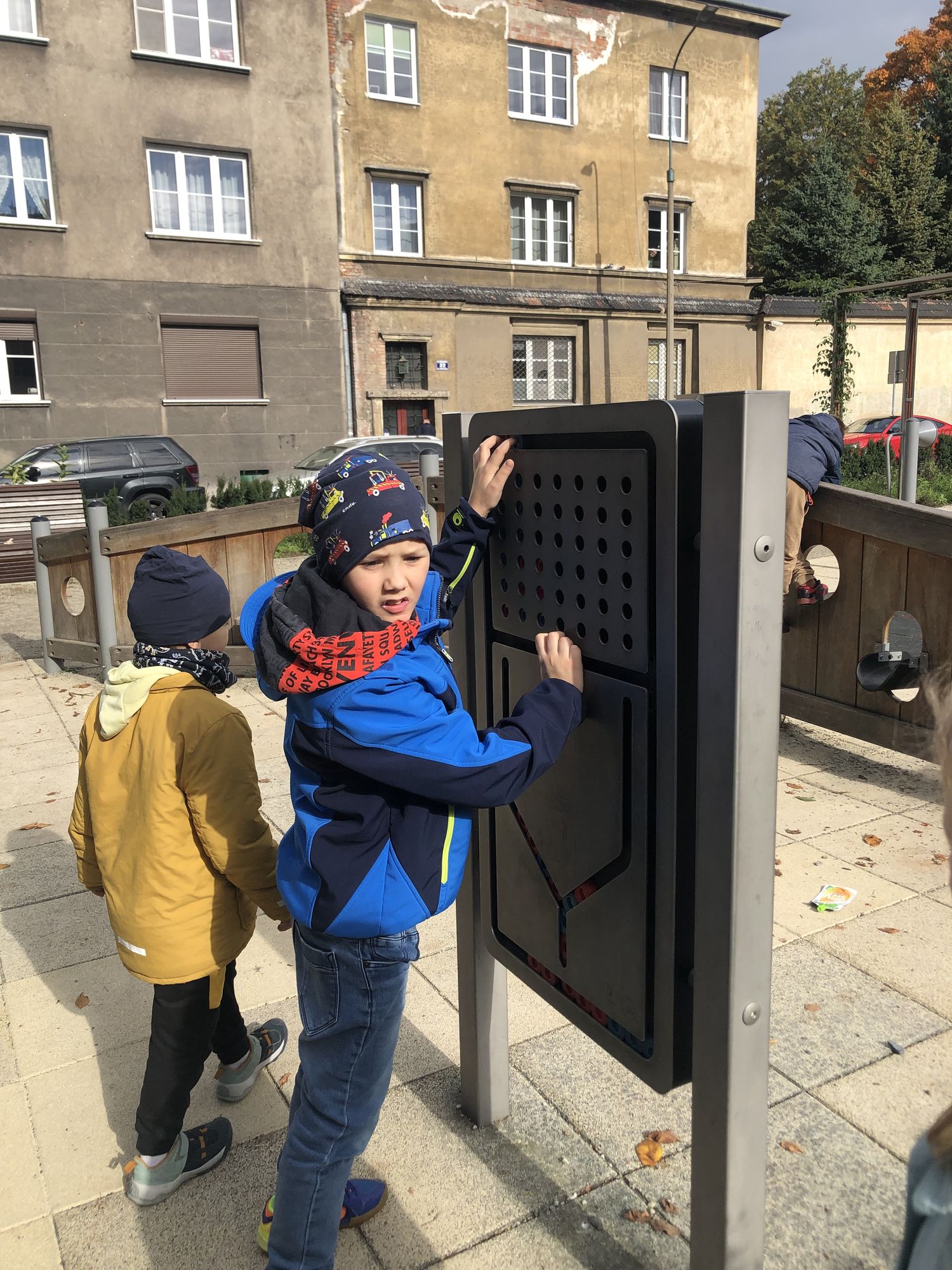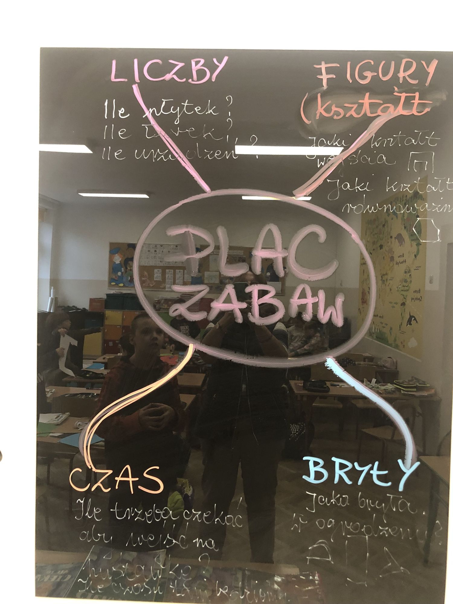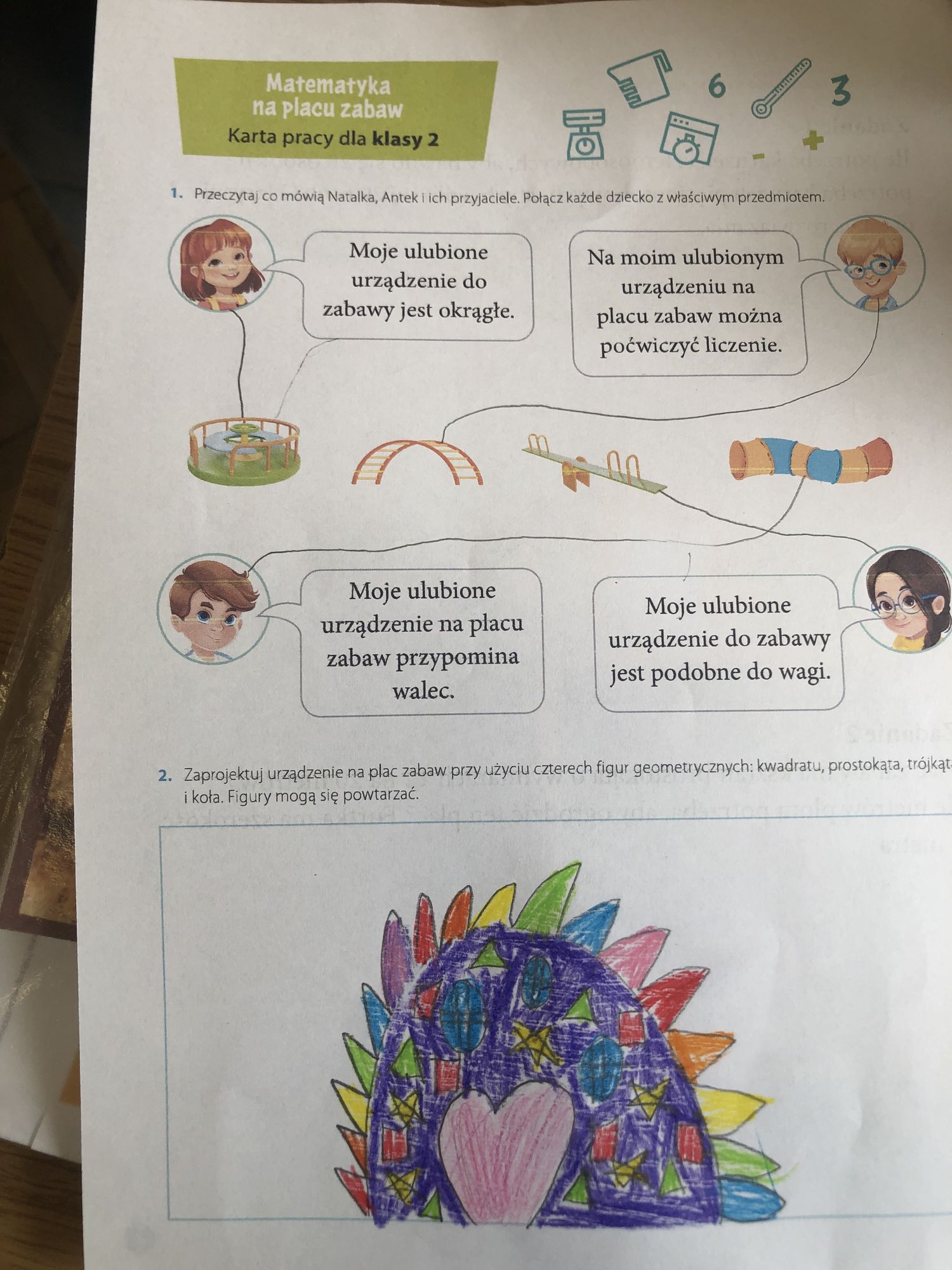 W dniach 15-17 października dzieci z klasy II b zrealizowały I moduł projektu matematycznego „Natalka i Antek w Świecie Wielkiej Matematyki”. Na pobliskim placu zabaw wytropiły: koła, kwadraty, prostokąty, a nawet pięciokąt! W elementach ogrodzeń, ławek, bramy: półkule, stożki, prostopadłościany i walce! Policzyły siebie, ilość płytek chodnikowych, ilość przyrządów na placu, koszy na śmieci i siedzisk. Wyznaczyły czas oczekiwania w kolejce do trampolin! A w szkole… w szkole obliczyły obwód prostokąta, rozdzieliły dzieci na karuzeli, narysowały, a potem skonstruowały swoje własne place zabaw: z papieru, śmieci znalezionych na podłodze, plasteliny. Okazało się, że matematyki na placu zabaw jest bardzo dużo. Trzeba tylko uważnie się przyglądać!