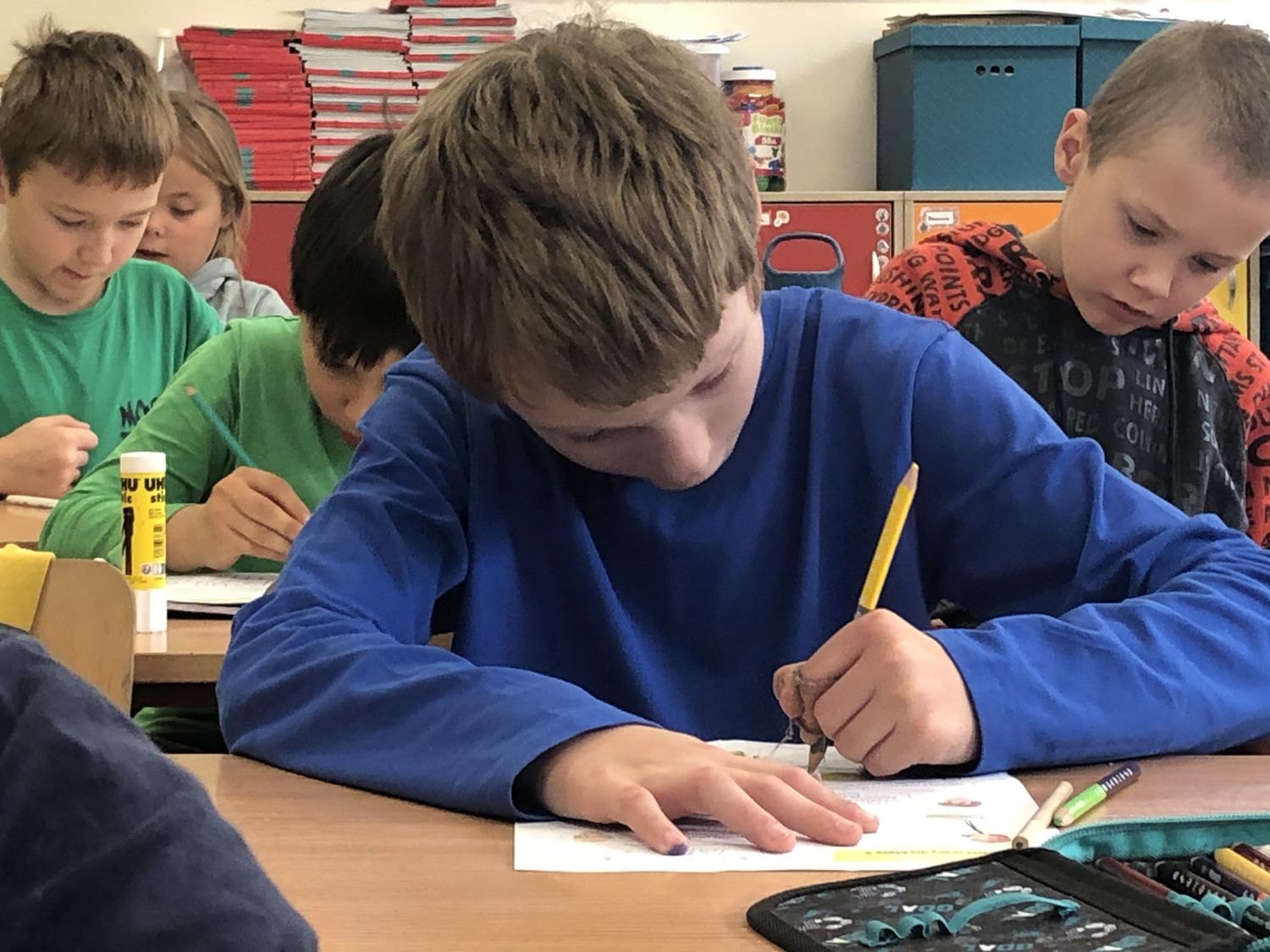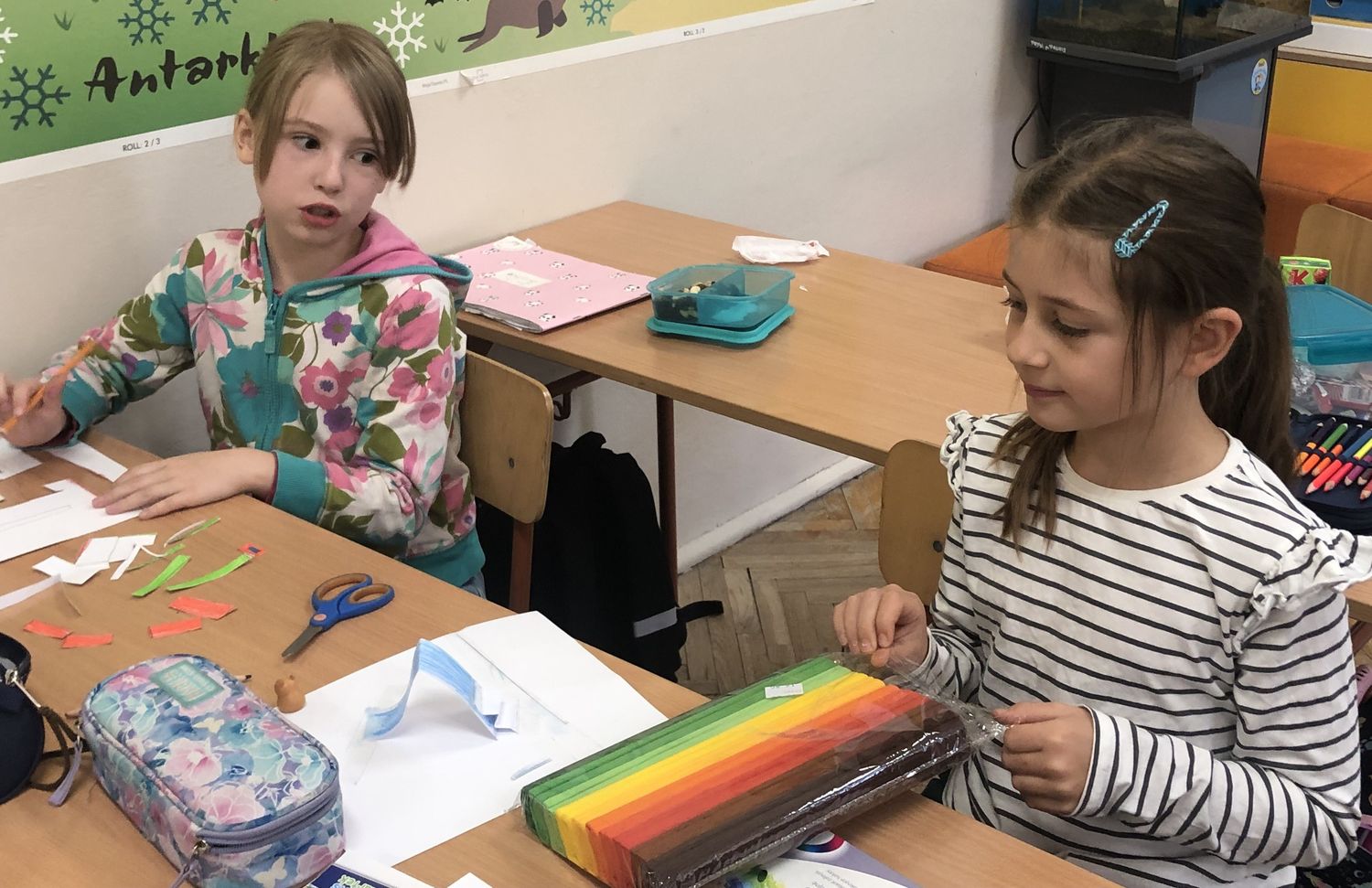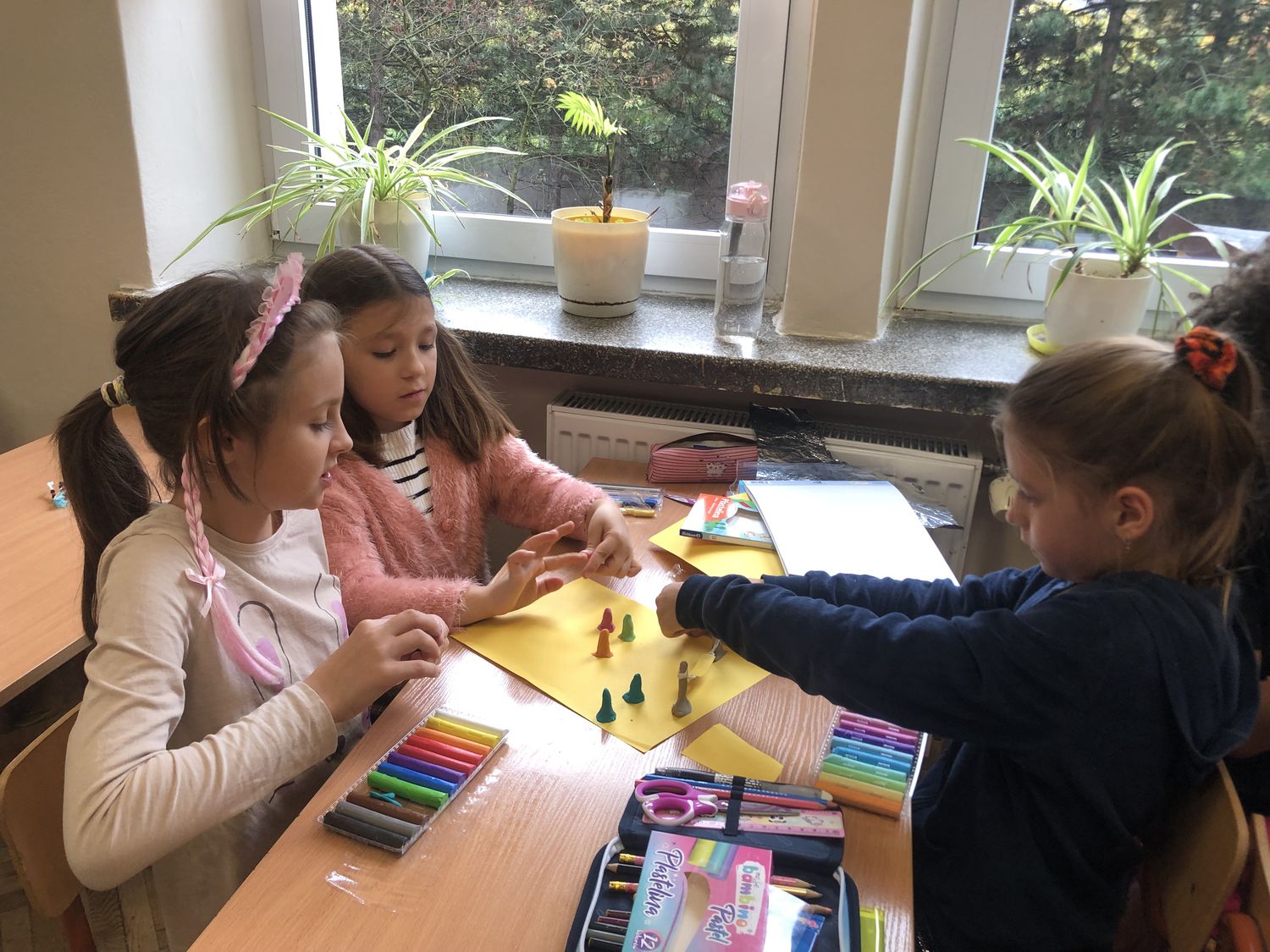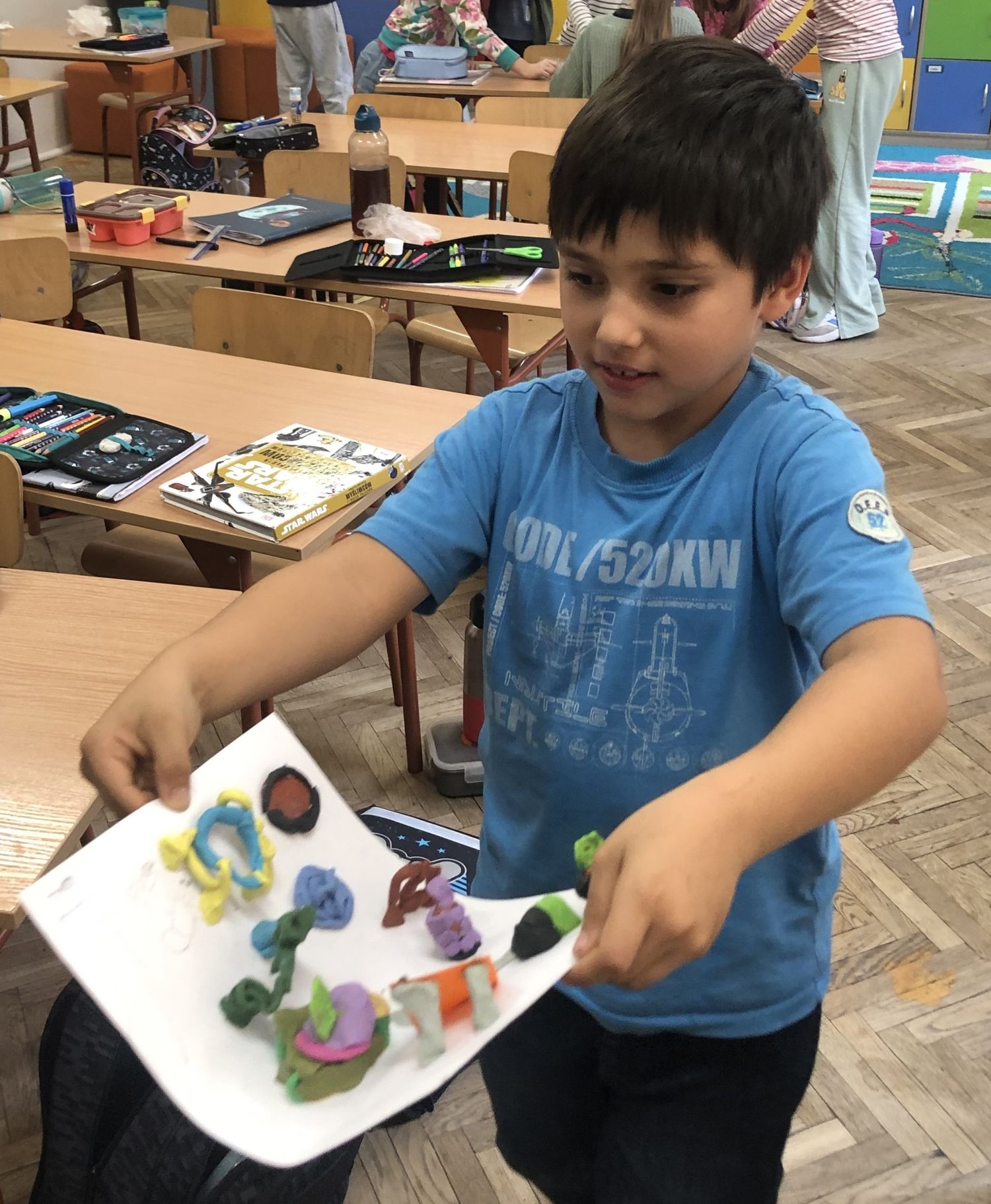 W dniach 15-17 października dzieci z klasy II b zrealizowały I moduł projektu matematycznego „Natalka i Antek w Świecie Wielkiej Matematyki”. Na pobliskim placu zabaw wytropiły: koła, kwadraty, prostokąty, a nawet pięciokąt! W elementach ogrodzeń, ławek, bramy: półkule, stożki, prostopadłościany i walce! Policzyły siebie, ilość płytek chodnikowych, ilość przyrządów na placu, koszy na śmieci i siedzisk. Wyznaczyły czas oczekiwania w kolejce do trampolin! A w szkole… w szkole obliczyły obwód prostokąta, rozdzieliły dzieci na karuzeli, narysowały, a potem skonstruowały swoje własne place zabaw: z papieru, śmieci znalezionych na podłodze, plasteliny. Okazało się, że matematyki na placu zabaw jest bardzo dużo. Trzeba tylko uważnie się przyglądać!