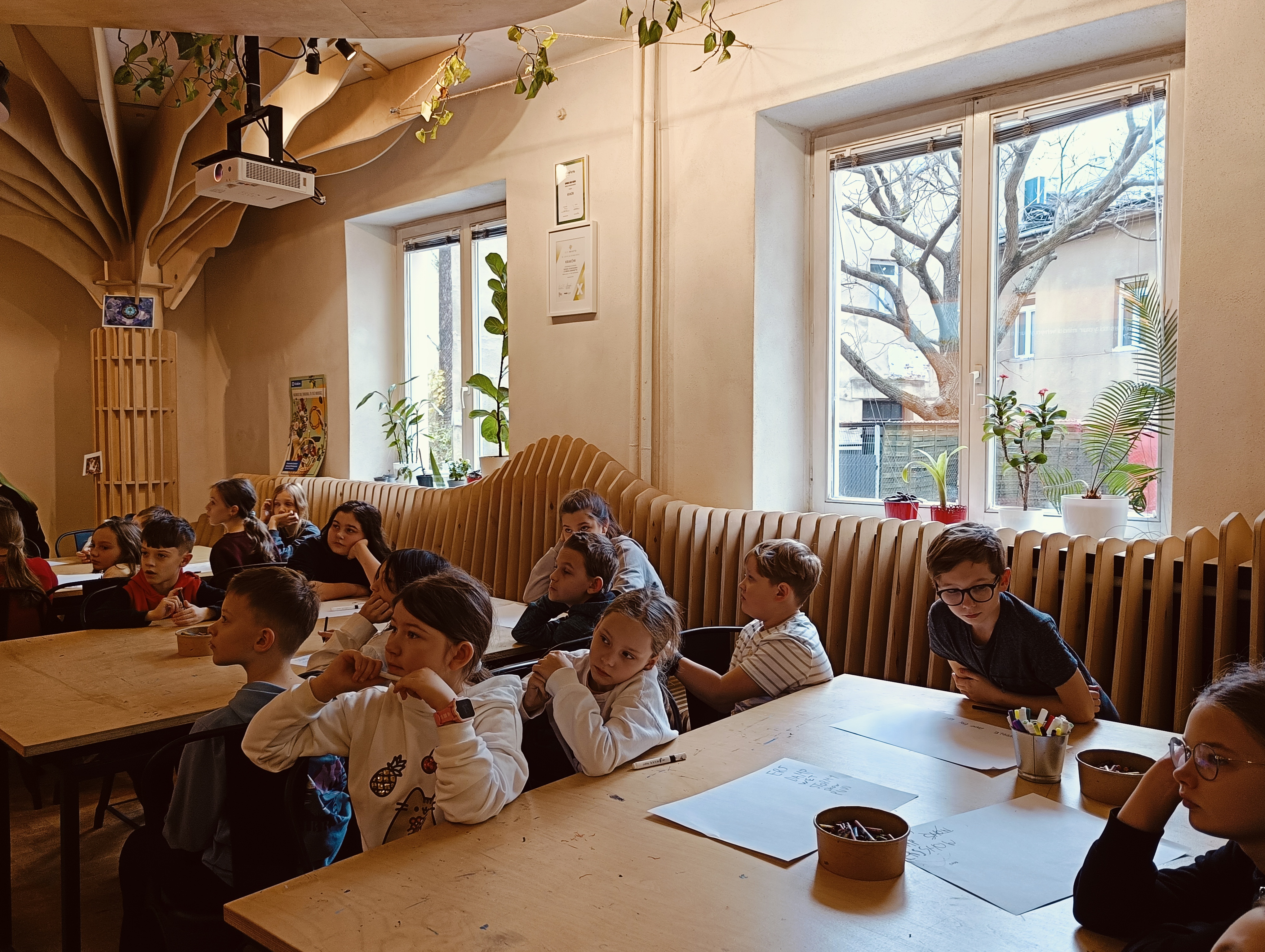 W ostatni czwartek klasa 4b poszukiwała odpowiedzi na pytanie „Czy istnieje szczęście?” podczas projekcji filmu Szczęściara, realizowanej w ramach lekcji filmowej projektu Nowe Horyzonty. Następnie uczniowie rozwijali swoje umiejętności językowe, biorąc udział w warsztatach „Pumpkin spice and everything nice” w Centrum Edukacji Klimatycznej, gdzie uczyli się mówić po angielsku o urokach jesieni.