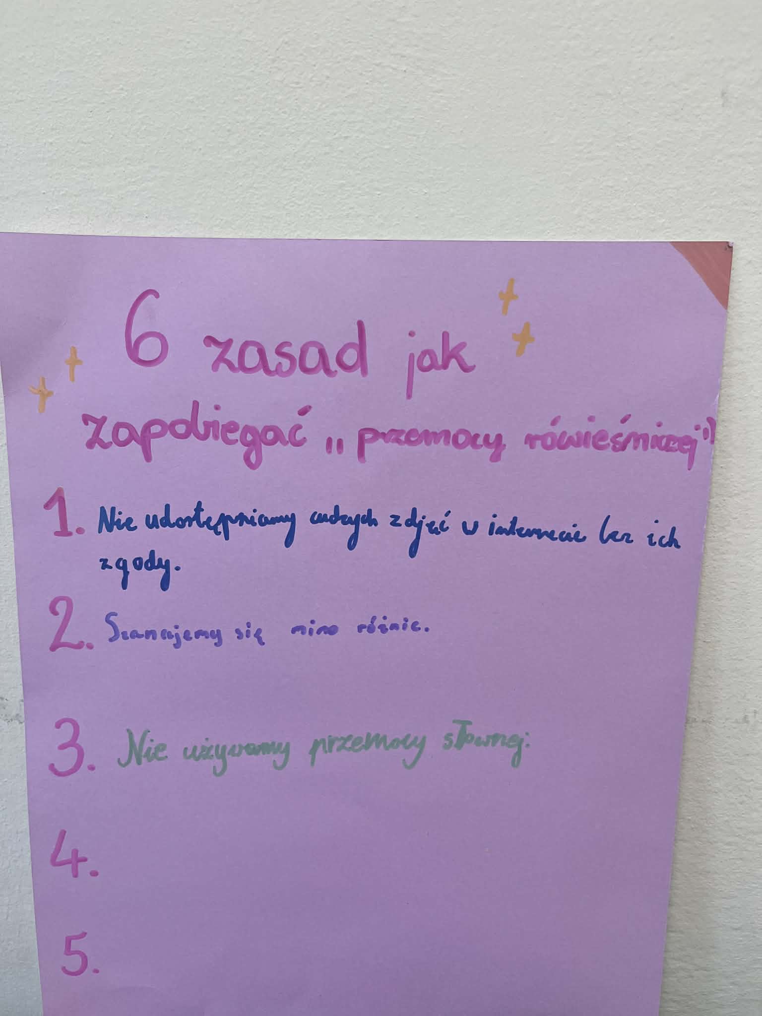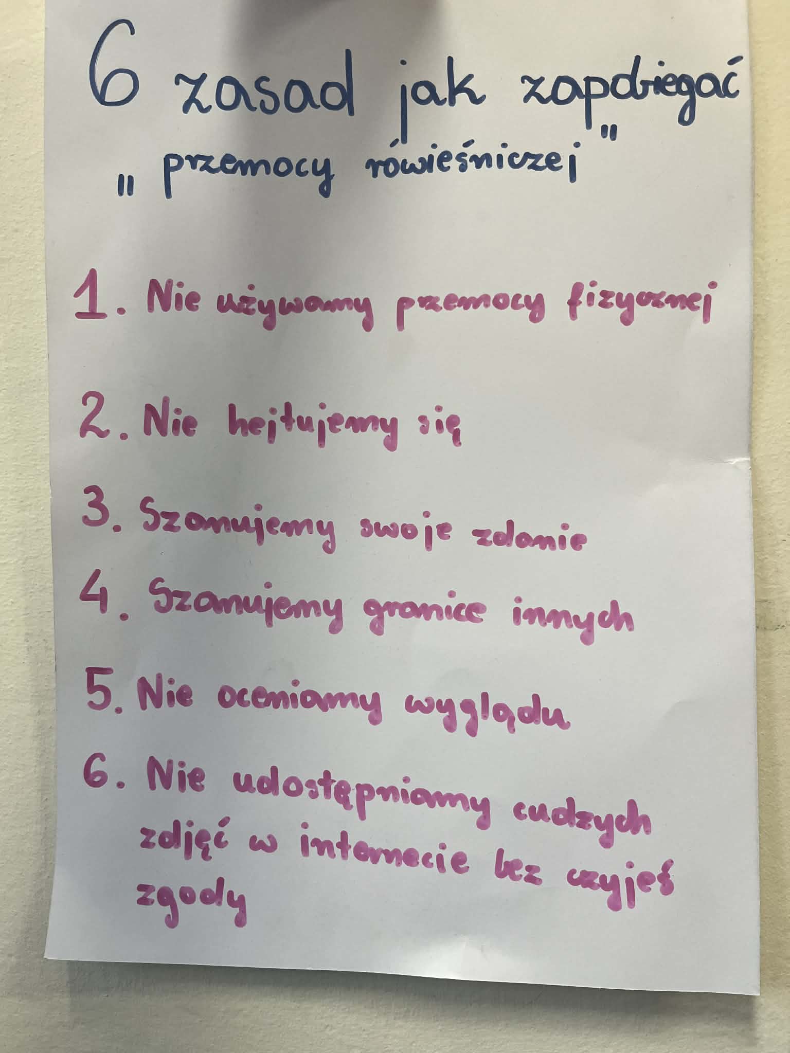 Nasza szkoła aktywnie włącza się w różnie działania, programy i projekty dotyczące przeciwdziałania przemocy rówieśniczej. Marzec był miesiącem, w którym szczególnie skupiliśmy się na tym zjawisku. Zespół Psychologiczno-Pedagogiczny opracował scenariusz i przeprowadził warsztaty dla Uczniów klas IV – VIII na temat radzenia sobie z przemocą. Uczniowie opracowywali także zasady zapobiegania i reagowania na przemoc rówieśniczą. Zapraszamy do zapoznania się z materiałami i obejrzenia efektów pracy naszych Uczniów.