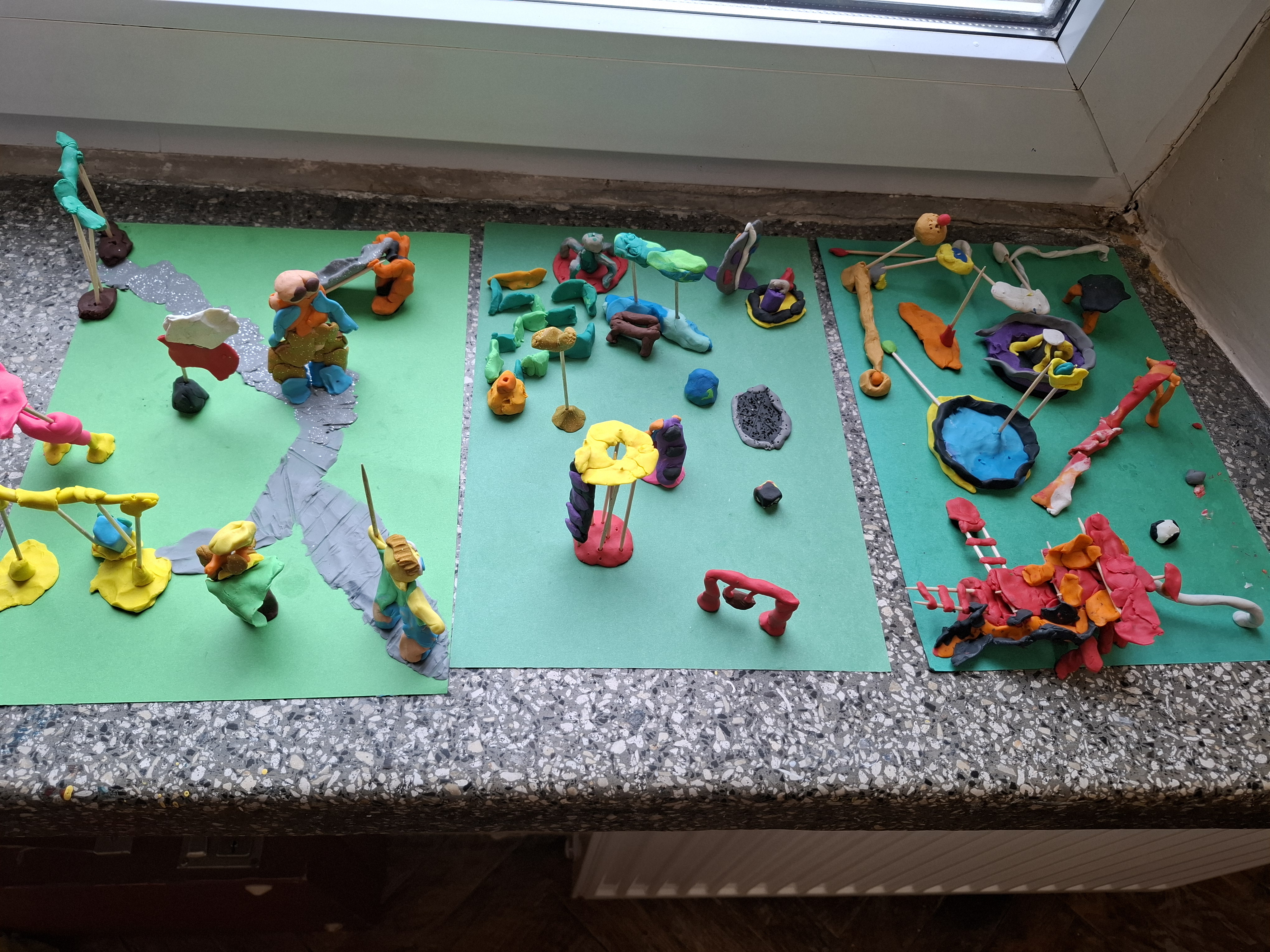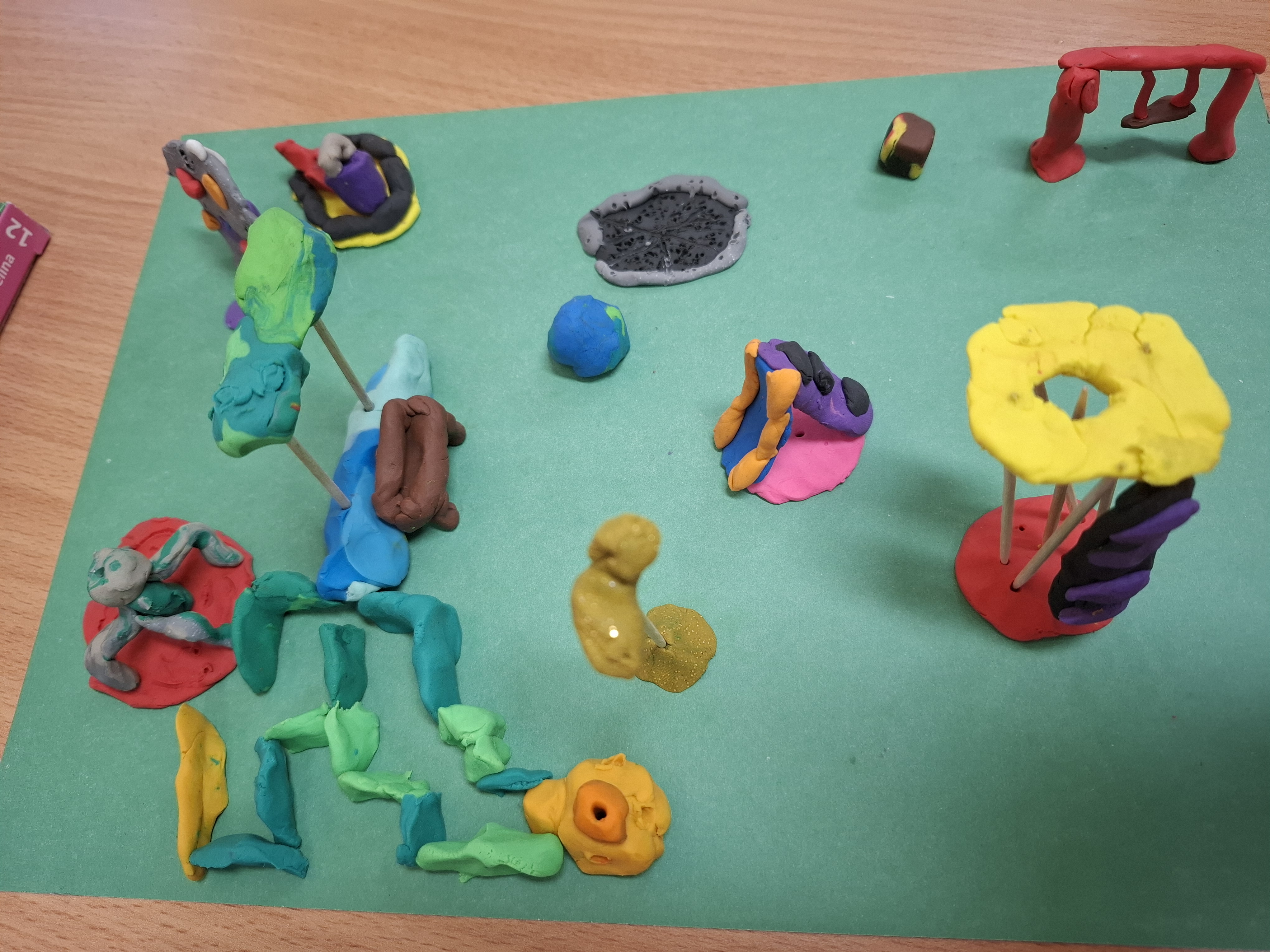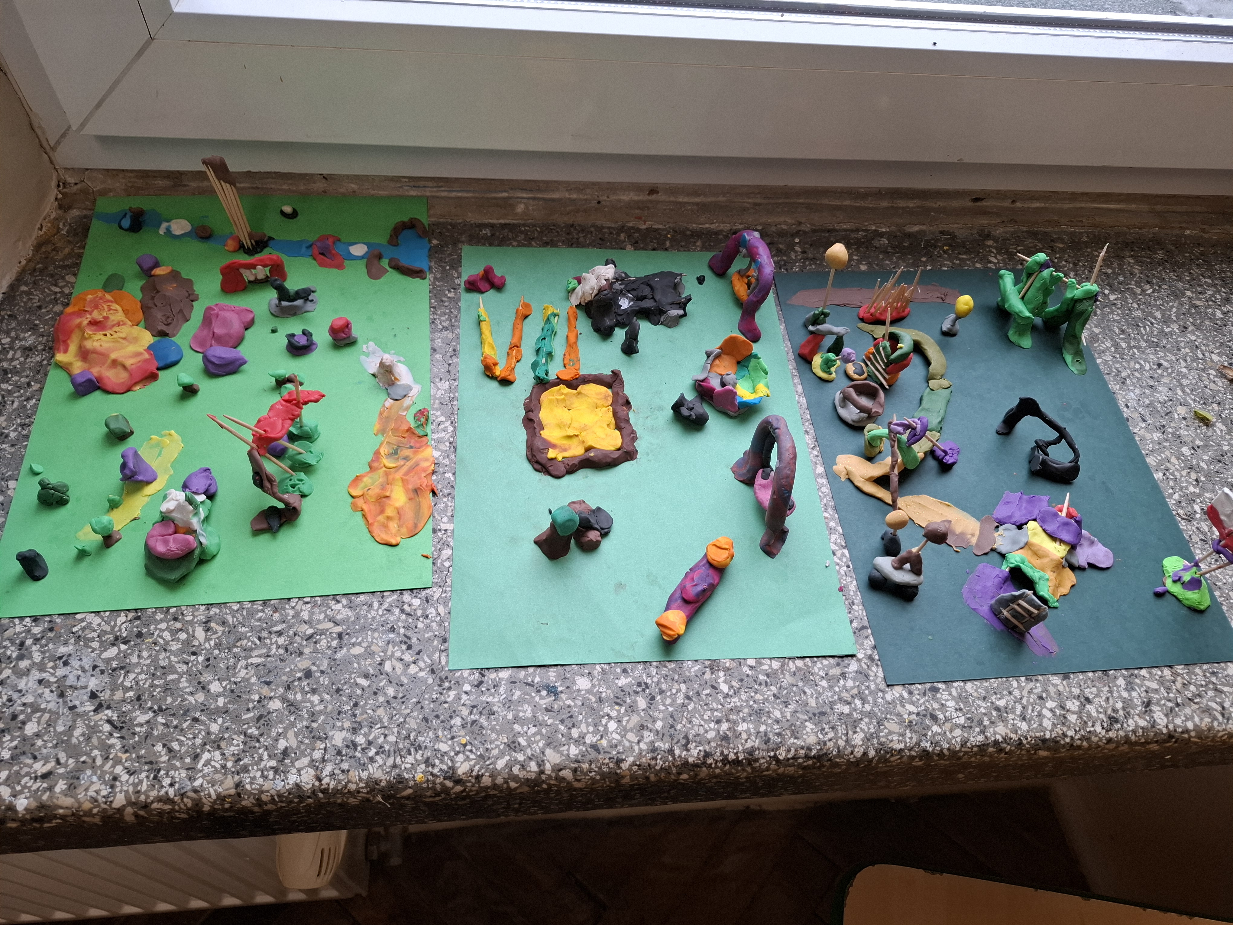 Klasa 1a zrealizowała pierwszy scenariusz projektu "Antek i Natalka w świecie wielkiej matematyki" - "Matematyka na placu zabaw". Ze względu na deszczowy dzień uczniowie odwiedzili plac zabaw wirtualnie. Na początku mieli trudność ze znalezieniem tam matematyki , ale po chwili podawali mnóstwo przykładów-liczenie drabinek, wieżyczek, zjeżdżalni, piaskownic, huśtawek... Jakie mają kształty różne sprzęty i jak są wysokie, od której godziny otwarty jest plac zabaw i o której go zamykają, ile czasu mogą bawić się konkretnego dnia, ile jest na nim dzieci, dziewczynek, chłopców... Wyliczaniu nie było końca. Po obejrzeniu filmu, na którym Antek i Natalka podawali swoje przykłady przystąpili do rozwiązywania zadań. Wielką zabawę mieli budując w grupach czteroosobowych własne place zabaw. Pomysły i ich realizacja widać na załączonych zdjęciach.