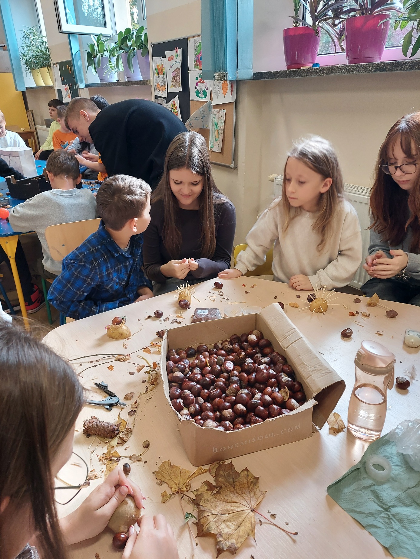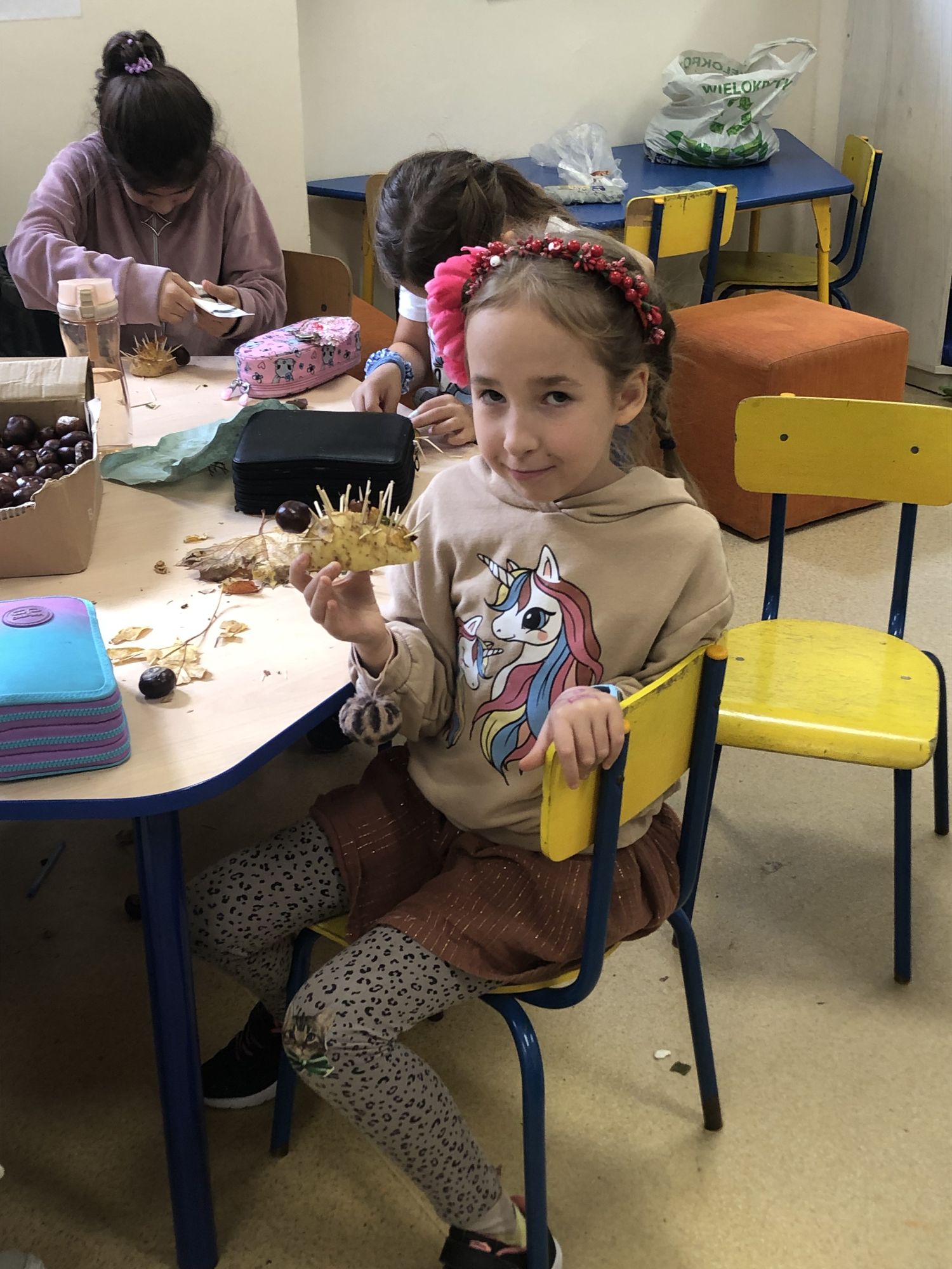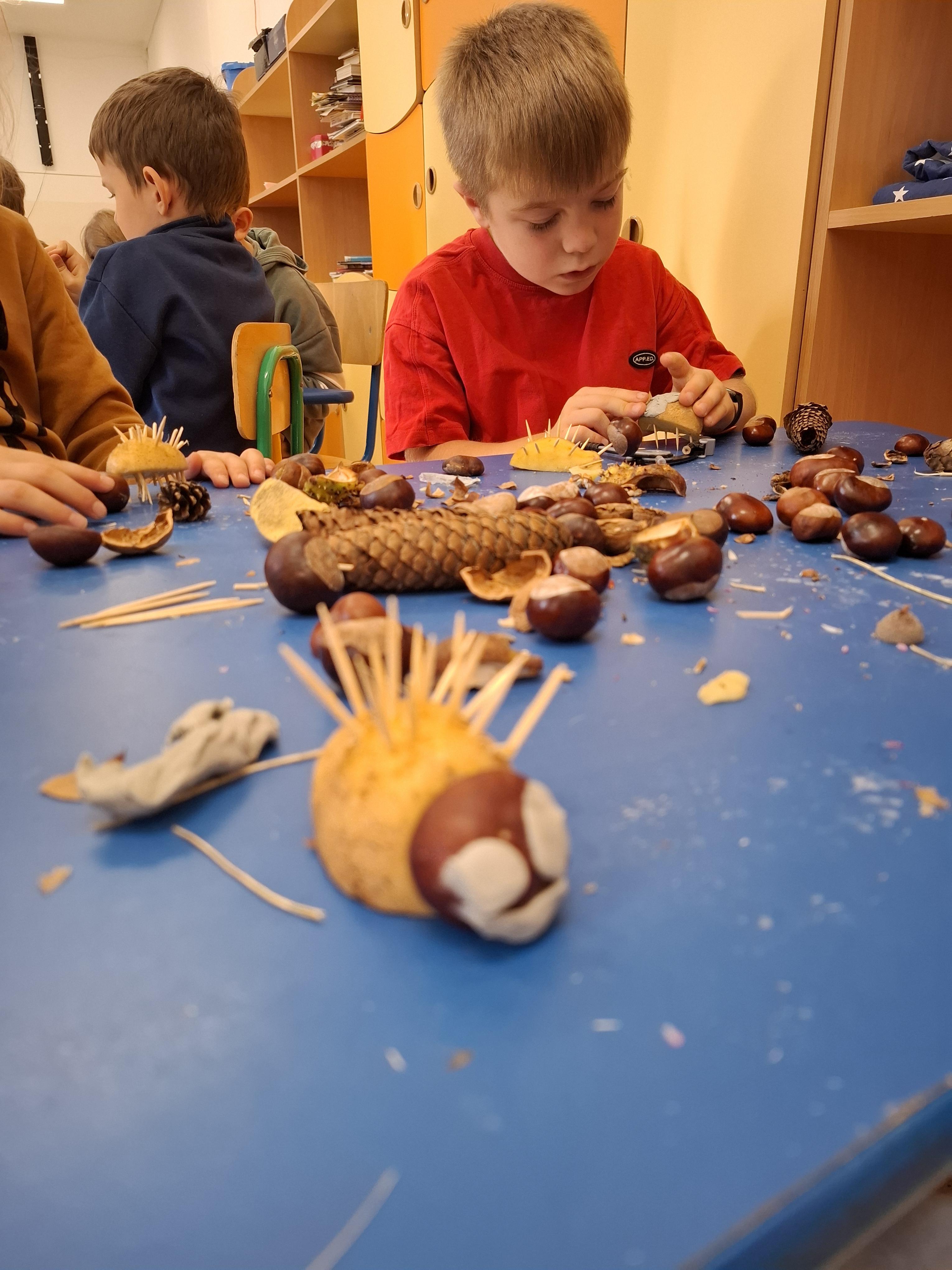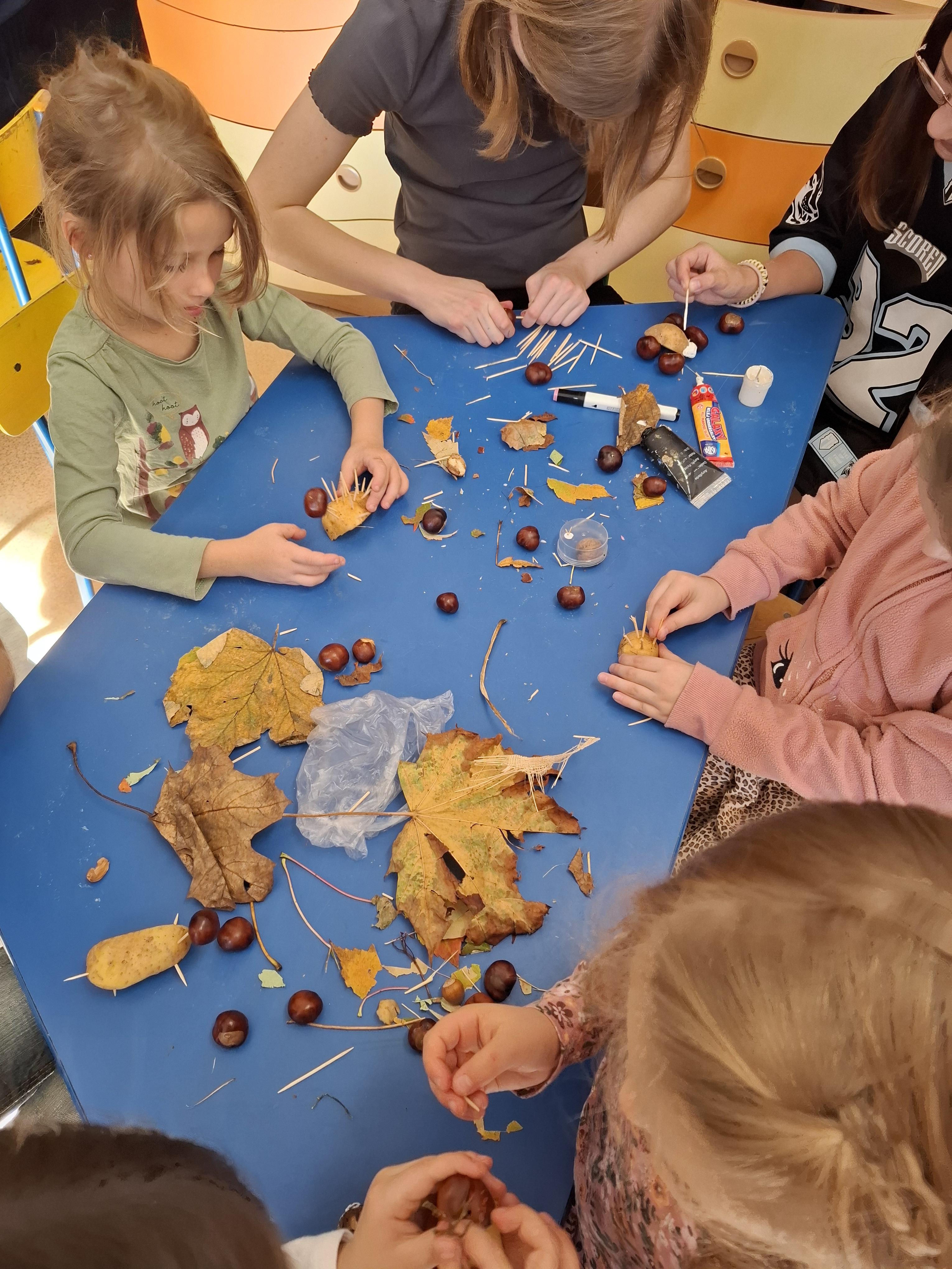 Na zakończenie powstawały wspaniałe jesienne ludki i ozdoby z darów natury – kasztanowe postacie, ziemniaczane jeżyki i szyszkowe kwiaty.