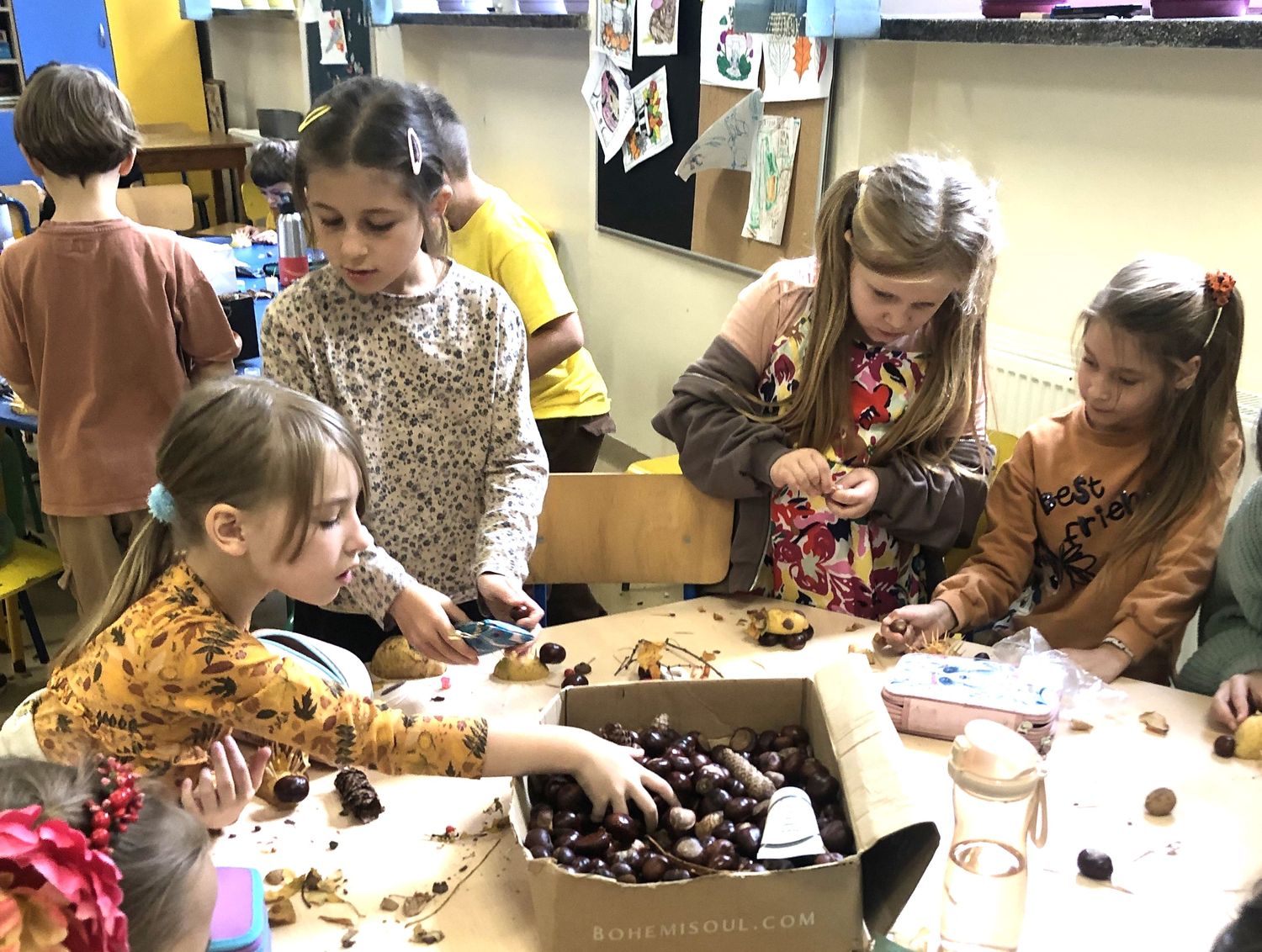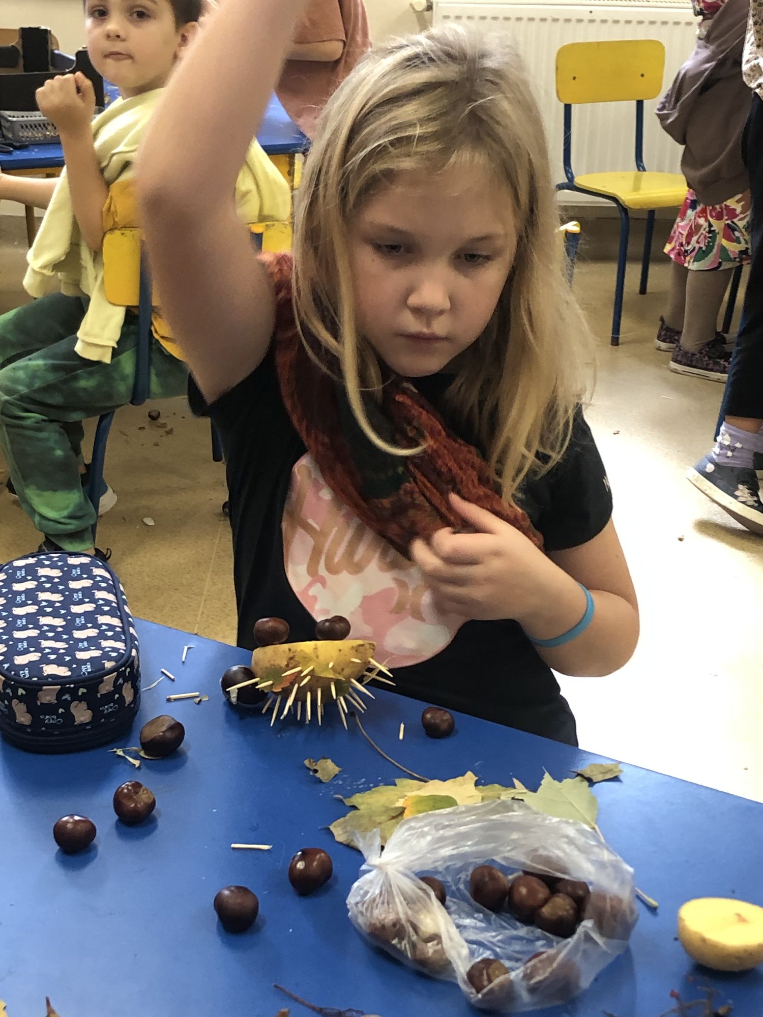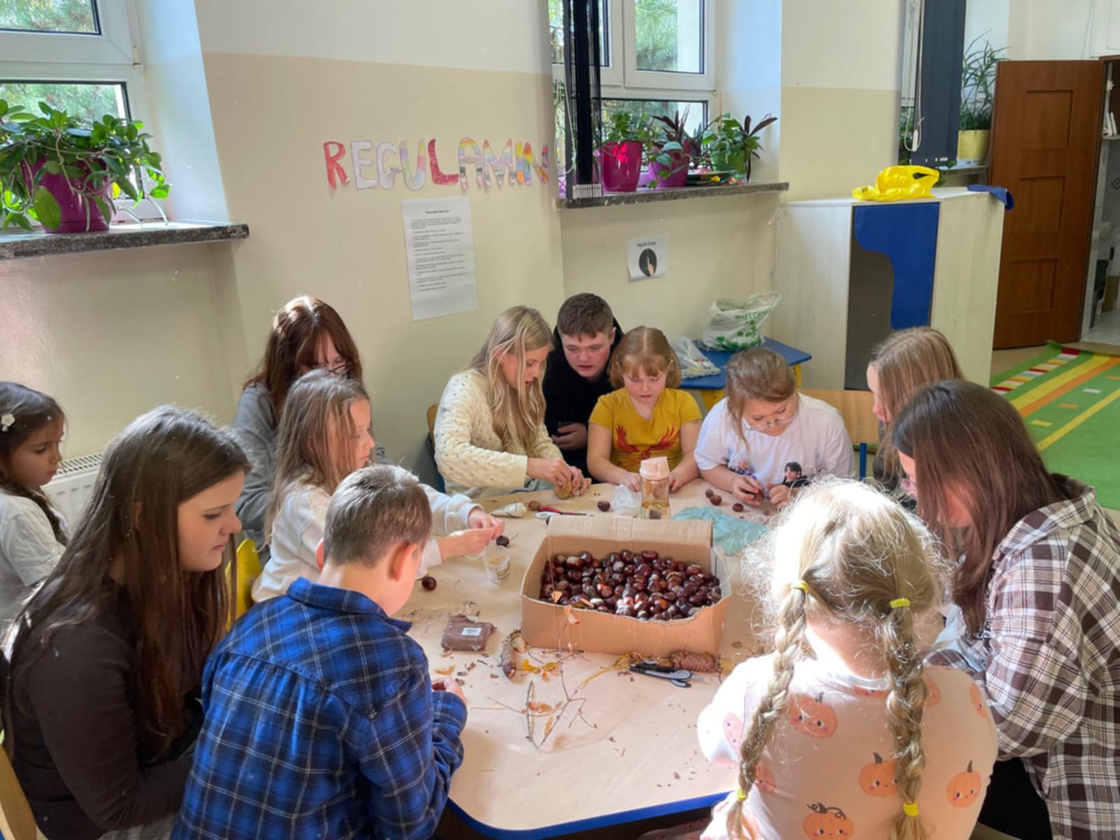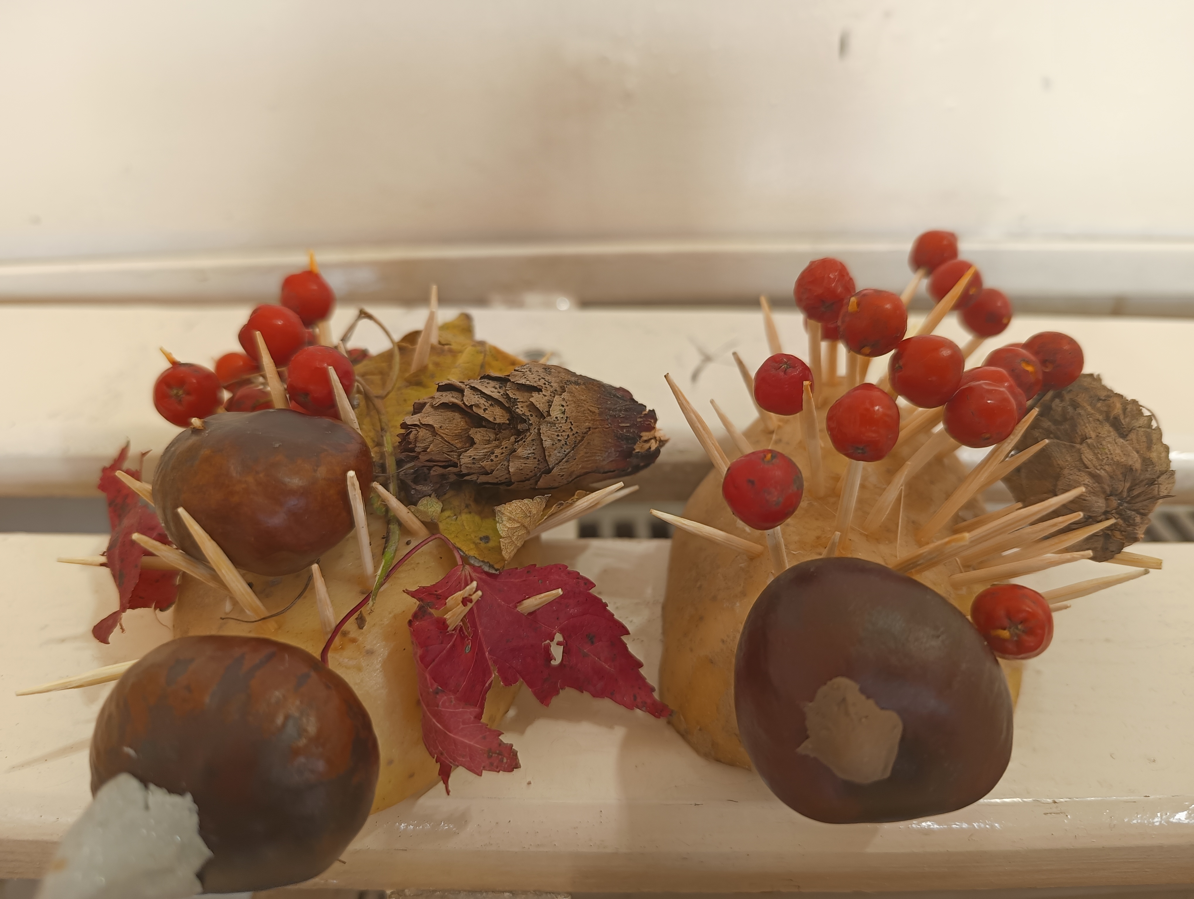 Na zakończenie powstawały wspaniałe jesienne ludki i ozdoby z darów natury – kasztanowe postacie, ziemniaczane jeżyki i szyszkowe kwiaty.