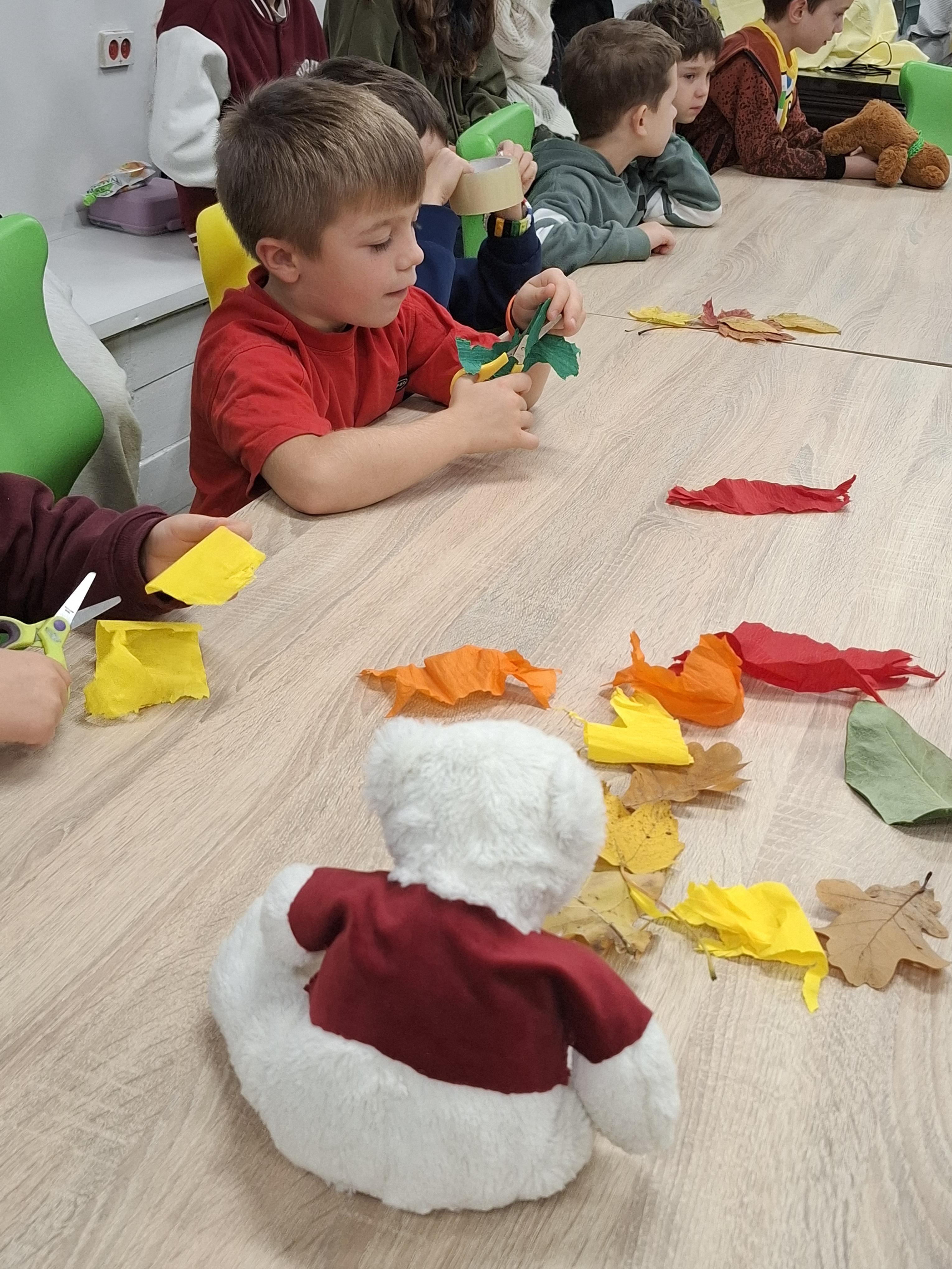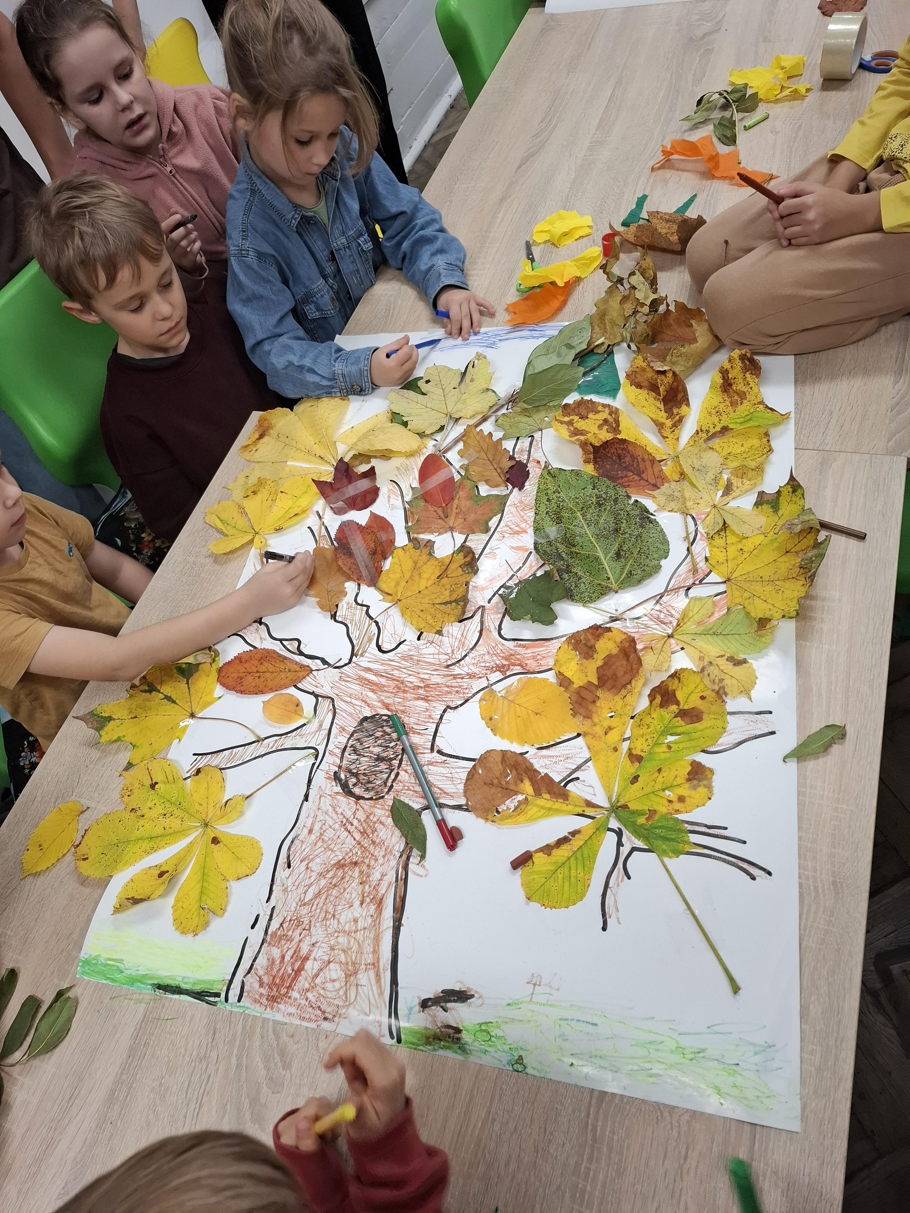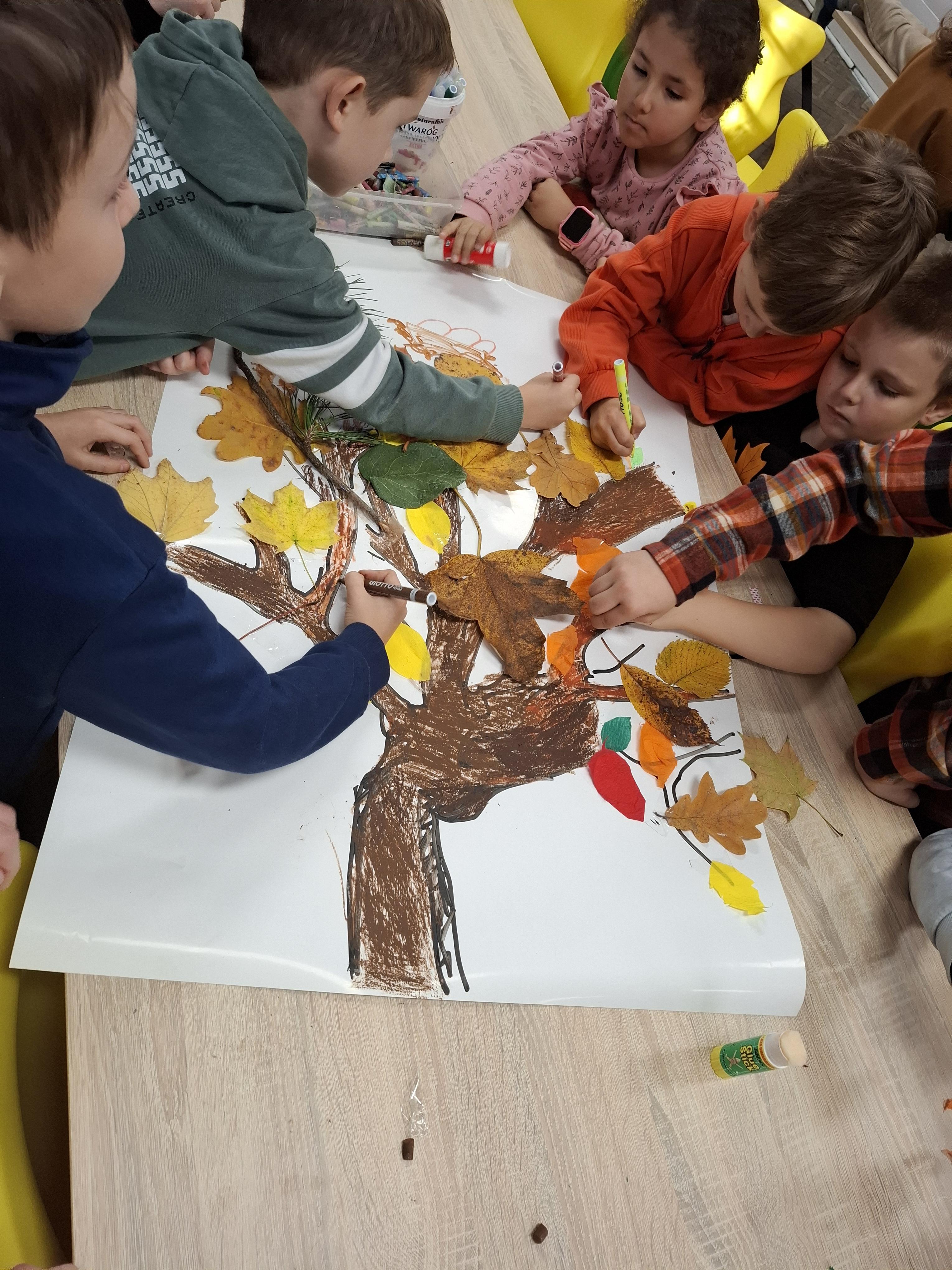 W sali 005 powstawało Drzewo Jesieni – barwne, wspólne dzieło stworzone z papieru i naturalnych materiałów.