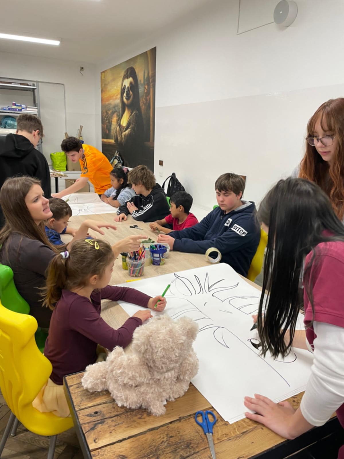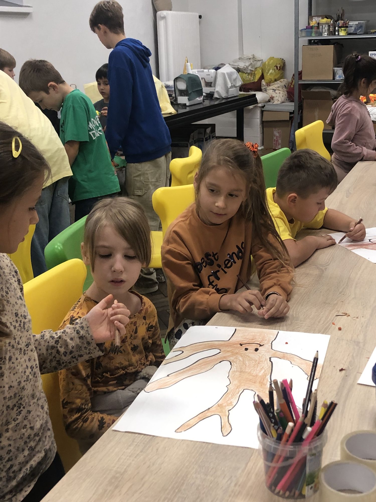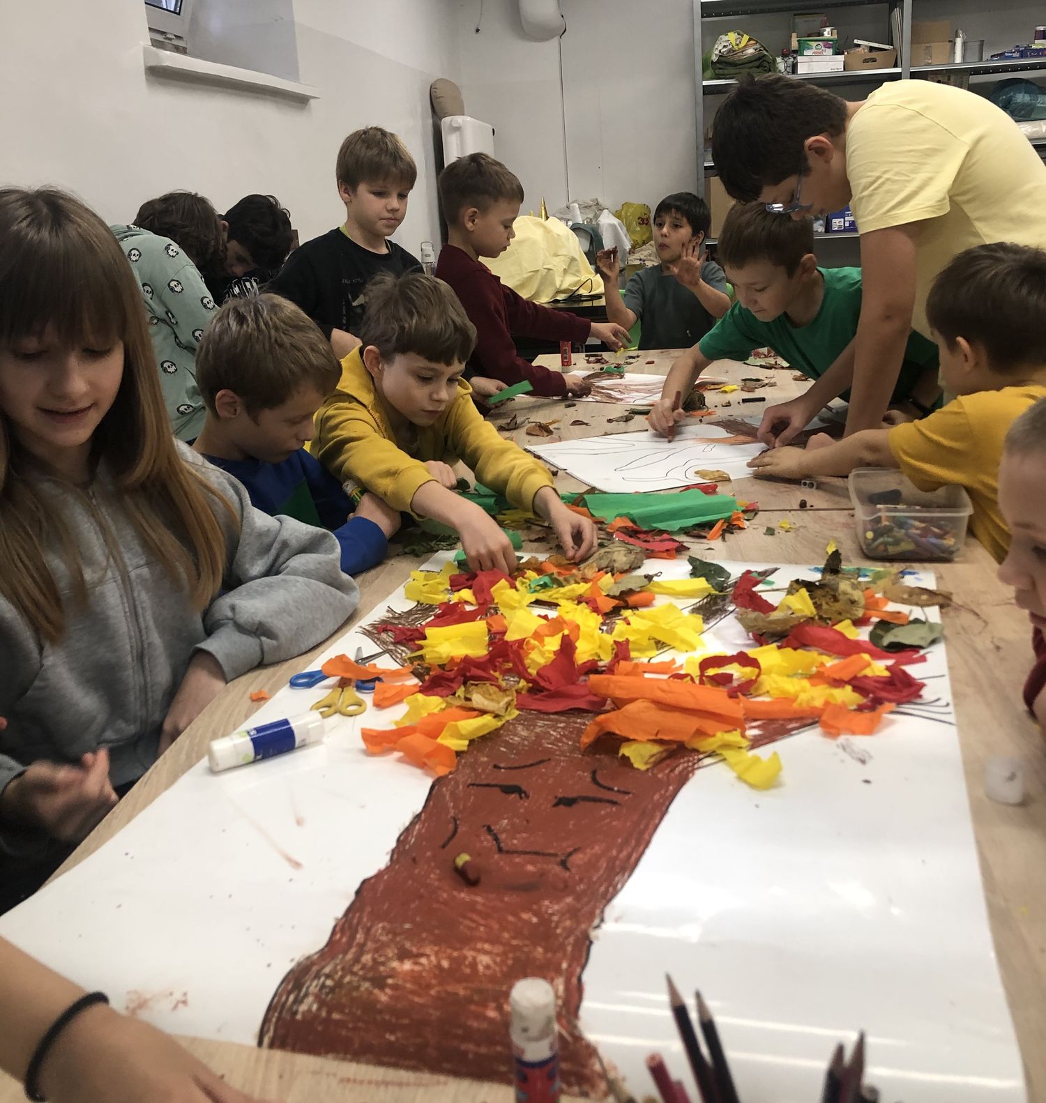W sali 005 powstawało Drzewo Jesieni – barwne, wspólne dzieło stworzone z papieru i naturalnych materiałów.