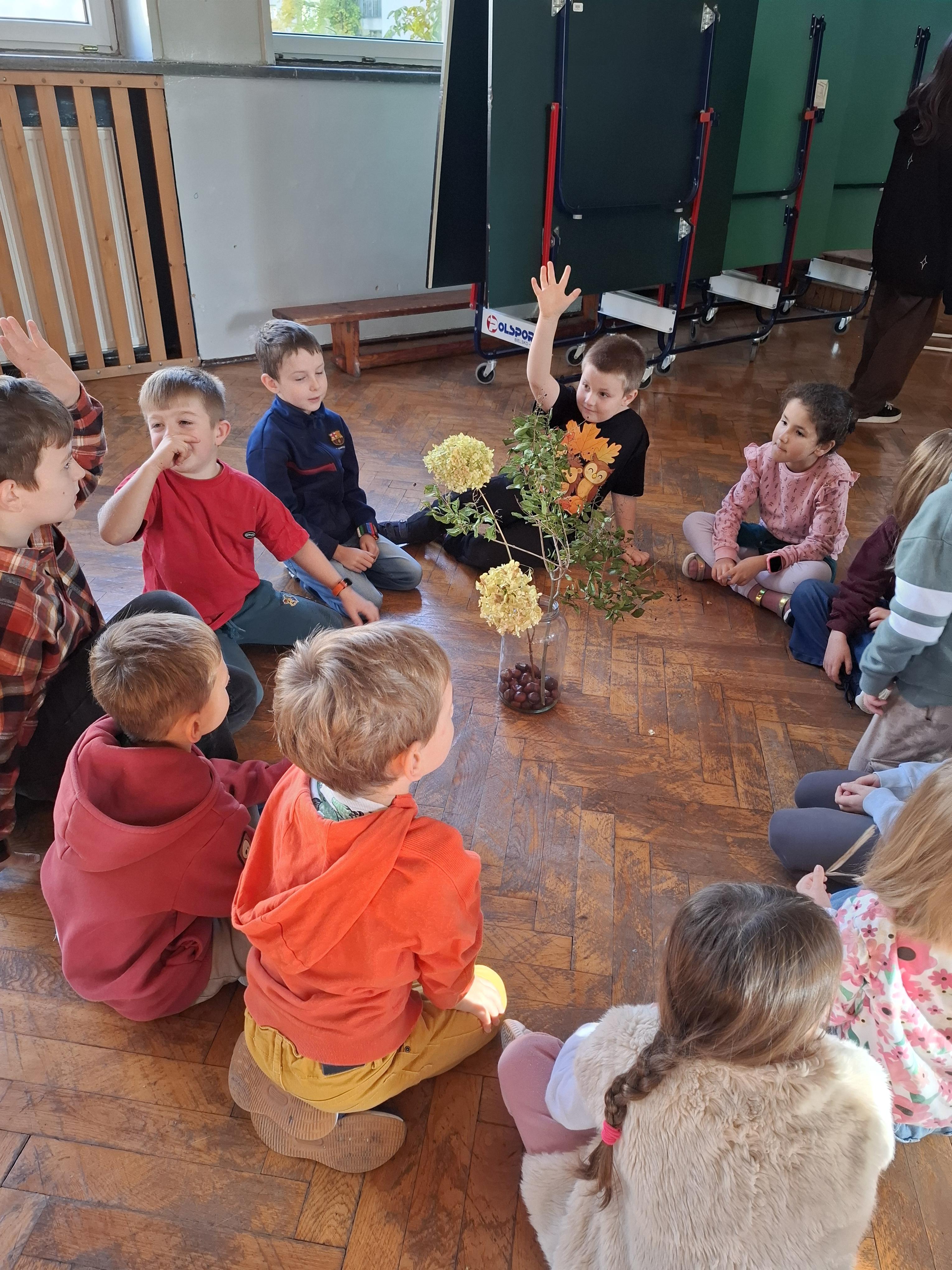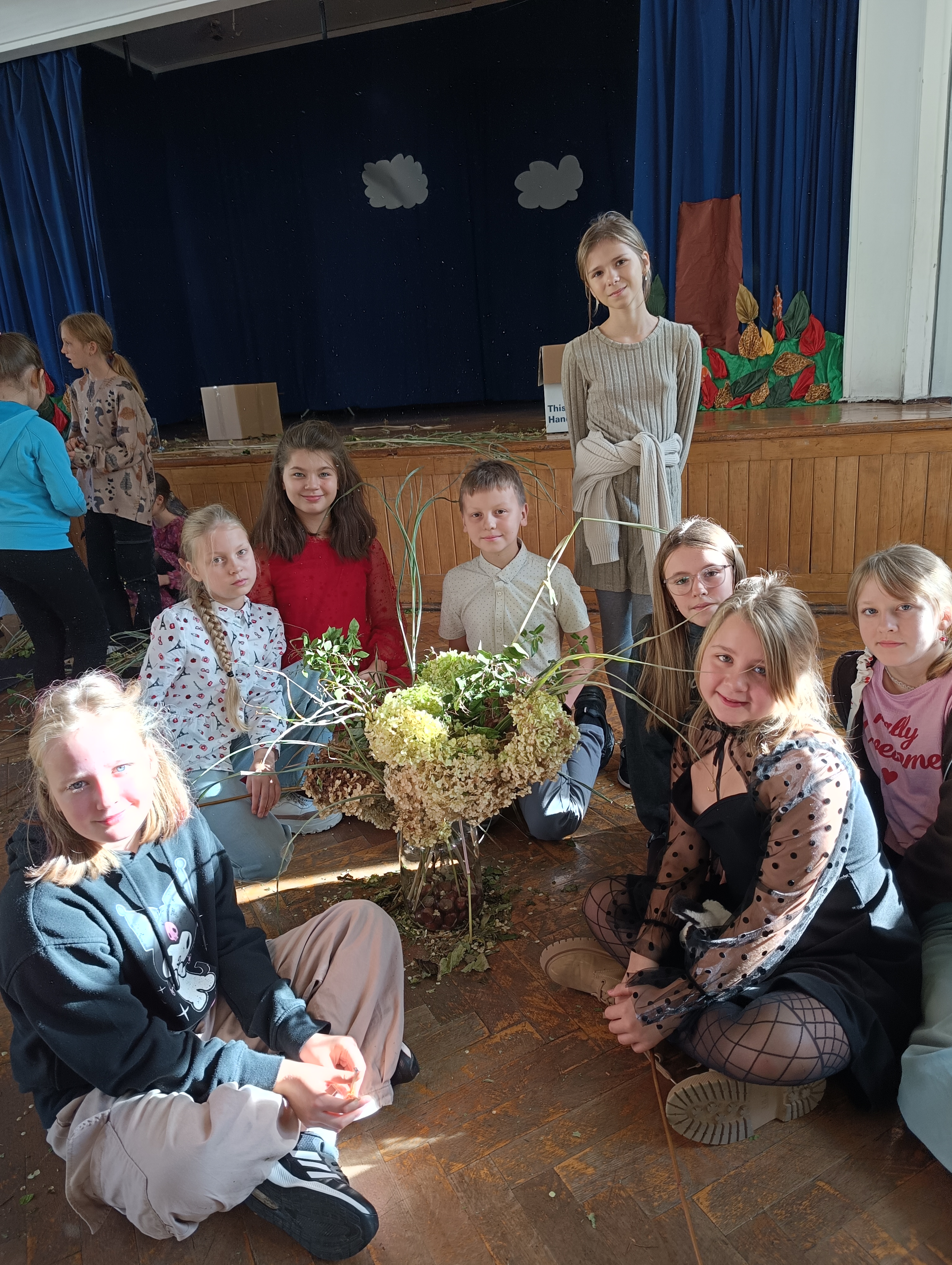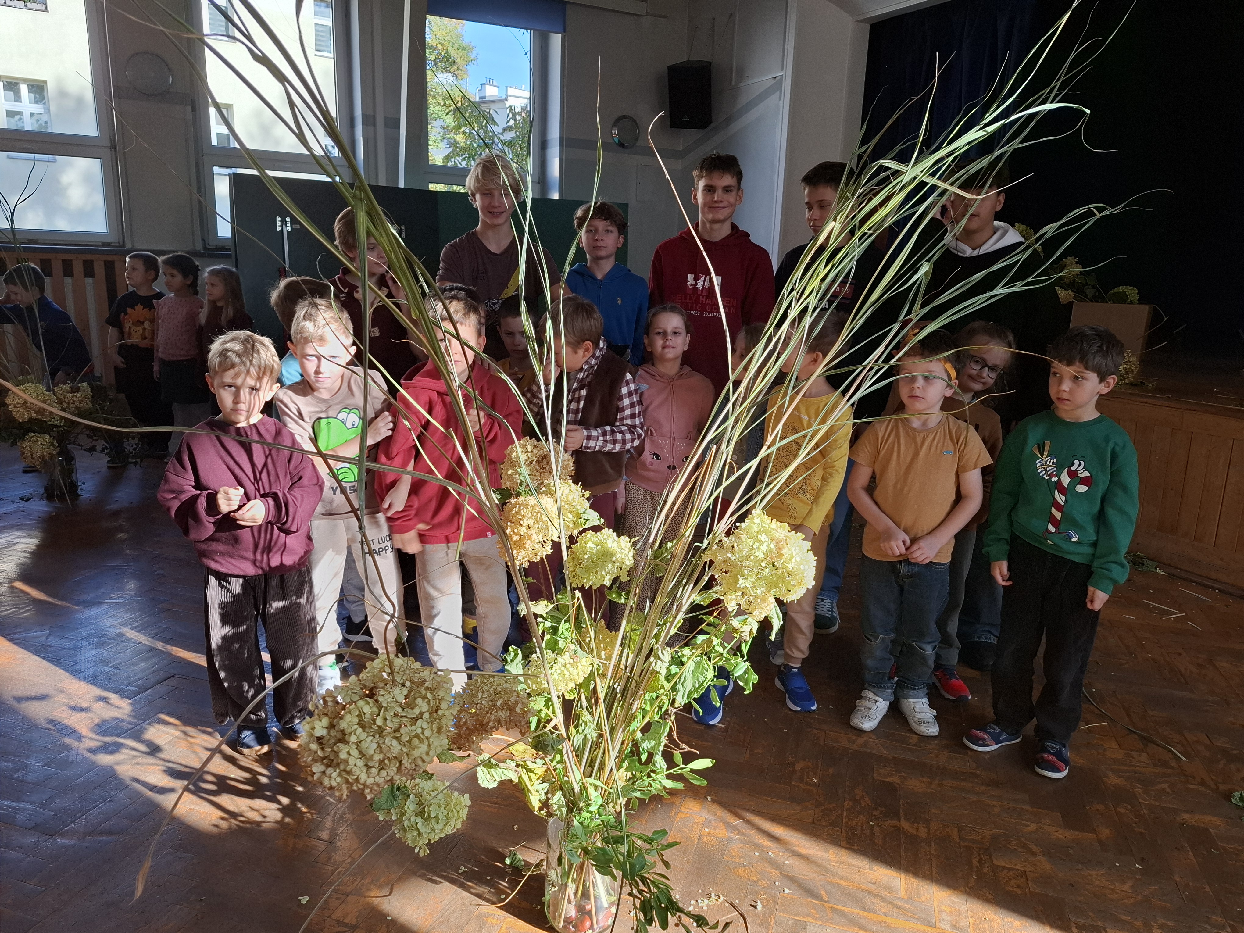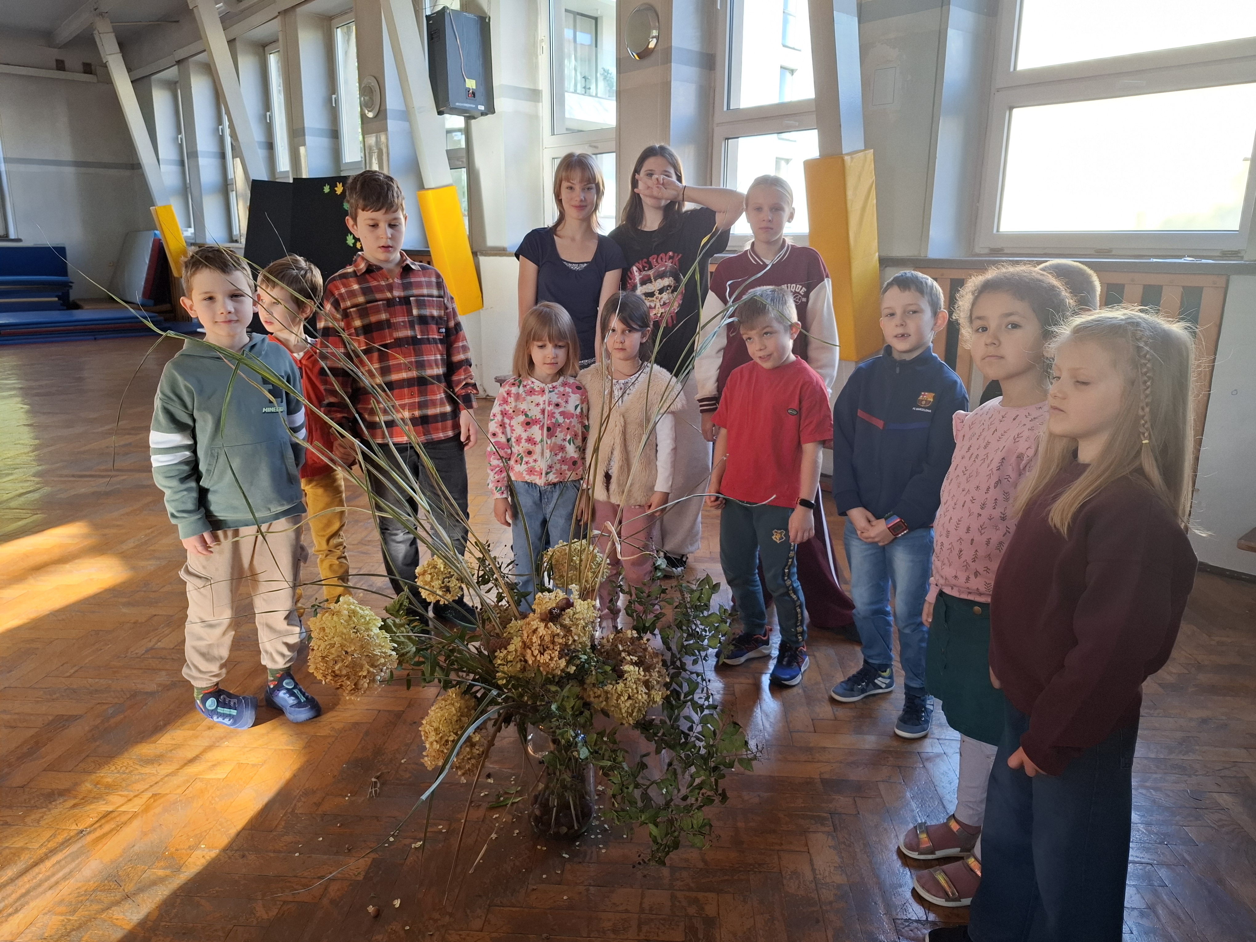 Na kolejnej stacji uczniowie tworzyli Bukiety Jesieni, łącząc liście, kwiaty i dary natury w przepiękne kompozycje.