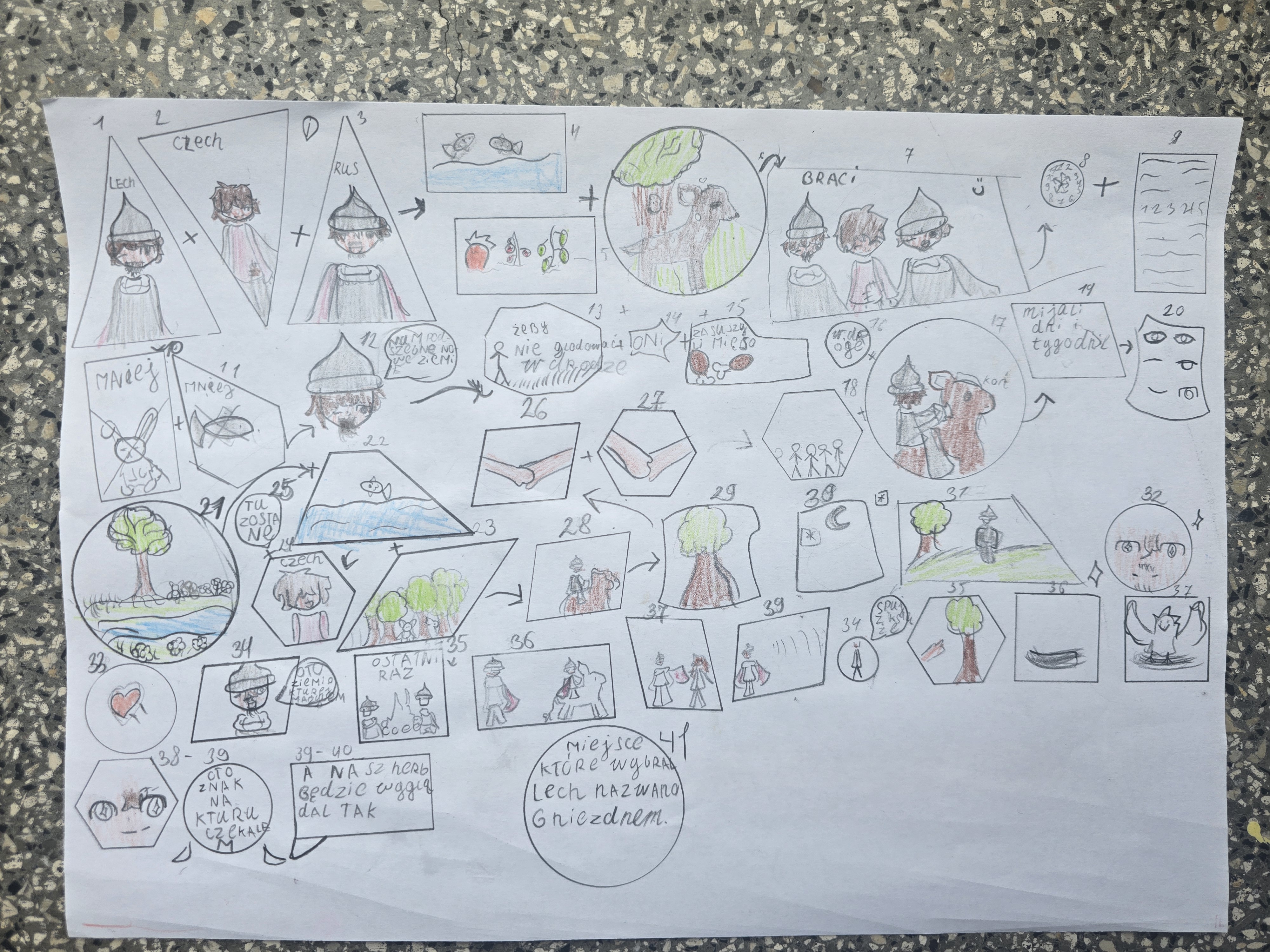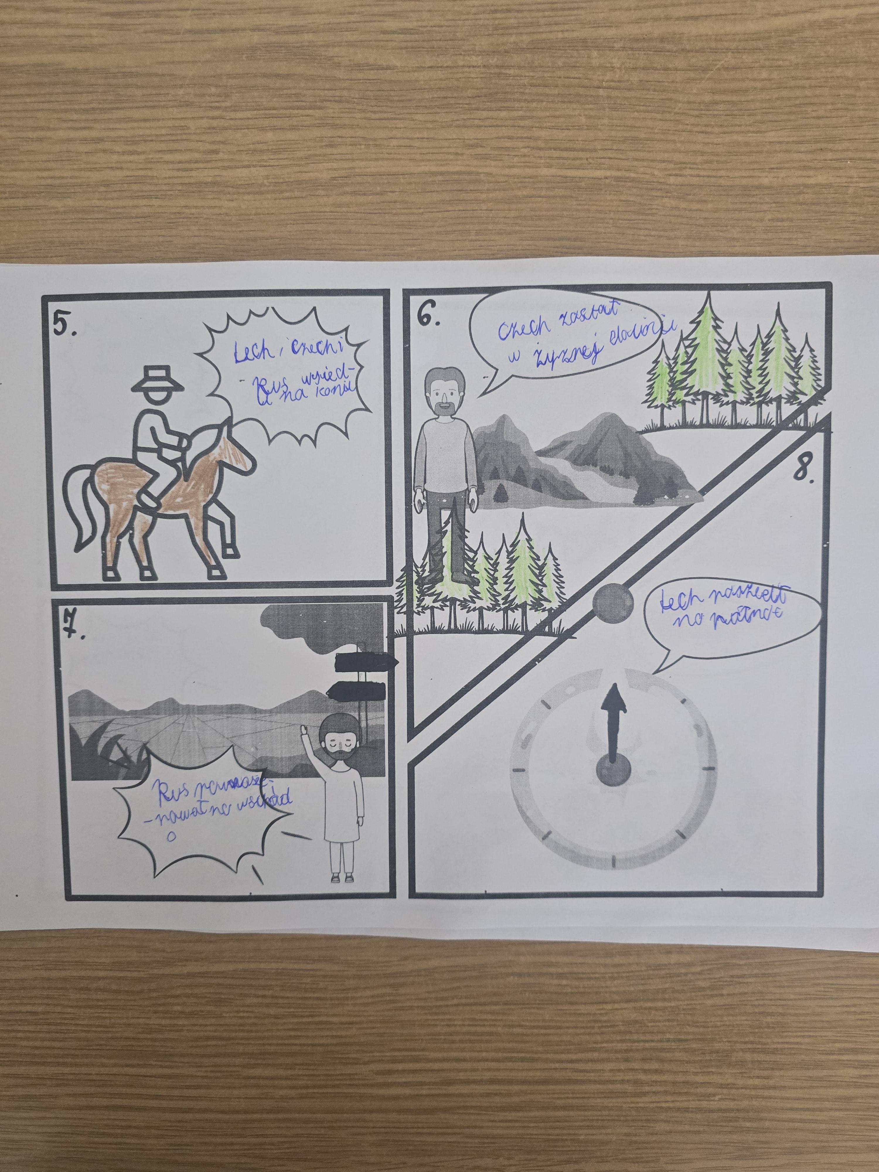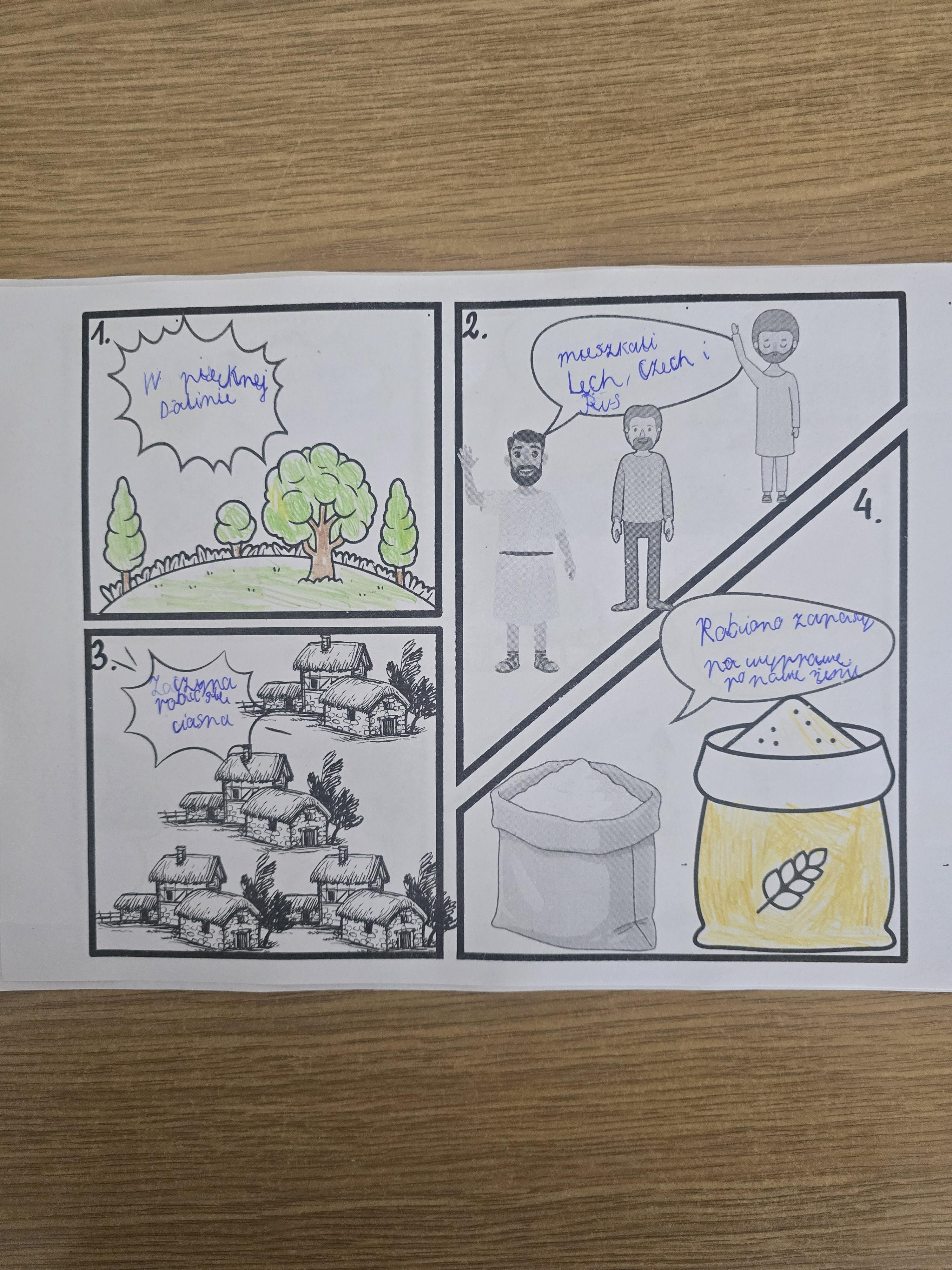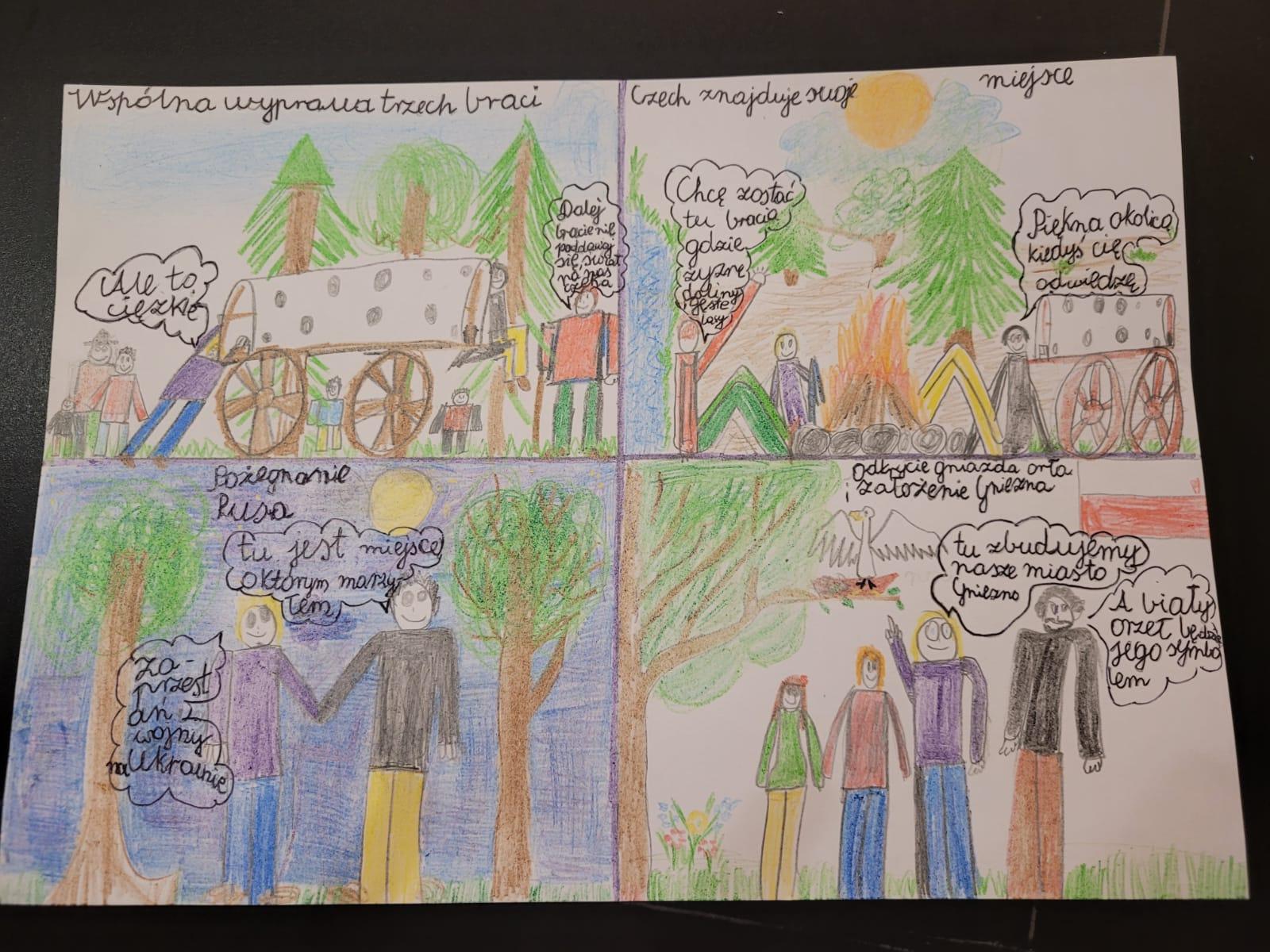 Uczniowie klasy 4a, inspirując się formą komiksu, stworzyli wyjątkowe prace przedstawiające legendę o Lechu, Czechu i Rusie. Zapraszamy do podziwiania efektów ich twórczej pracy!