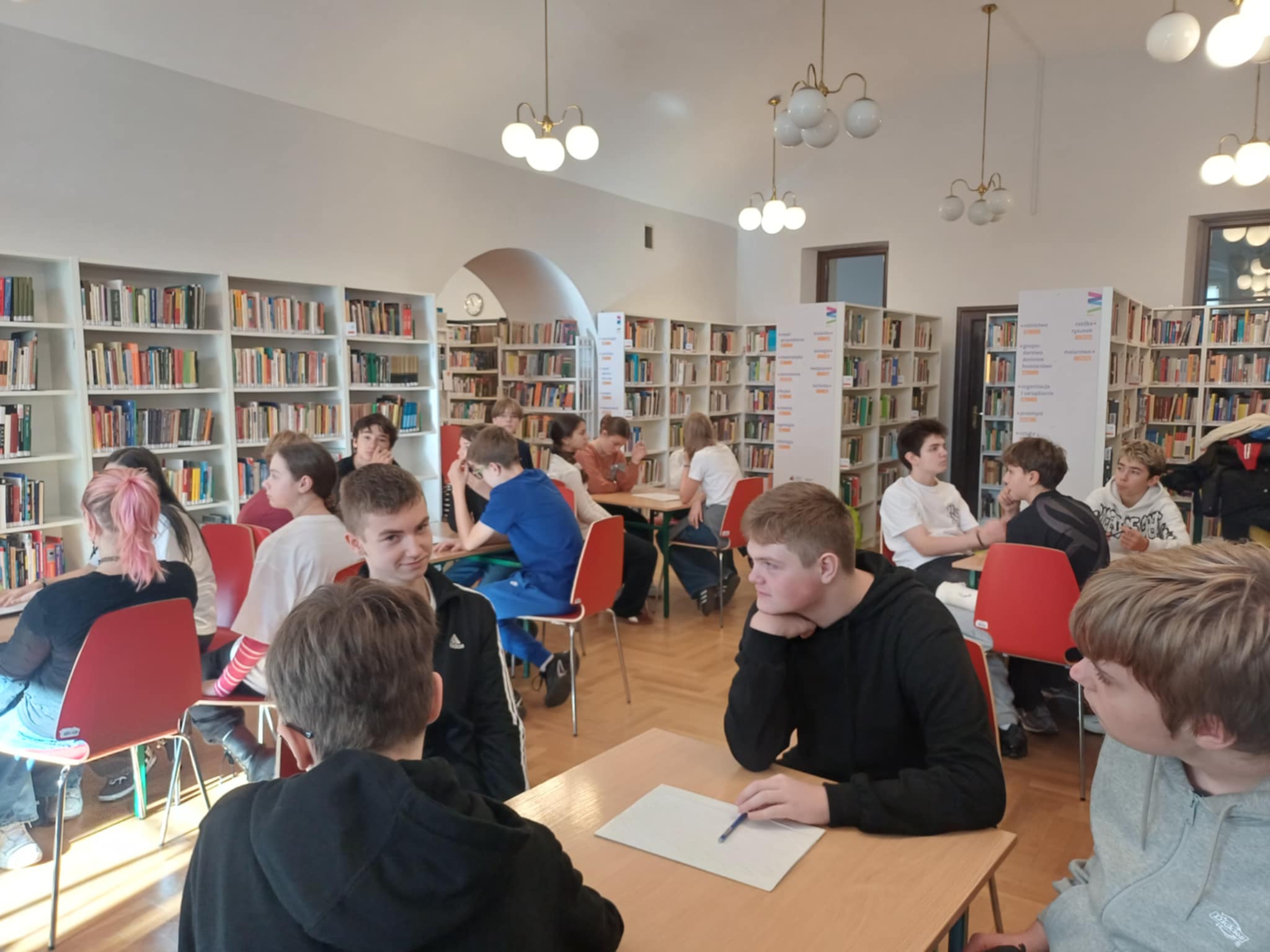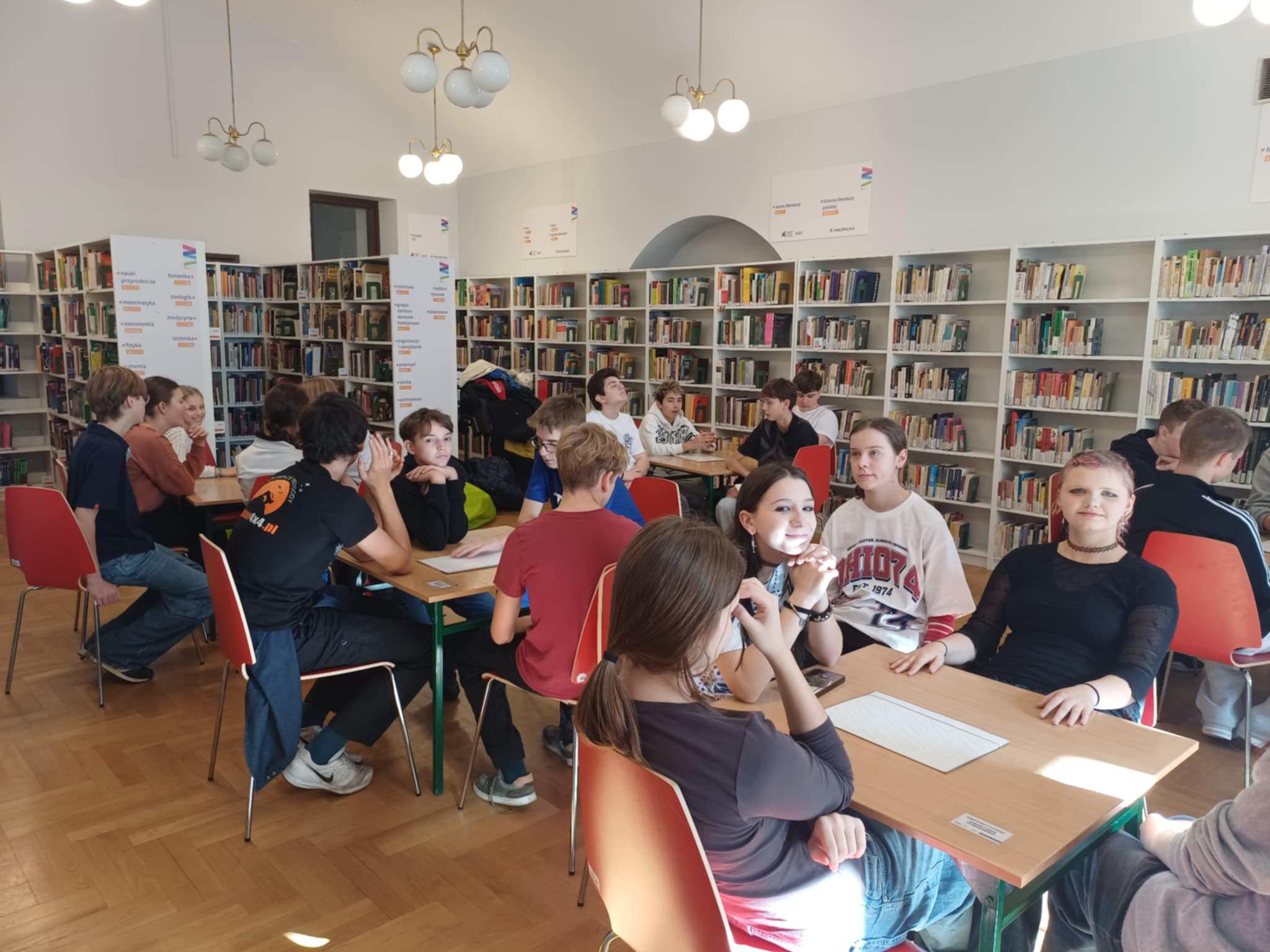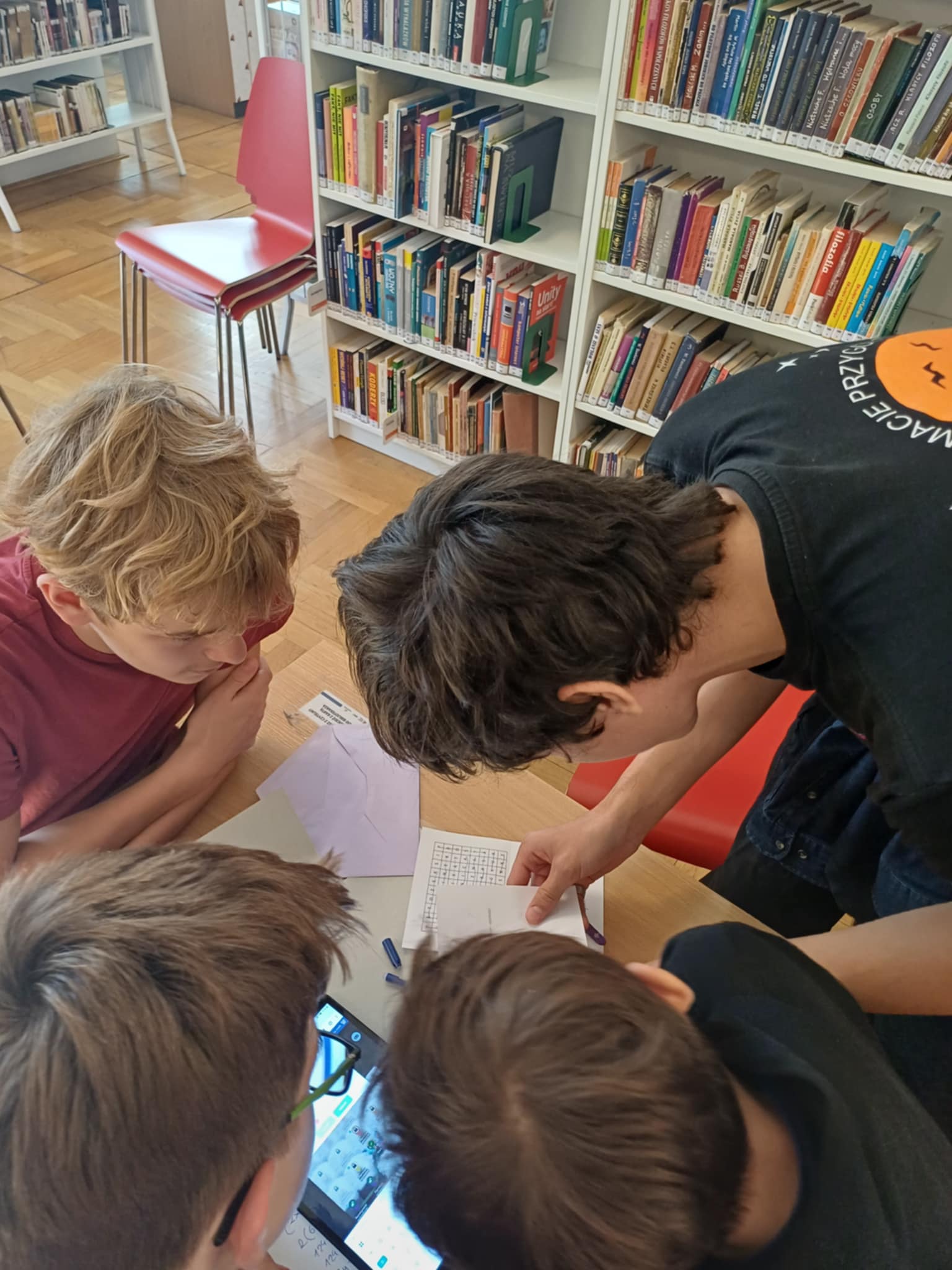 W dniu 23 października 2025 r. klasa 8b uczestniczyła w zajęciach bibliotecznych pod nazwą „Matematyczny escape room”. Była to edukacyjna lekcja łącząca elementy zabawy z rozwiązywaniem zadań matematycznych i logicznych w formie zagadek i łamigłówek. Uczniowie pracowali w grupach, aby w określonym czasie rozwiązać wszystkie zadania i osiągnąć wspólny cel.