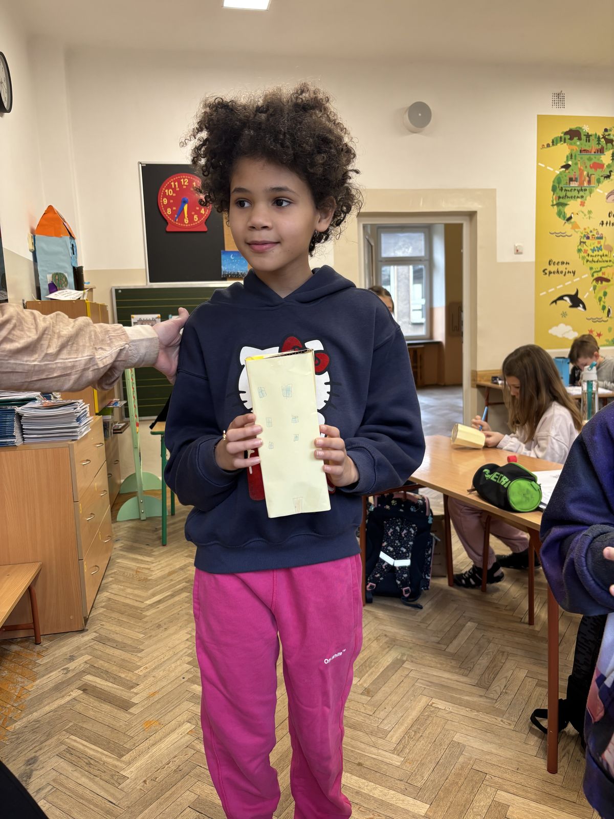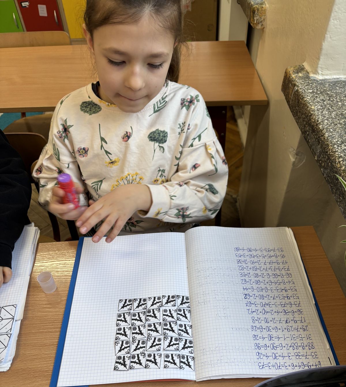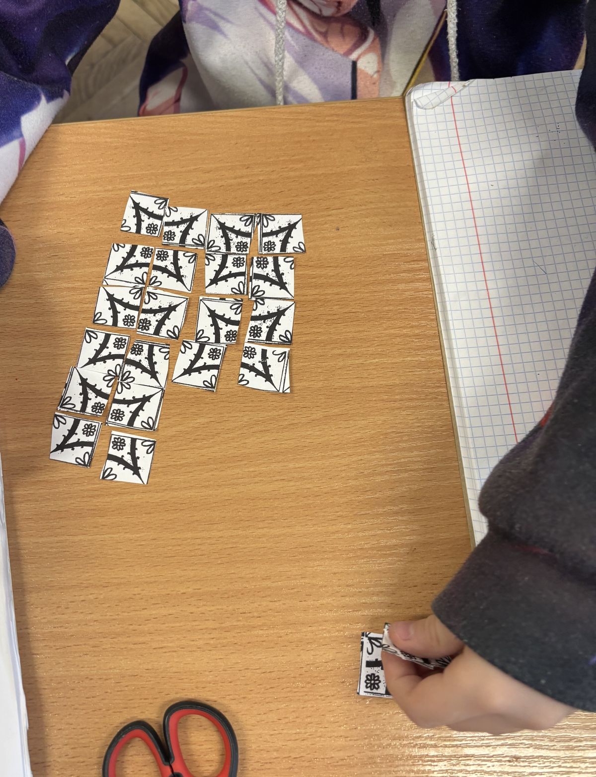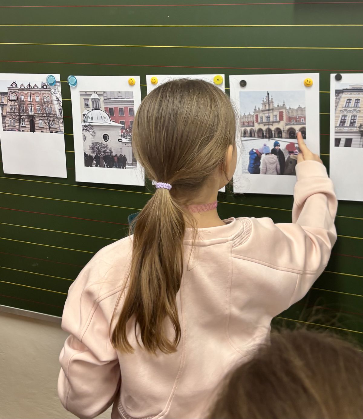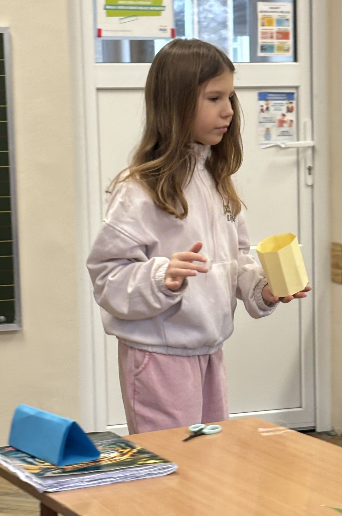25 lutego dzieci z klasy II b zakończyły realizację kolejnego modułu projektu „Natalka i Antek w świecie Wielkiej Matematyki”. Tym razem w roli głównej wystąpiła architektura! W napotkanych podczas spaceru budowlach, uczniowie odkrywali różne bryły i kształty, powtarzające się na elewacjach płaskorzeźby i trójkątne tympanony, a na suficie w kinie, przepiękne drewniane kasetony. W klasie, dzieci wyznaczały oś symetrii budynków, a z małych papierowych kafelków, układały różnorodne parkietaże czyli mające zastosowanie na podłogach i ścianach powtarzające się, geometryczne wzory. Na planie koła, trójkąta, rozmaitych czworokątów i ośmiokąta skonstruowały własne budowle. Początki nie były łatwe, bo papier nie chciał dopasować się do podstawy. Ale w miarę upływu czasu, zaangażowanie i doświadczenie rosły, a upór, determinacja oraz wzajemna pomoc pozwoliły na ukończenie projektów. Spodobało się! Cztery osoby chcą zostać architektami!