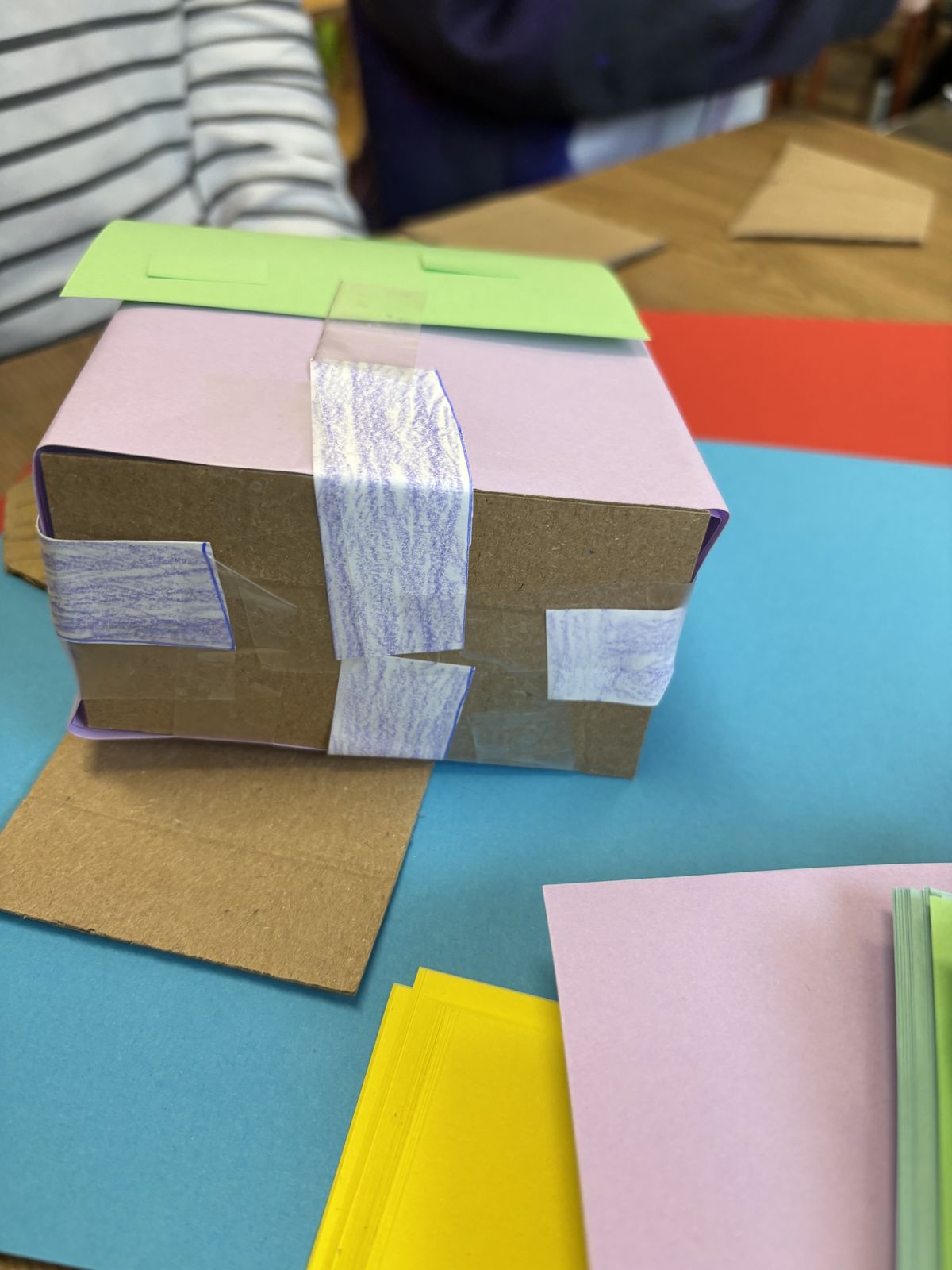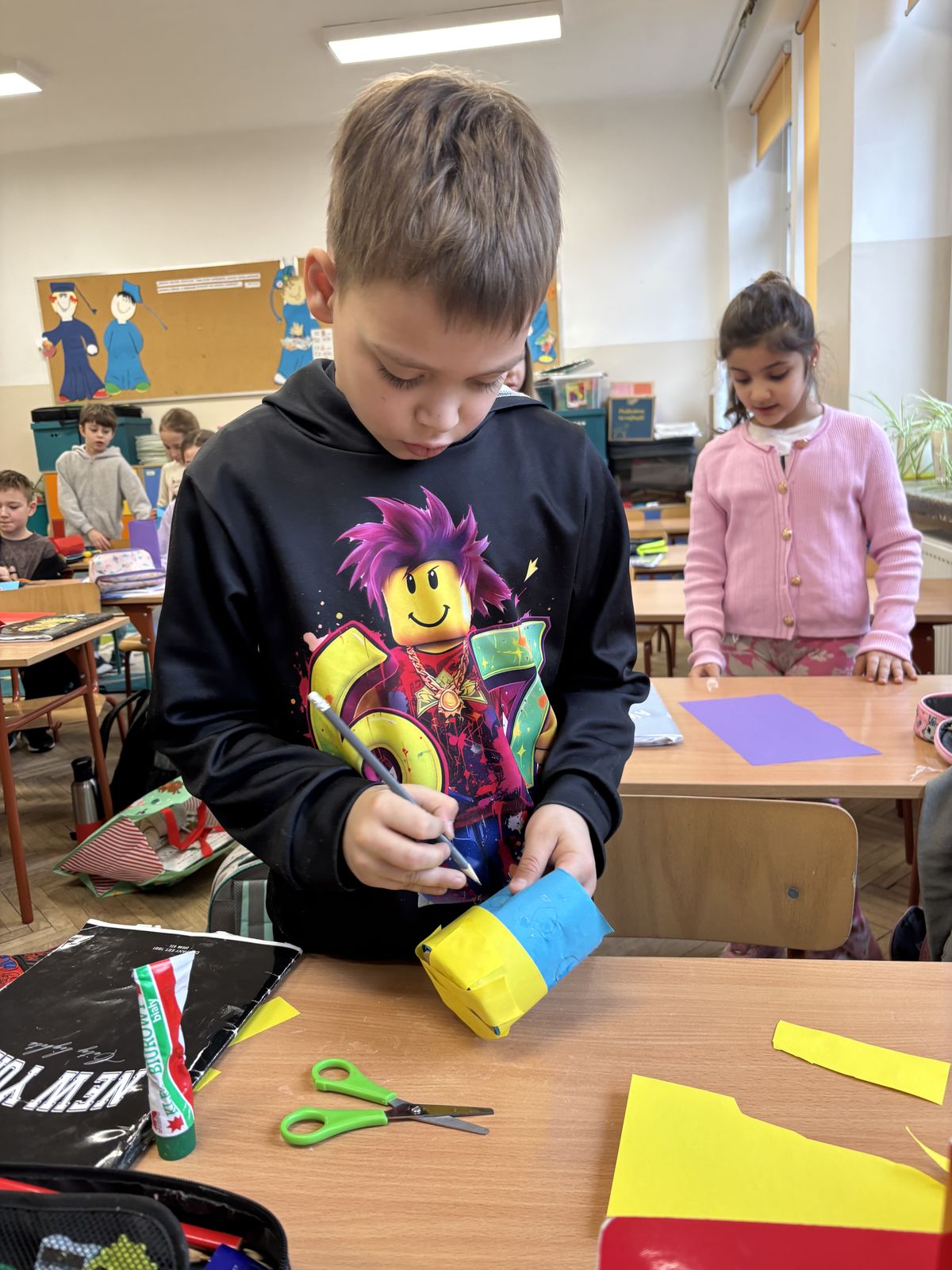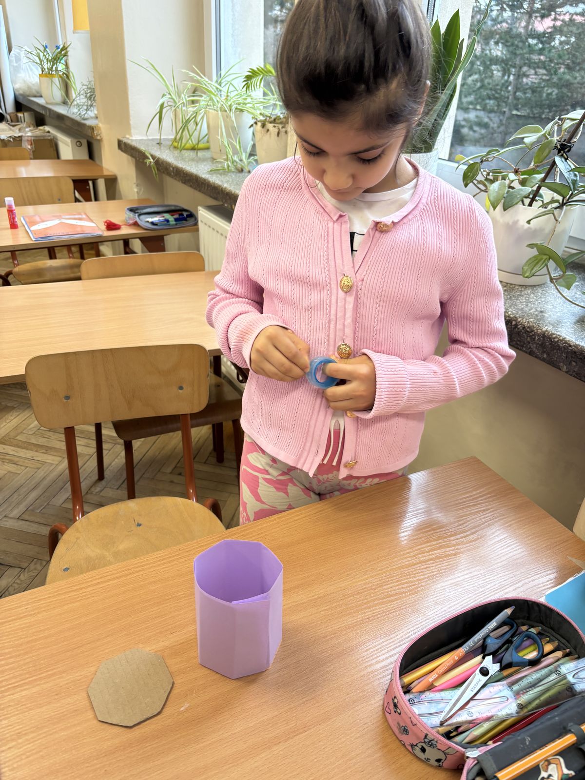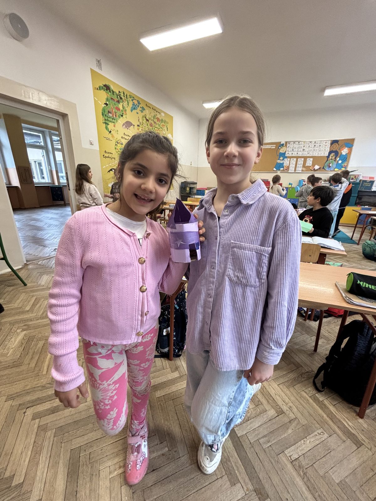 25 lutego dzieci z klasy II b zakończyły realizację kolejnego modułu projektu „Natalka i Antek w świecie Wielkiej Matematyki”. Tym razem w roli głównej wystąpiła architektura! W napotkanych podczas spaceru budowlach, uczniowie odkrywali różne bryły i kształty, powtarzające się na elewacjach płaskorzeźby i trójkątne tympanony, a na suficie w kinie, przepiękne drewniane kasetony. W klasie, dzieci wyznaczały oś symetrii budynków, a z małych papierowych kafelków, układały różnorodne parkietaże czyli mające zastosowanie na podłogach i ścianach powtarzające się, geometryczne wzory. Na planie koła, trójkąta, rozmaitych czworokątów i ośmiokąta skonstruowały własne budowle. Początki nie były łatwe, bo papier nie chciał dopasować się do podstawy. Ale w miarę upływu czasu, zaangażowanie i doświadczenie rosły, a upór, determinacja oraz wzajemna pomoc pozwoliły na ukończenie projektów. Spodobało się! Cztery osoby chcą zostać architektami!