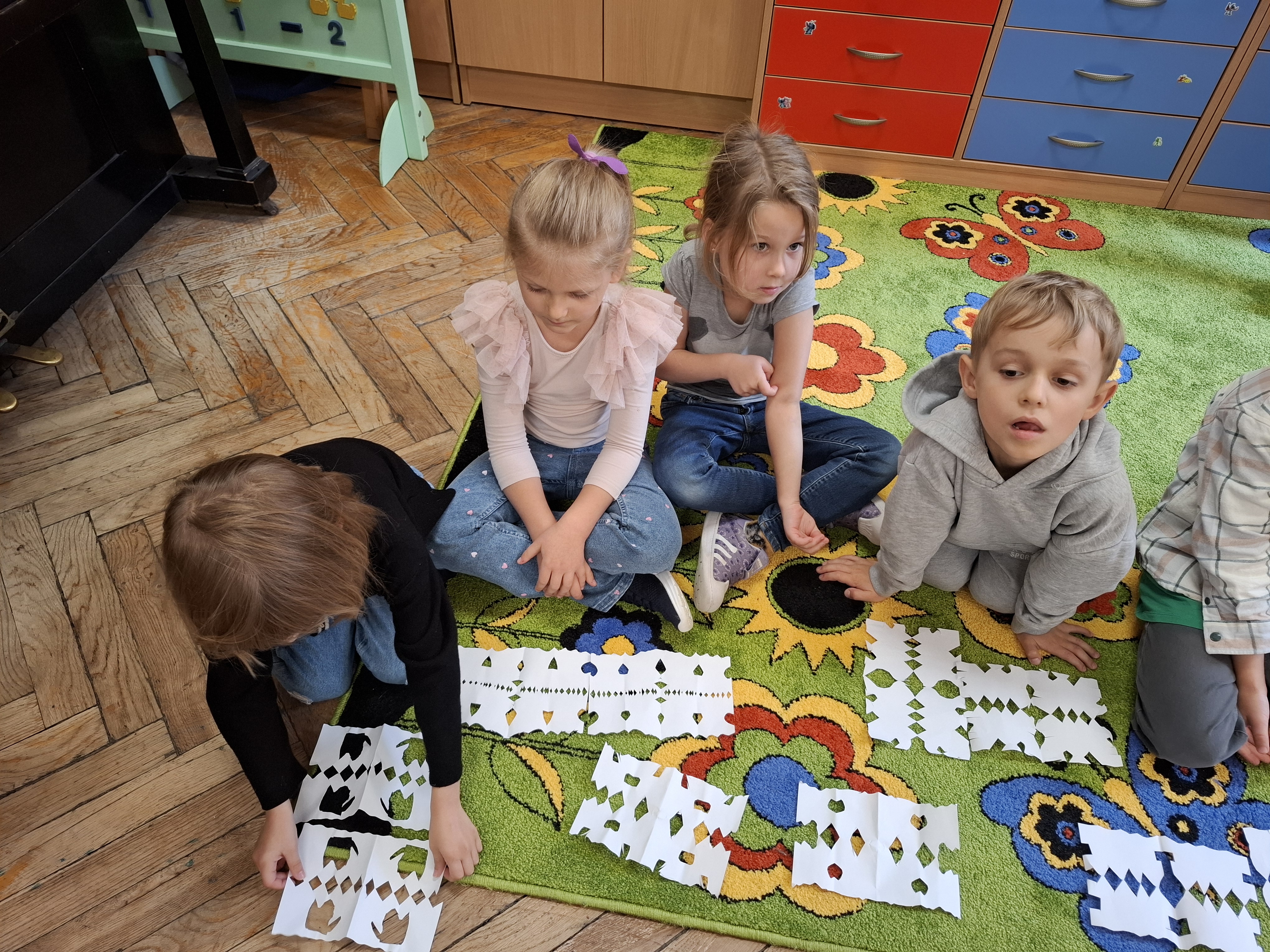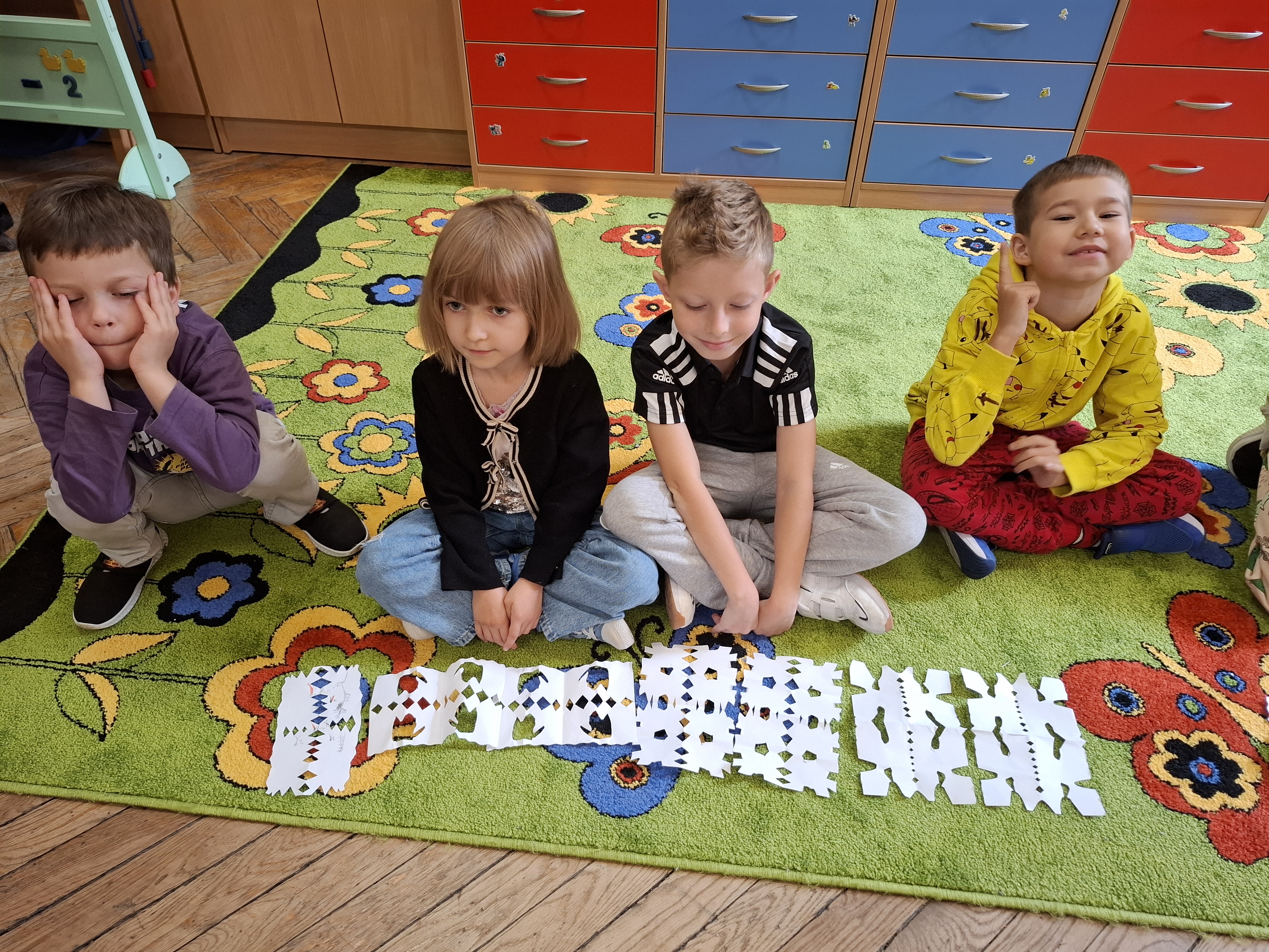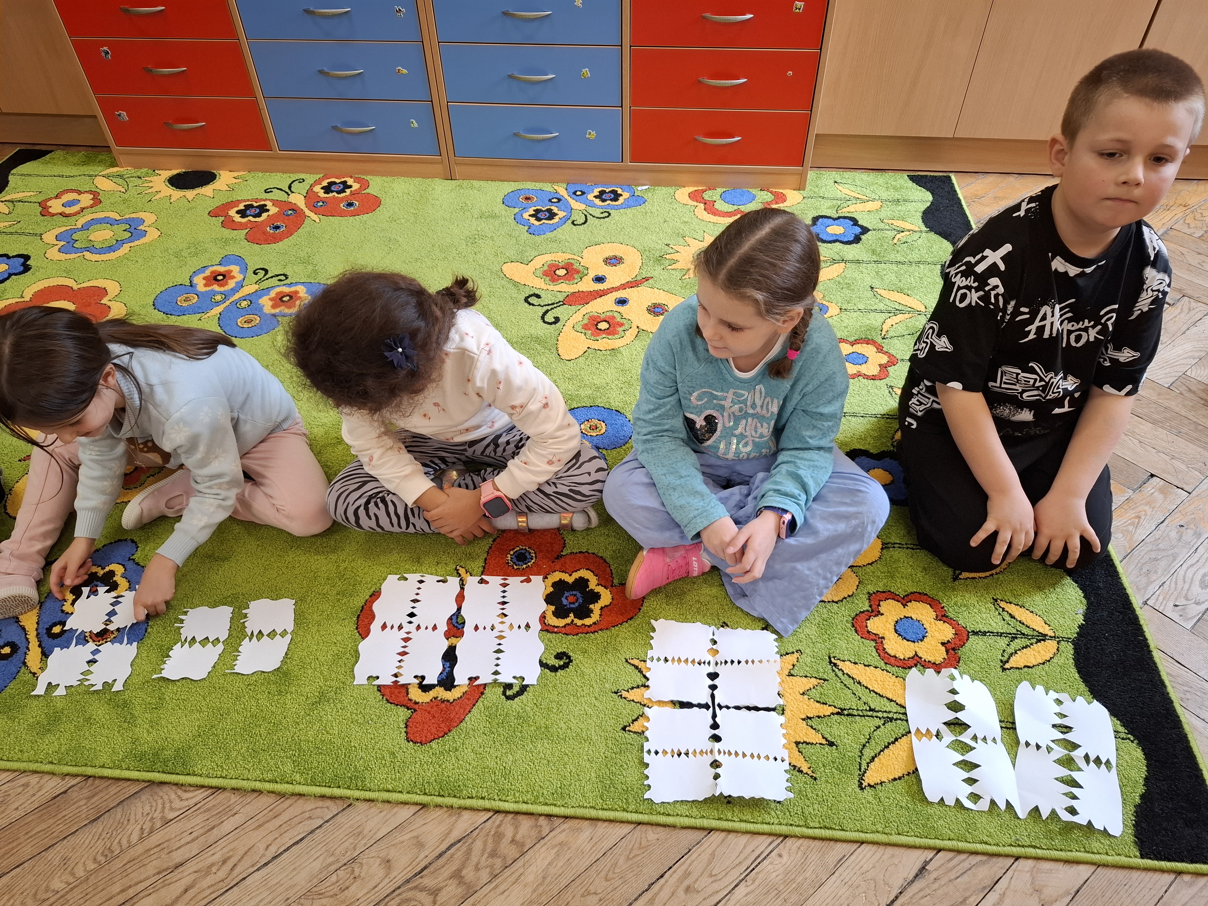 Klasa 1a rozpoczęła przygodę z projektem "Strażnicy tradycji" Uniwersytetu Dzieci. Po obejrzeniu filmu i wsi Zalipie w Małopolsce uczniowie otrzymali odpowiedź na pytanie skąd wziął się pomysł malowania domów. Kto je malował , z czego dawniej były zrobione pędzle, dlaczego kobiety nadal malują kwiatami domy i co to jest tradycja. Następnie wspólnie obejrzeli prezentację ukazującą przykłady sztuki ludowej- meble, obrusy, ceramikę, serwetki czy obrazy malowane na szkle. Ustalili, że sztuka ludowa to to, co zostało wykonane przez mieszkańców danego regionu, najczęściej wsi i przedstawia w swoim przekazie to, co jest najbliższe i znane. Twórcy ludowi najczęściej nie mieli żadnego artystycznego wykształcenia, byli samoukami i pasjonatami. Kolejna prezentacja przedstawiała też sztukę ludową innych krajów np. Portugalii czy Meksyku. Zazwyczaj przyczyną powstania takich rzeczy była potrzeba codziennego życia lub religia danego państwa. Na zakończenie zajęć każdy wykonał wycinankę według własnego pomysłu. Powstały fantastyczne prace.