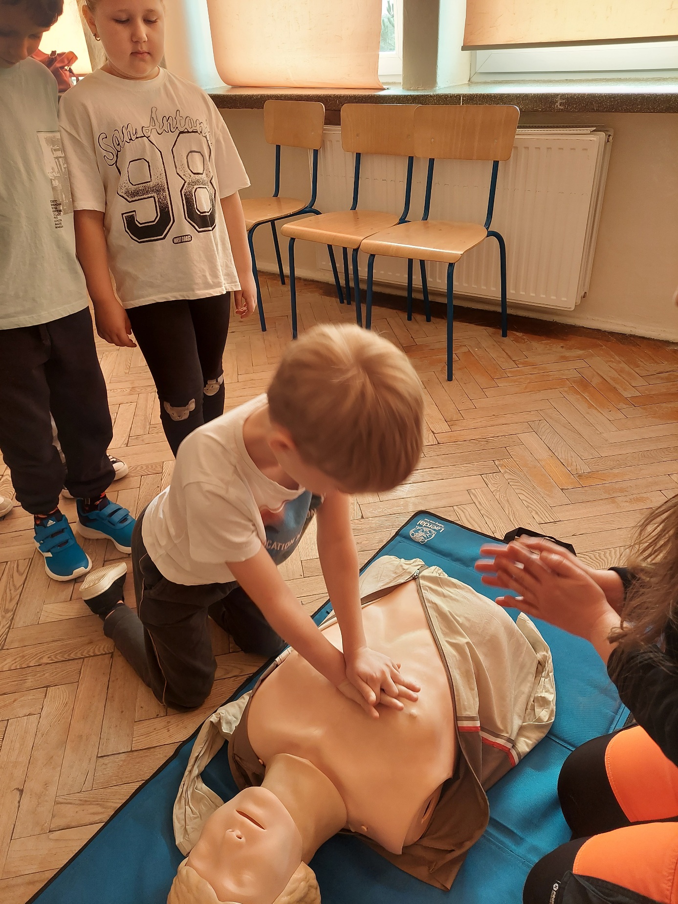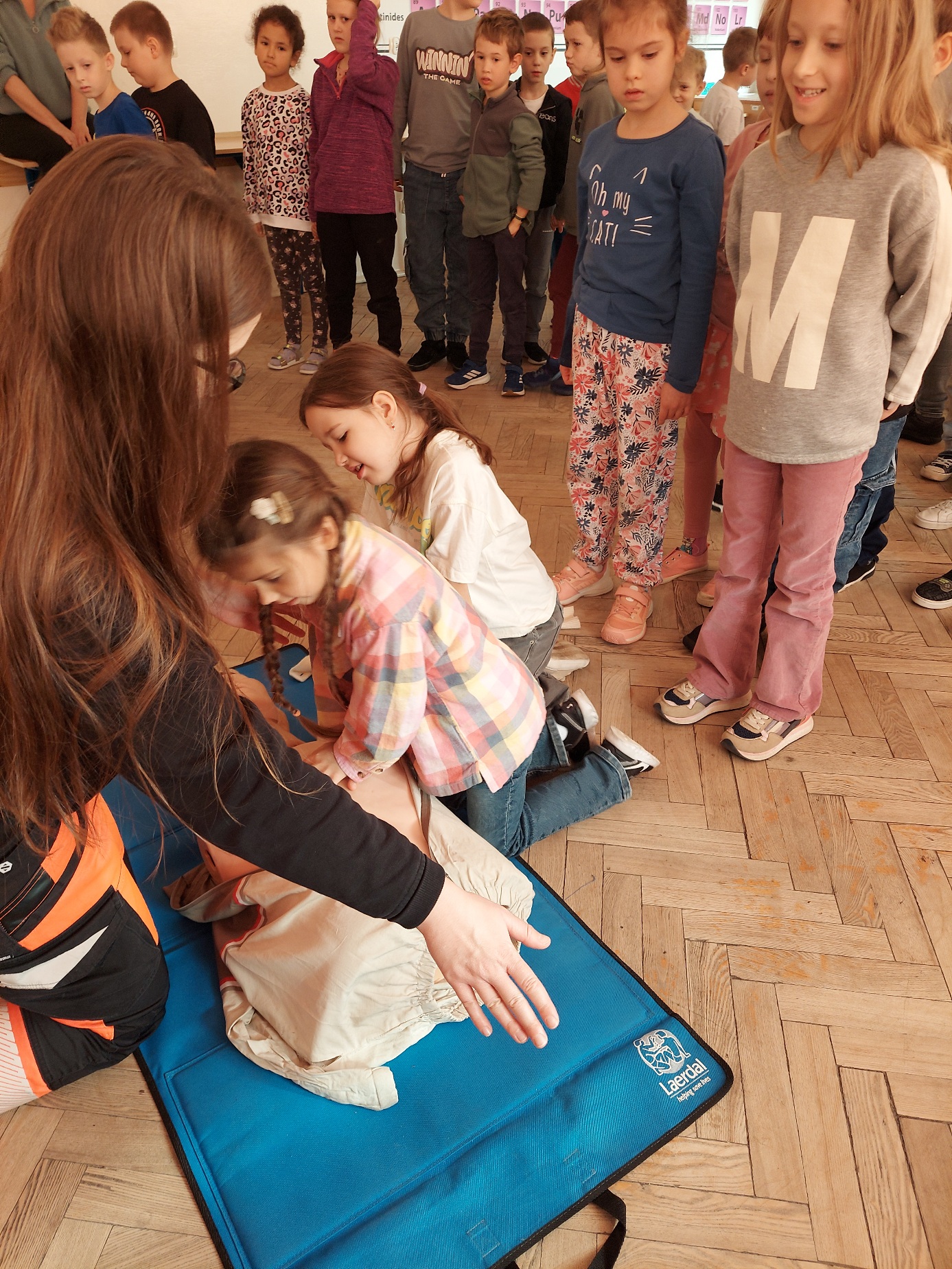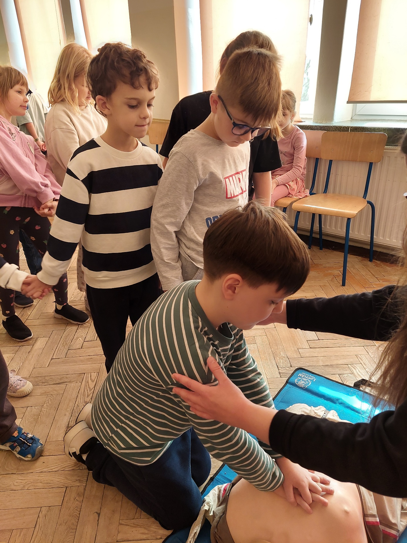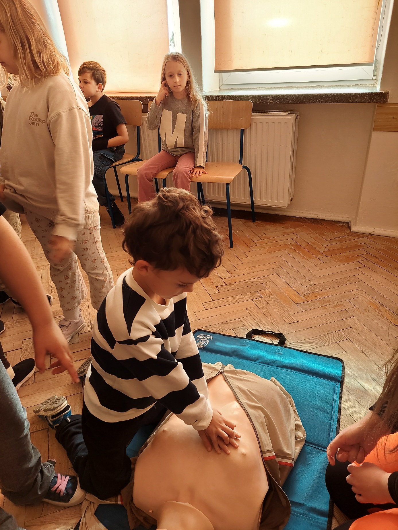 Uczniowie klas 1-3 wzięli udział w specjalnym szkoleniu udzielania pierwszej pomocy. Szkolenie to prowadziły panie ratowniczki medyczne oraz ratownik kwalifikowanej pierwszej pomocy. Dzieci aktywnie uczestniczyły w ćwiczeniach praktycznych takich jak: ułożenie poszkodowanego w pozycji bocznej , wykonanie podstawowych technik uciskania klatki piersiowej oraz nauka chwytu Heimlicha zastosowanego podczas zadławienia. Dzieci zdobyły podstawową wiedzę i umiejętności, które mogą okazać się nieocenione w codziennym życiu.