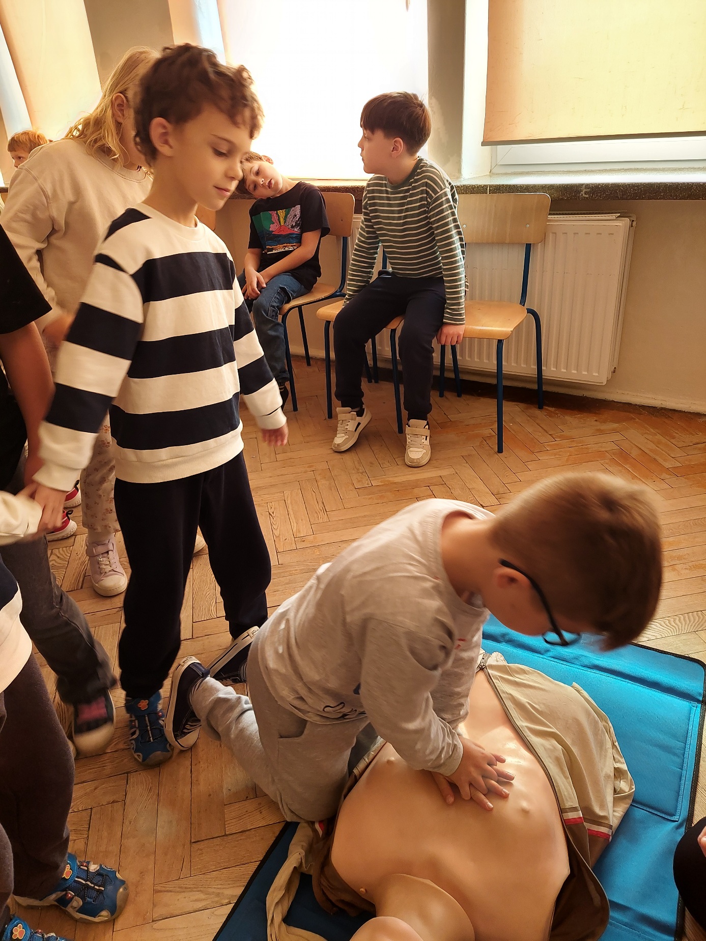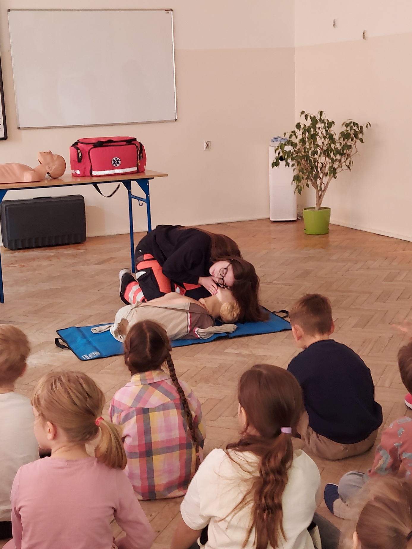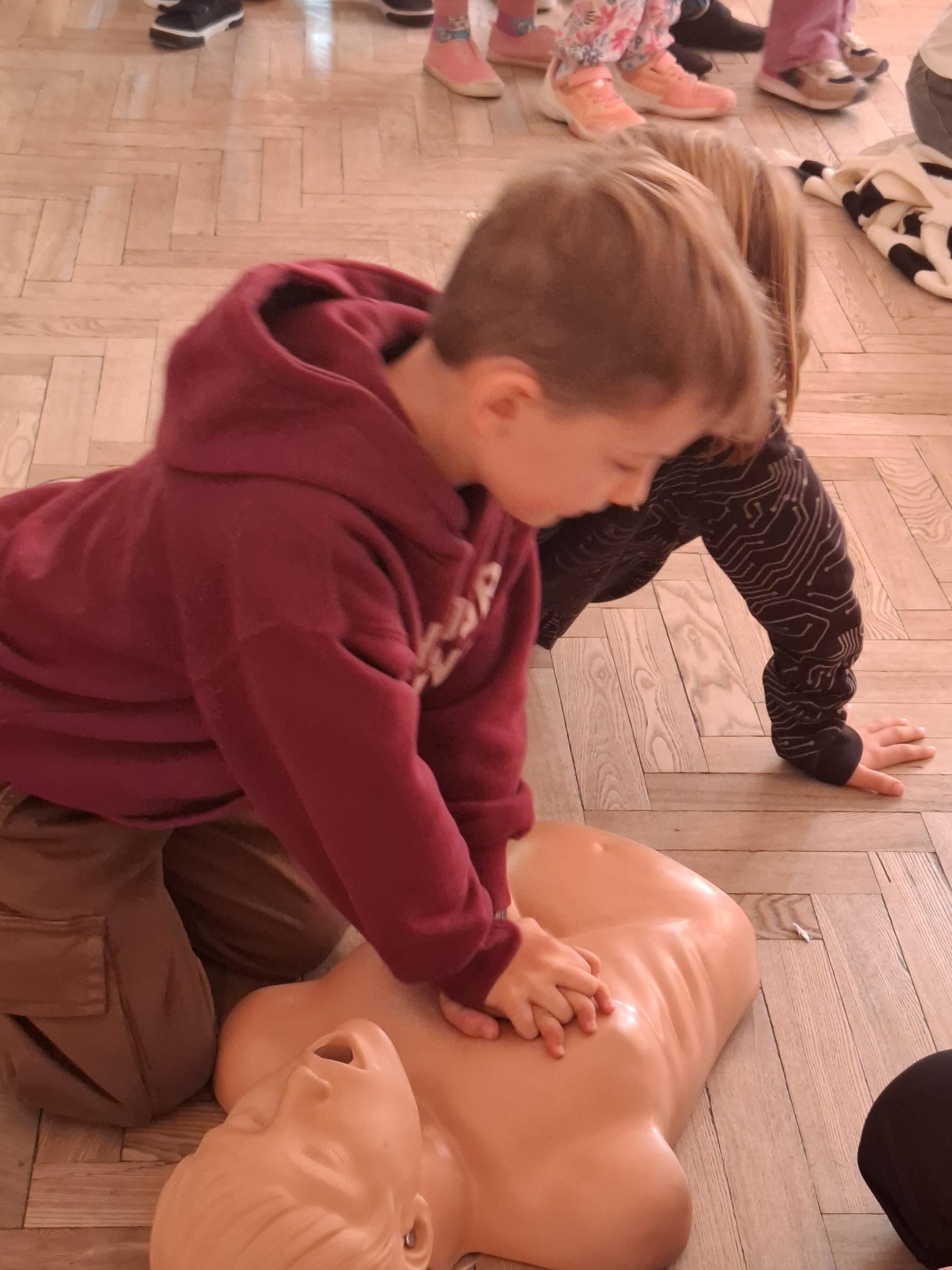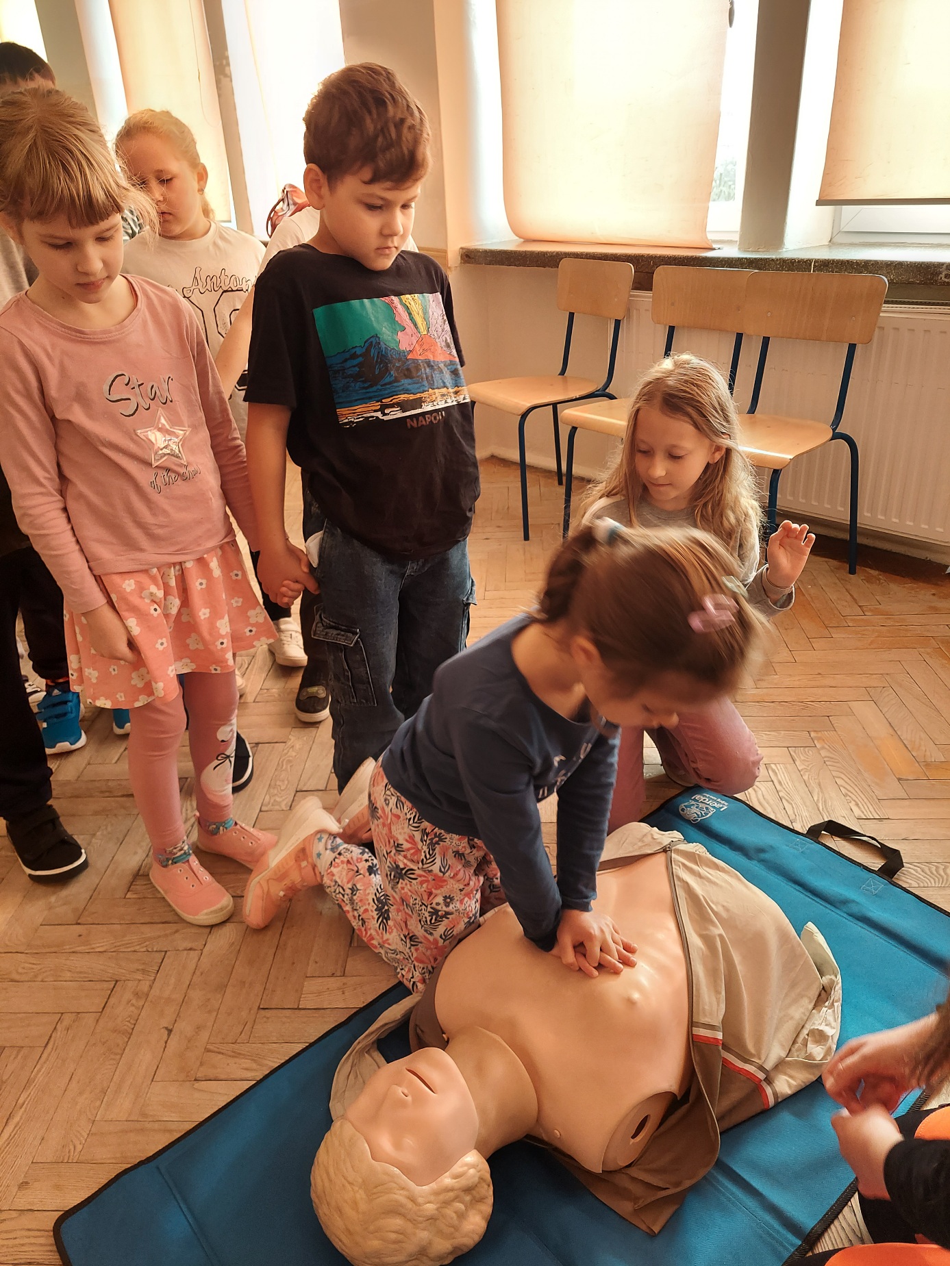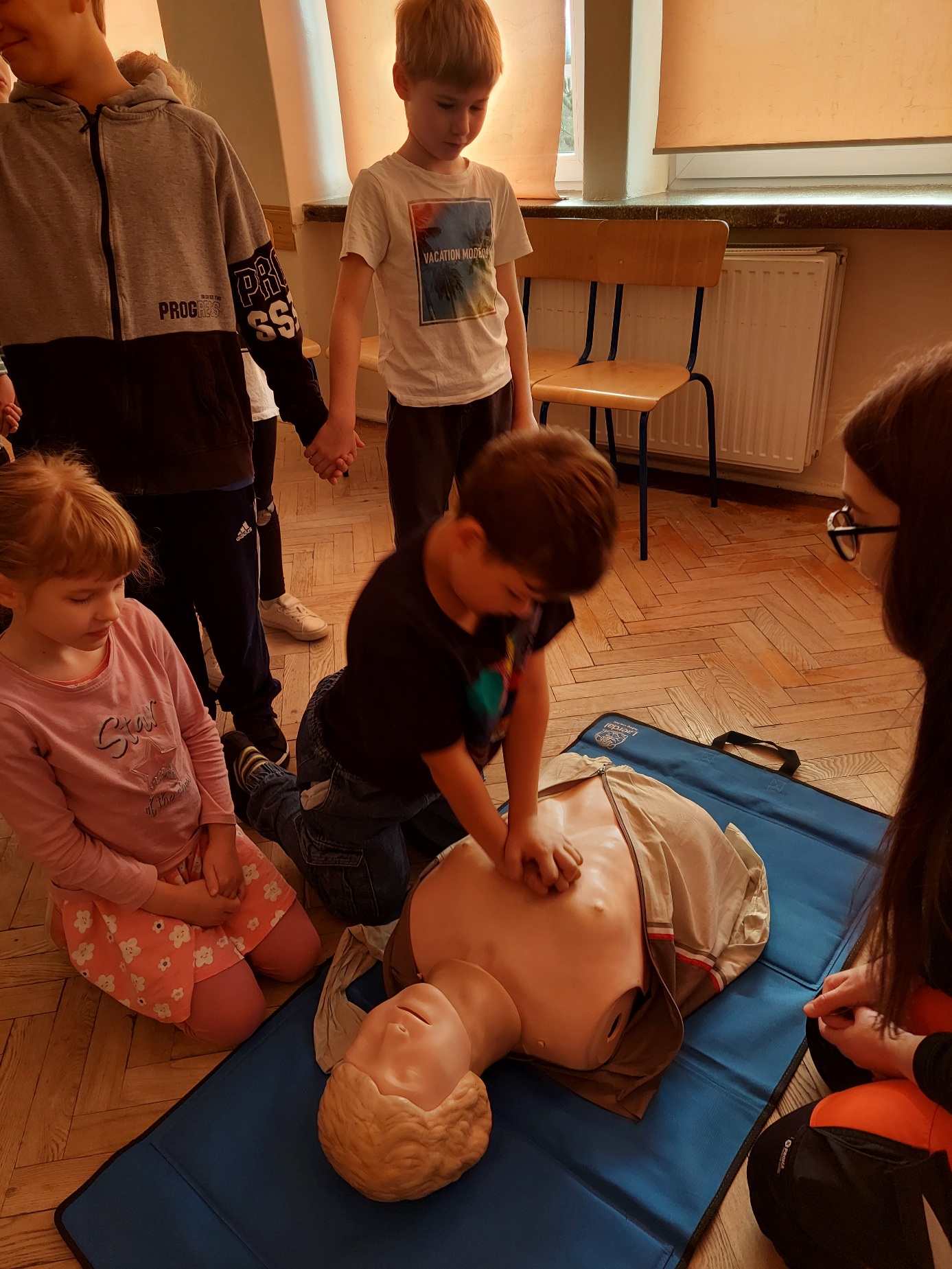 Uczniowie klas 1-3 wzięli udział w specjalnym szkoleniu udzielania pierwszej pomocy. Szkolenie to prowadziły panie ratowniczki medyczne oraz ratownik kwalifikowanej pierwszej pomocy. Dzieci aktywnie uczestniczyły w ćwiczeniach praktycznych takich jak: ułożenie poszkodowanego w pozycji bocznej , wykonanie podstawowych technik uciskania klatki piersiowej oraz nauka chwytu Heimlicha zastosowanego podczas zadławienia. Dzieci zdobyły podstawową wiedzę i umiejętności, które mogą okazać się nieocenione w codziennym życiu.