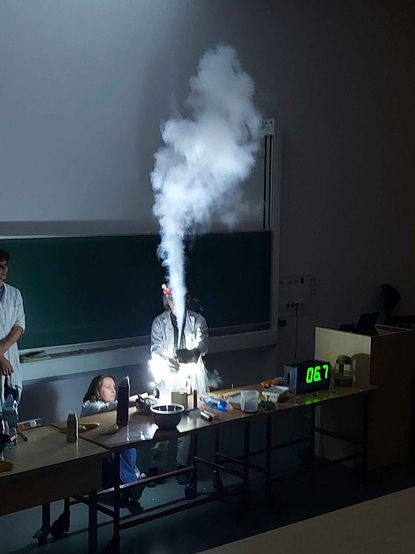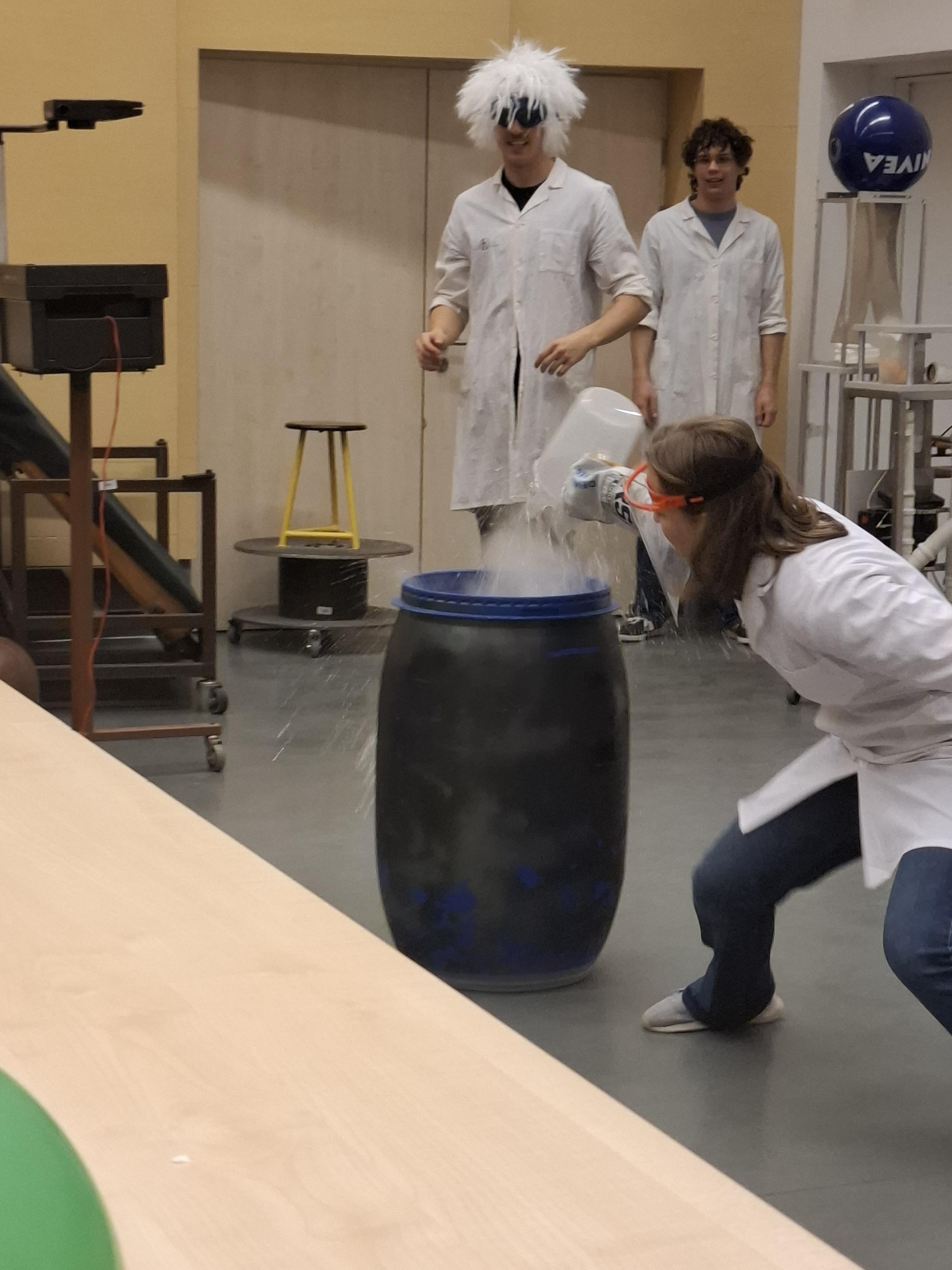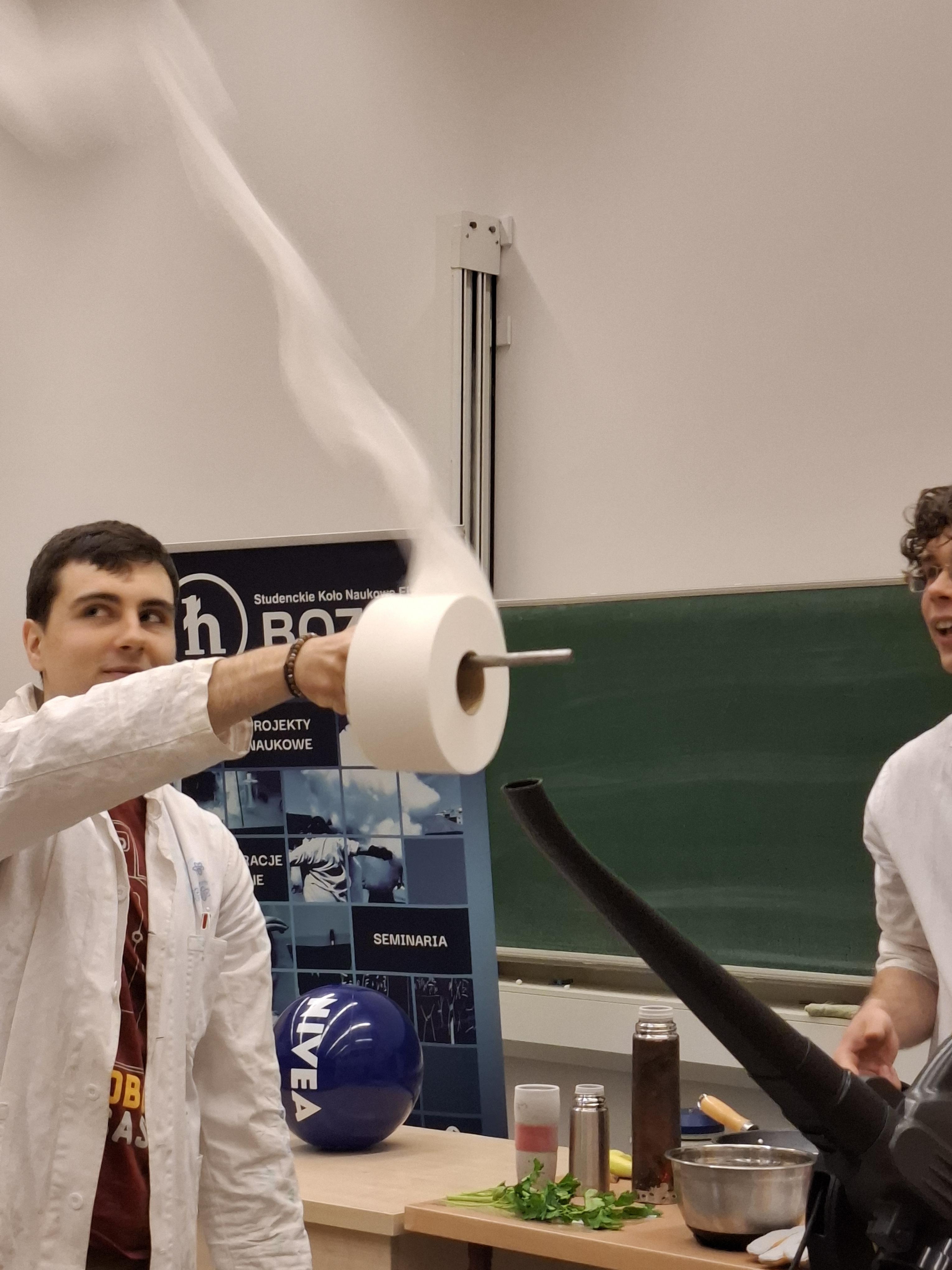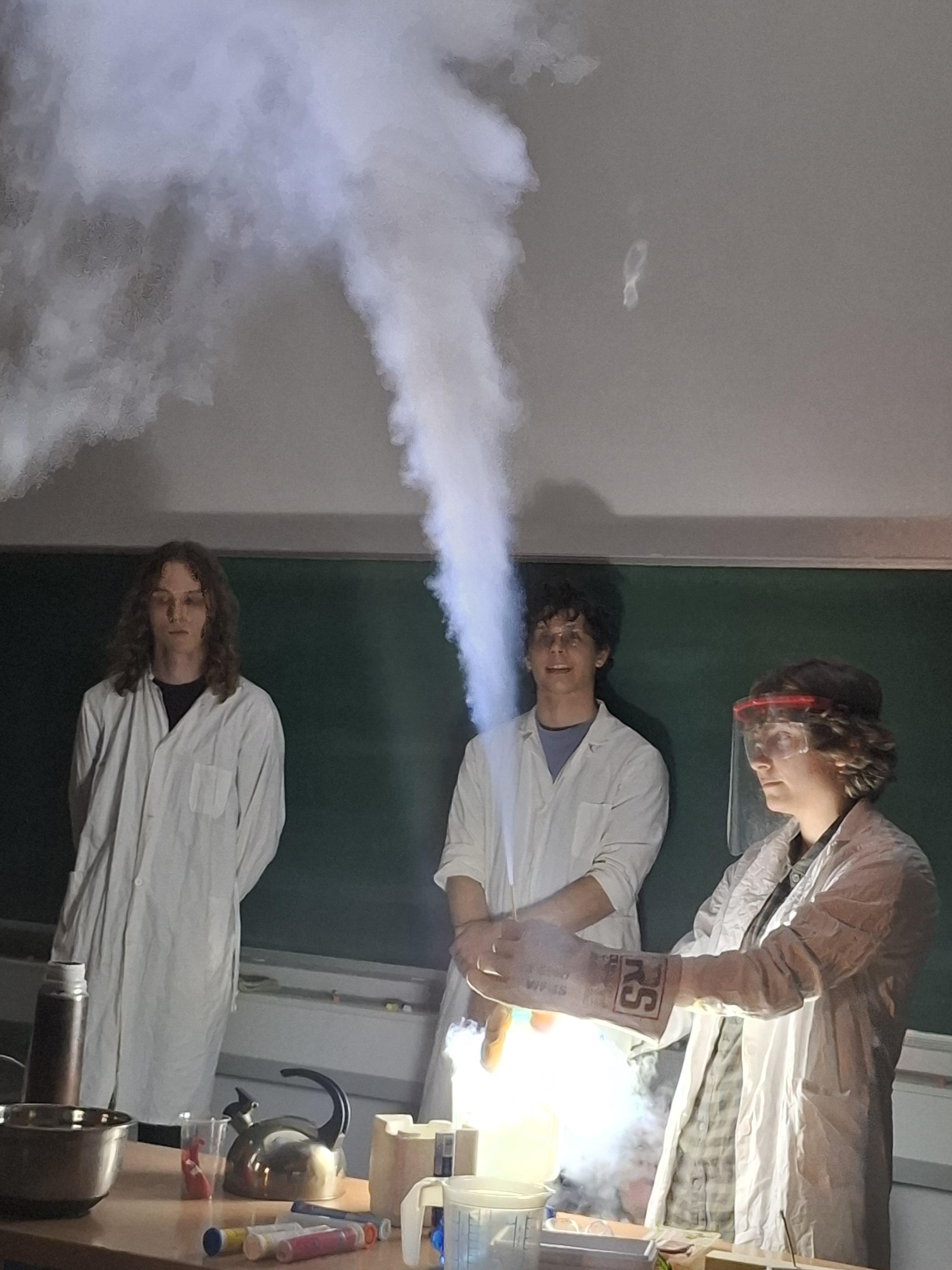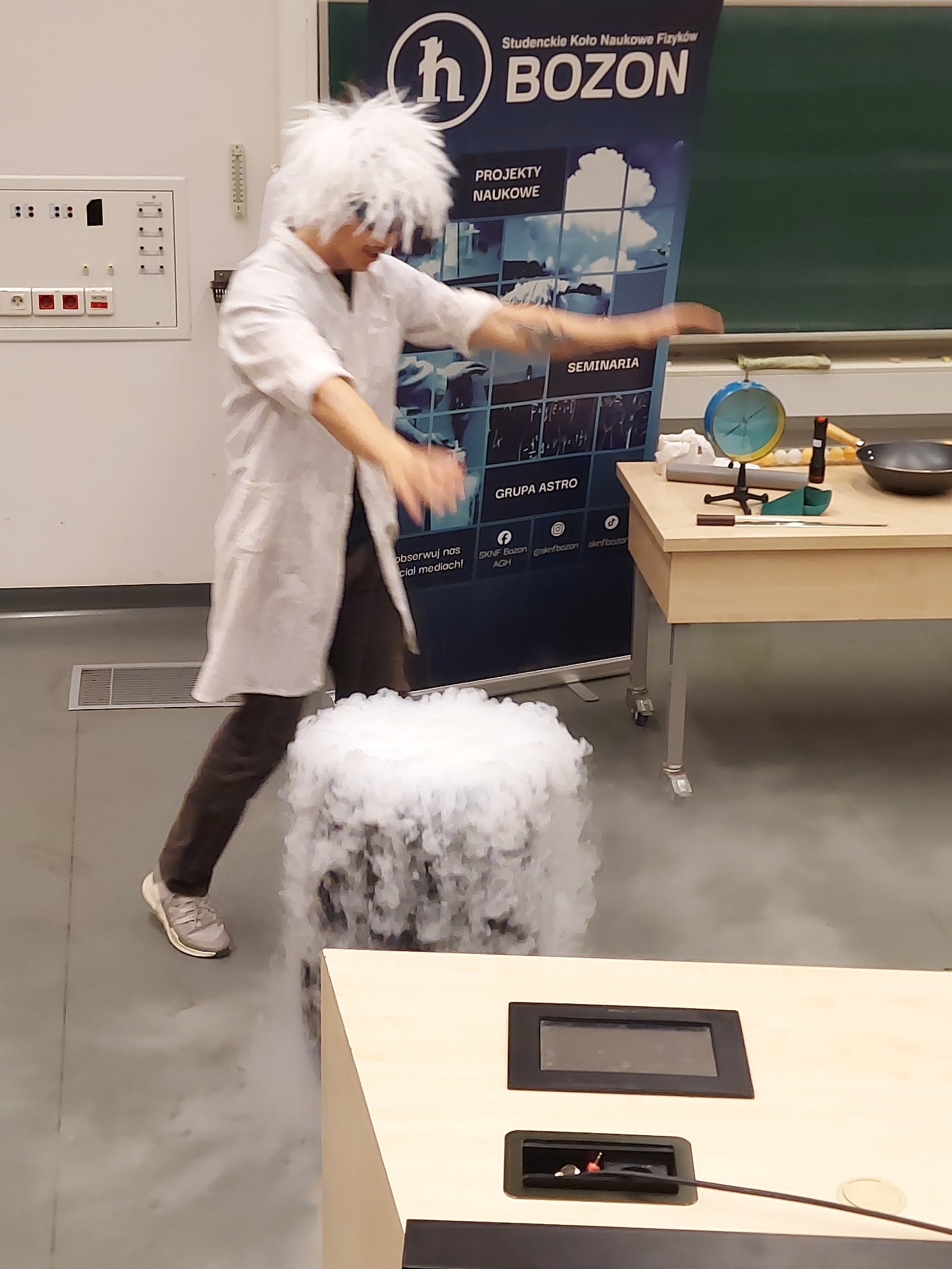 Emocje wzbudziły eksperymenty z ciekłym azotem, którego temperatura -200 w sekundzie zamrażała: pęczek pietruszki, balony oraz banana, który po zamrożeniu wbijał gwóźdź do deski. Dzięki właściwościom ładunków elektrycznych, dzieci dowiedziały się, dlaczego „włosy stają dęba”. Specjalny generator Van de Graaff’a wytwarzał iskry, niczym pioruny podczas burzy.