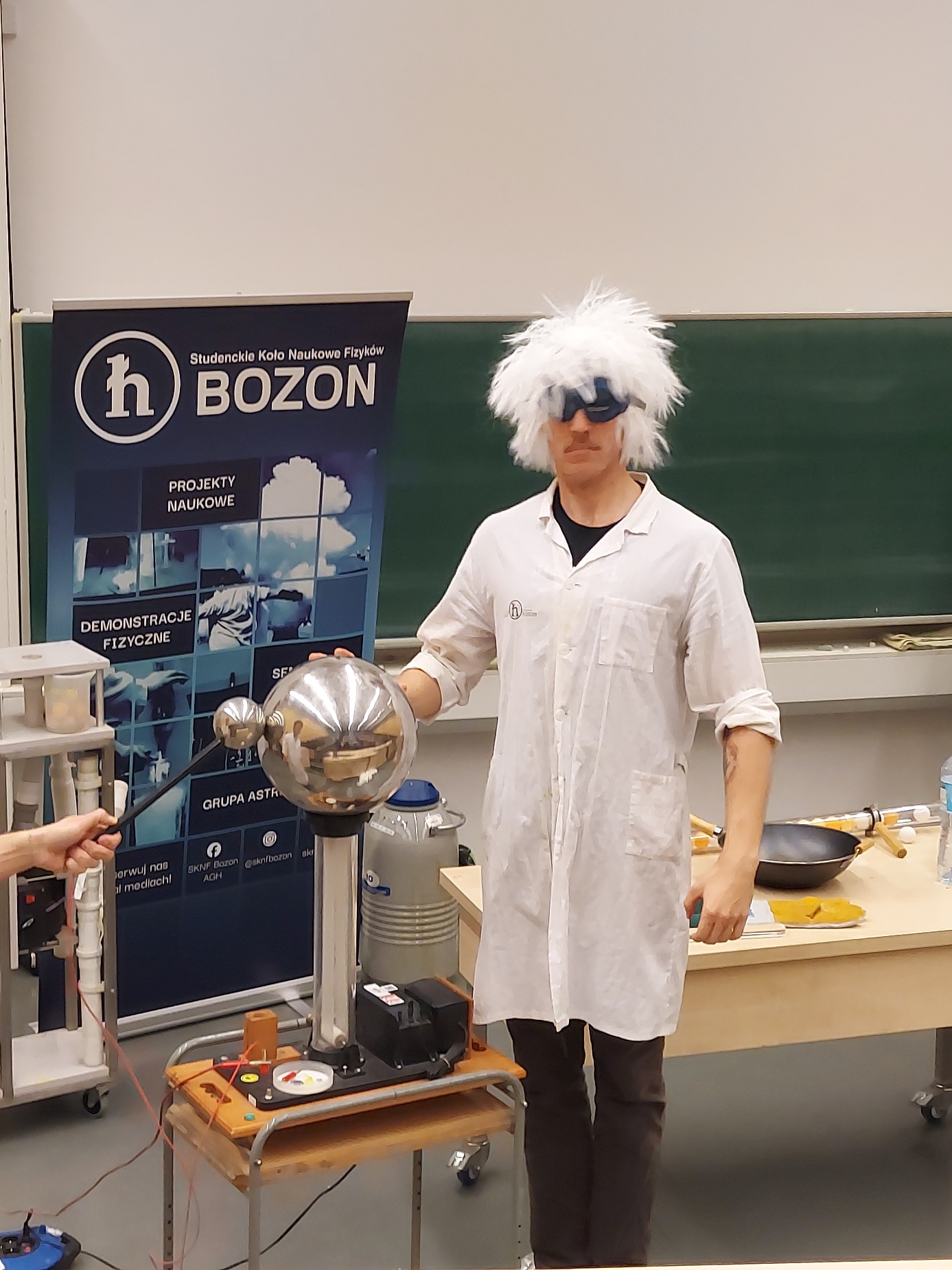 Uczniowie klas 1a, 1b, 2b wzięli udział w pokazach na Wydziale Fizyki i Informatyki Stosowanej AGH w Krakowie. Studenci koła naukowego BOZON i zabawny pan profesor wprowadzili uczniów w niezwykły świat nauki. Tematem przewodnim spotkania były:
