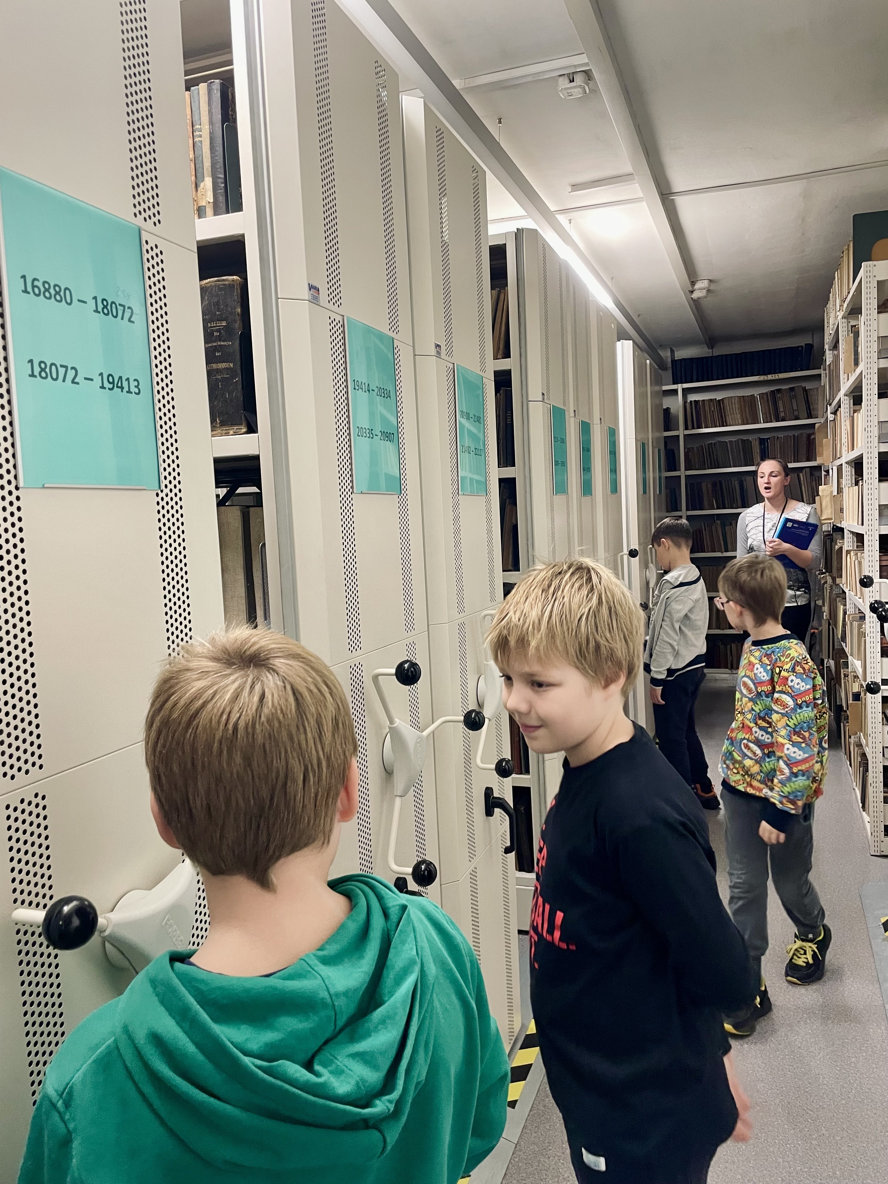 Tej jesieni klasa IIIa uczestniczyła w zajęciach bibliotecznych w Pedagogicznej Bibliotece Wojewódzkiej w Krakowie. Lekcja "Pozytywka" była poświęcona przygodom detektywa Pozytywki. Panie bibliotekarki przygotowały ciekawą prezentację o autorze książki Grzegorzu Kasdepke. Uczniowie wcielili się w detektywów i wspólnie rozwiązywali zagadkę zaginionych skarpetek. Zagrali w Memory "Detektyw Pozytywka na tropie" i przymierzali rekwizyty, które są używane do kamuflażu. Następnie była część kreatywna podczas, której każdy mógł narysować swojego detektywa i przybić biblioteczne pieczątki na zakładki. Po zajęciach czekała na wszystkich niespodzianka - oprowadzenie po bibliotece. Uczniowie zwiedzili wszystkie zakamarki biblioteki. Zobaczyli magazyn, wypożyczalnie, czytelnię i dział gromadzenia, w którym znajdują się stare katalogi biblioteczne. Usłyszeli jak funkcjonuje biblioteka i jakie zadania mają pracownicy.