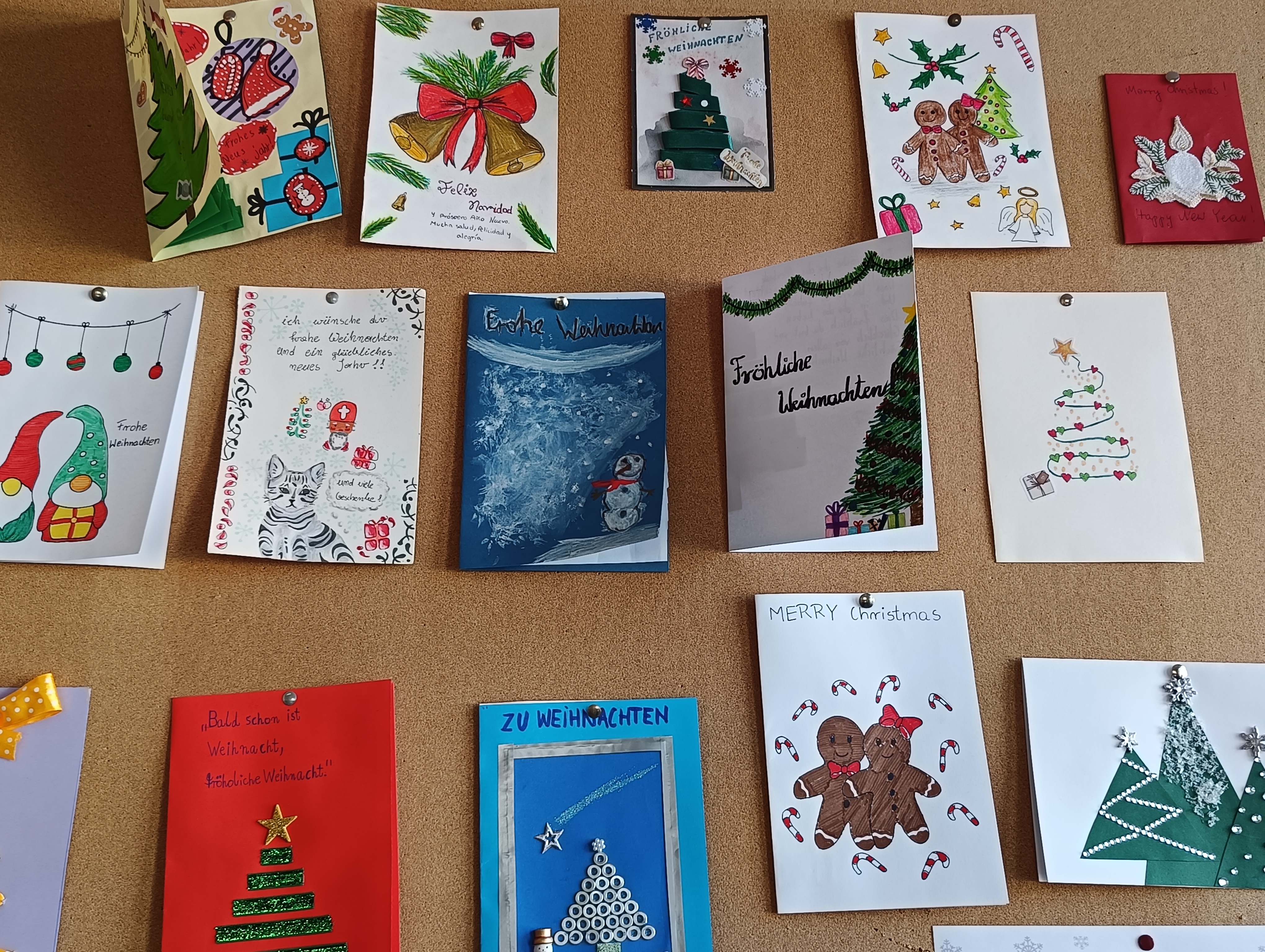 Na początku stycznia został rozstrzygnięty szkolny konkurs na najciekawszą kartkę bożonarodzeniową z życzeniami w języku obcym. Uczniowie wykazali się ogromną kreatywnością, pomysłowością oraz starannością wykonania prac. Wszystkie kartki zachwycały oryginalnością i świątecznym klimatem, dlatego wybór zwycięzców był bardzo trudny.