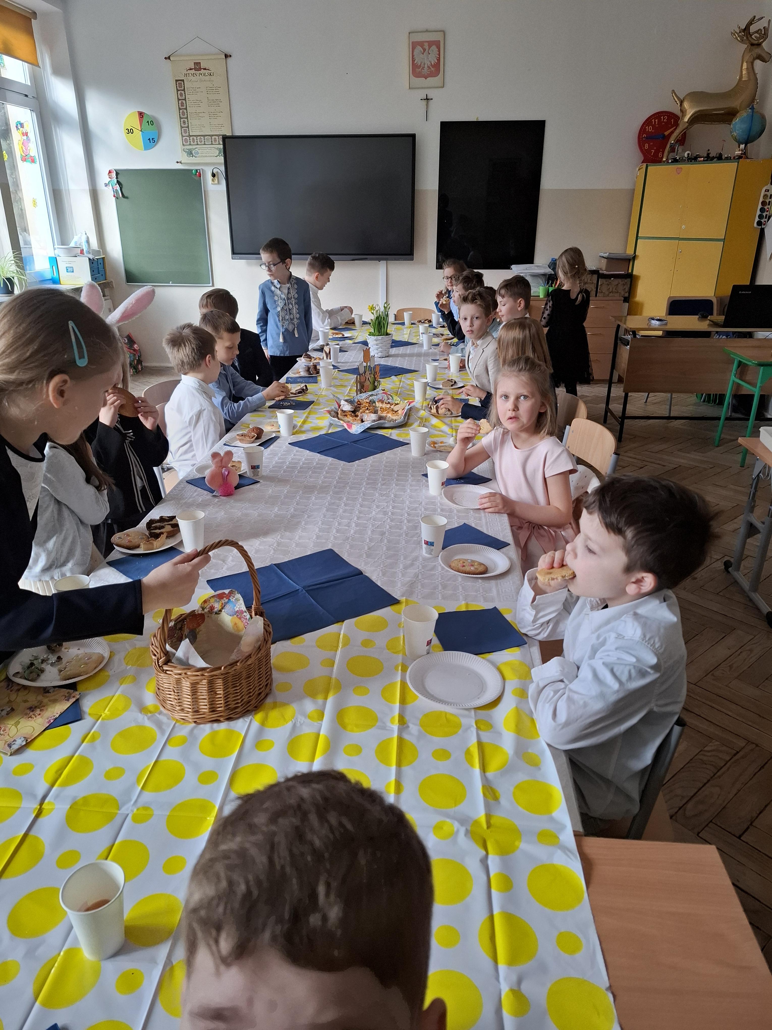 W klasie 1 odbyło się uroczyste śniadanie wielkanocne, które wprowadziło uczniów w radosny i świąteczny nastrój. Na pięknie udekorowanym stole nie zabrakło tradycyjnych wielkanocnych przysmaków oraz wiosennych ozdób.