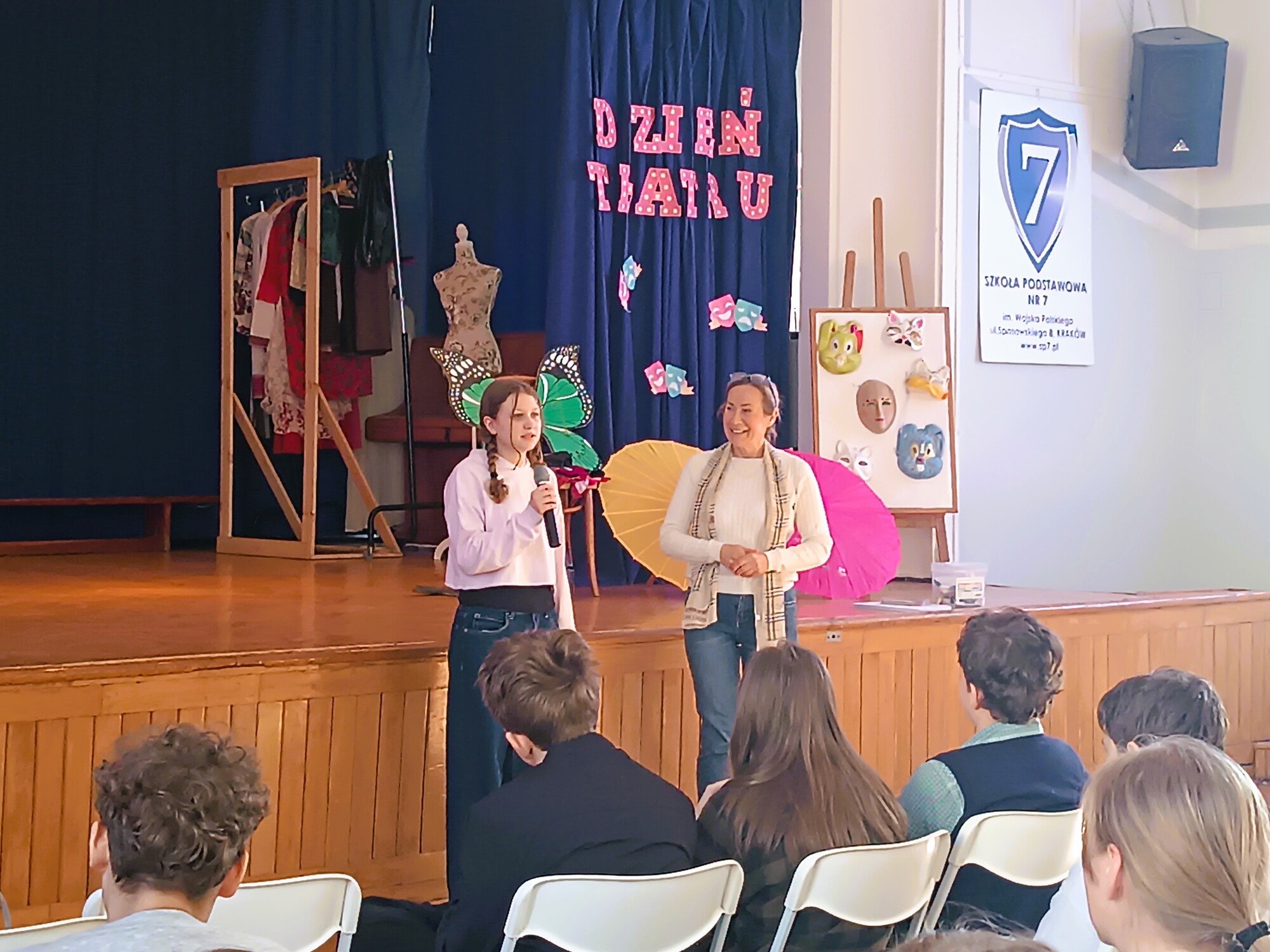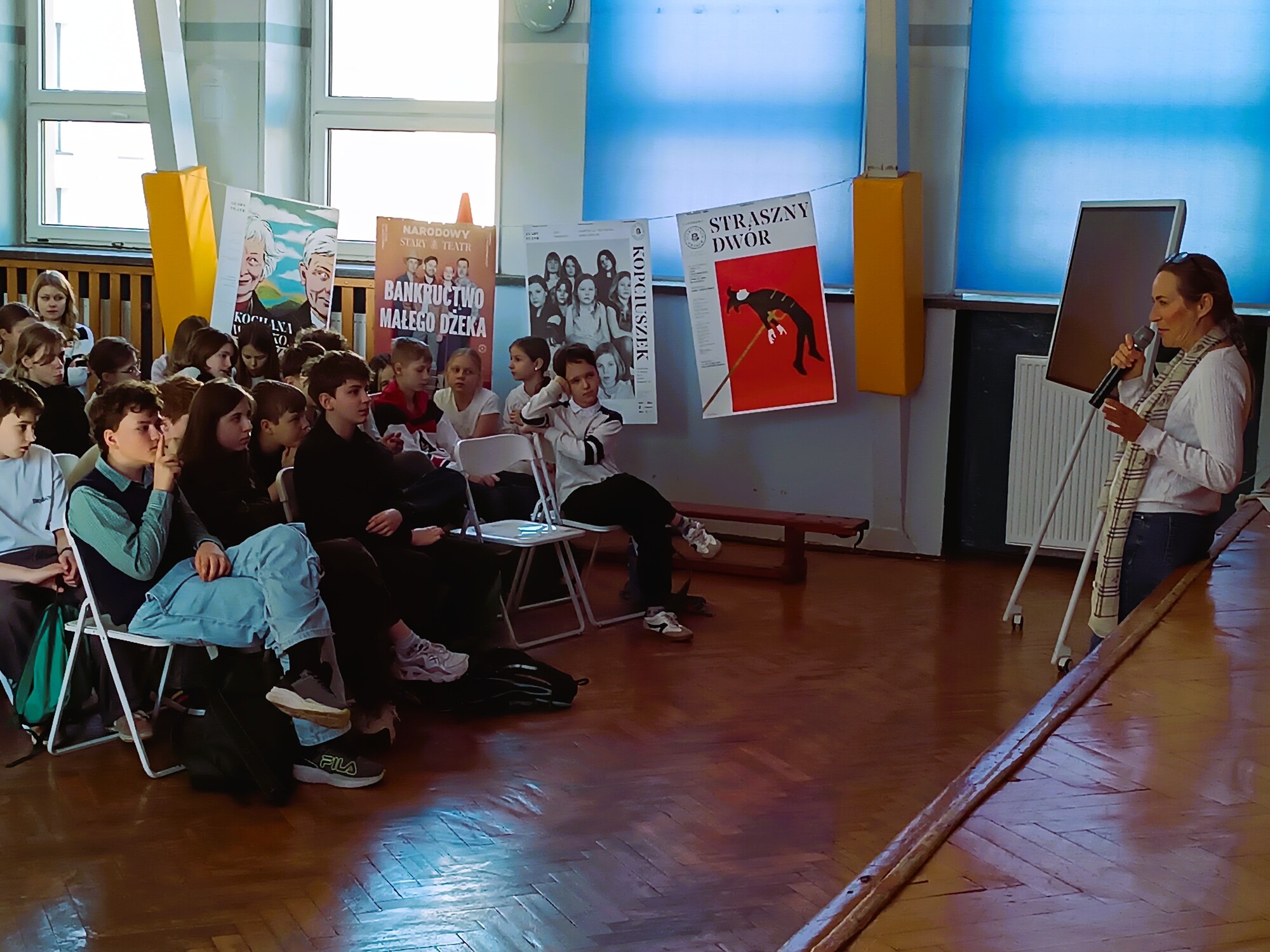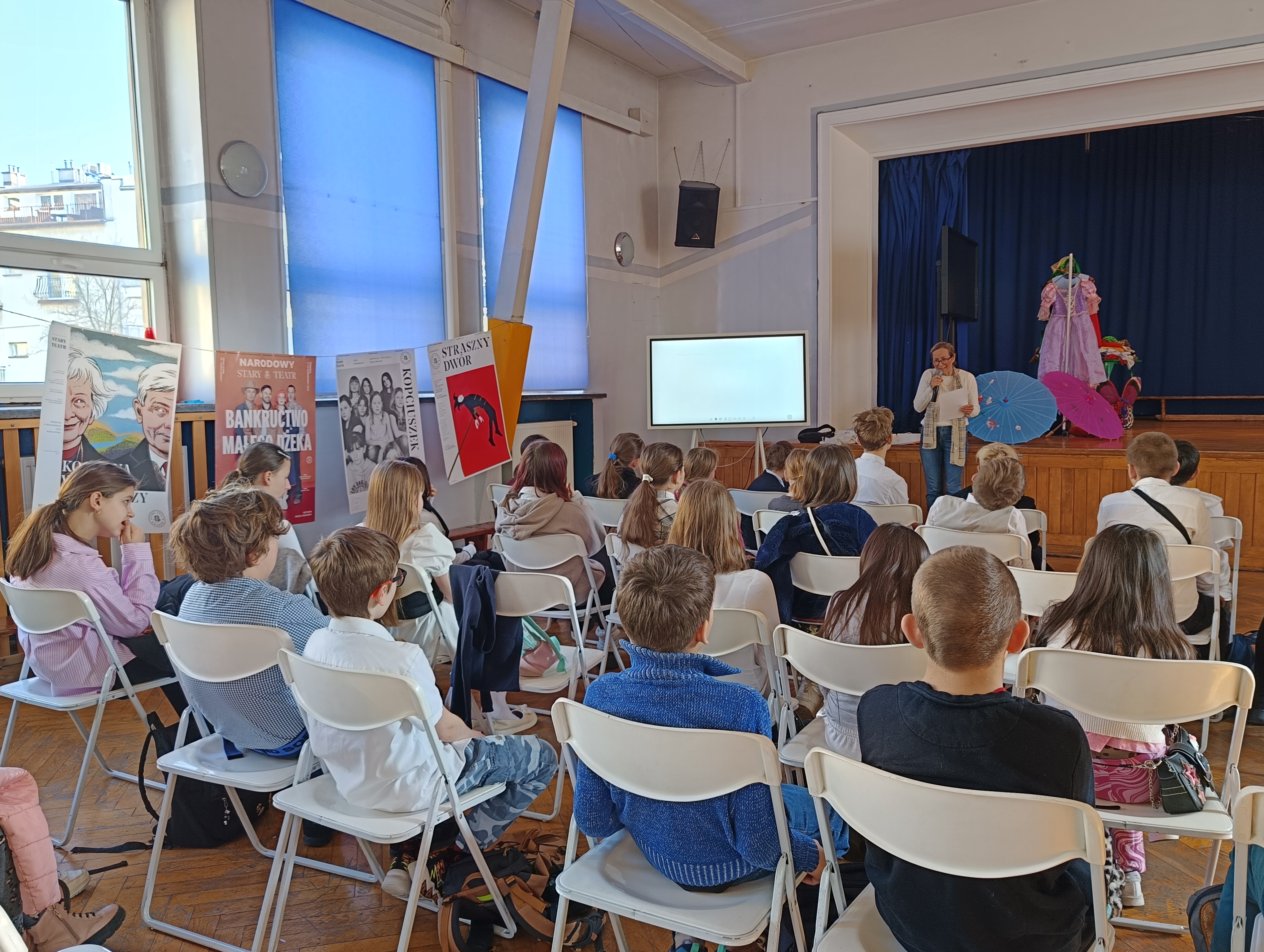 Klasy 5–6 miały dodatkowo okazję zajrzeć za kulisy teatru podczas oprowadzania po Teatrze im. J. Słowackiego w Krakowie. Wzięły także udział w warsztatach przygotowanych przez nauczycieli, podczas których tworzyły krótkie etiudy teatralne. Uczniowie wcielali się w ulubionych bohaterów literackich i filmowych, prezentując ich w różnych formach – od wywiadu, przez podcast, aż po film biograficzny czy wystawę.
