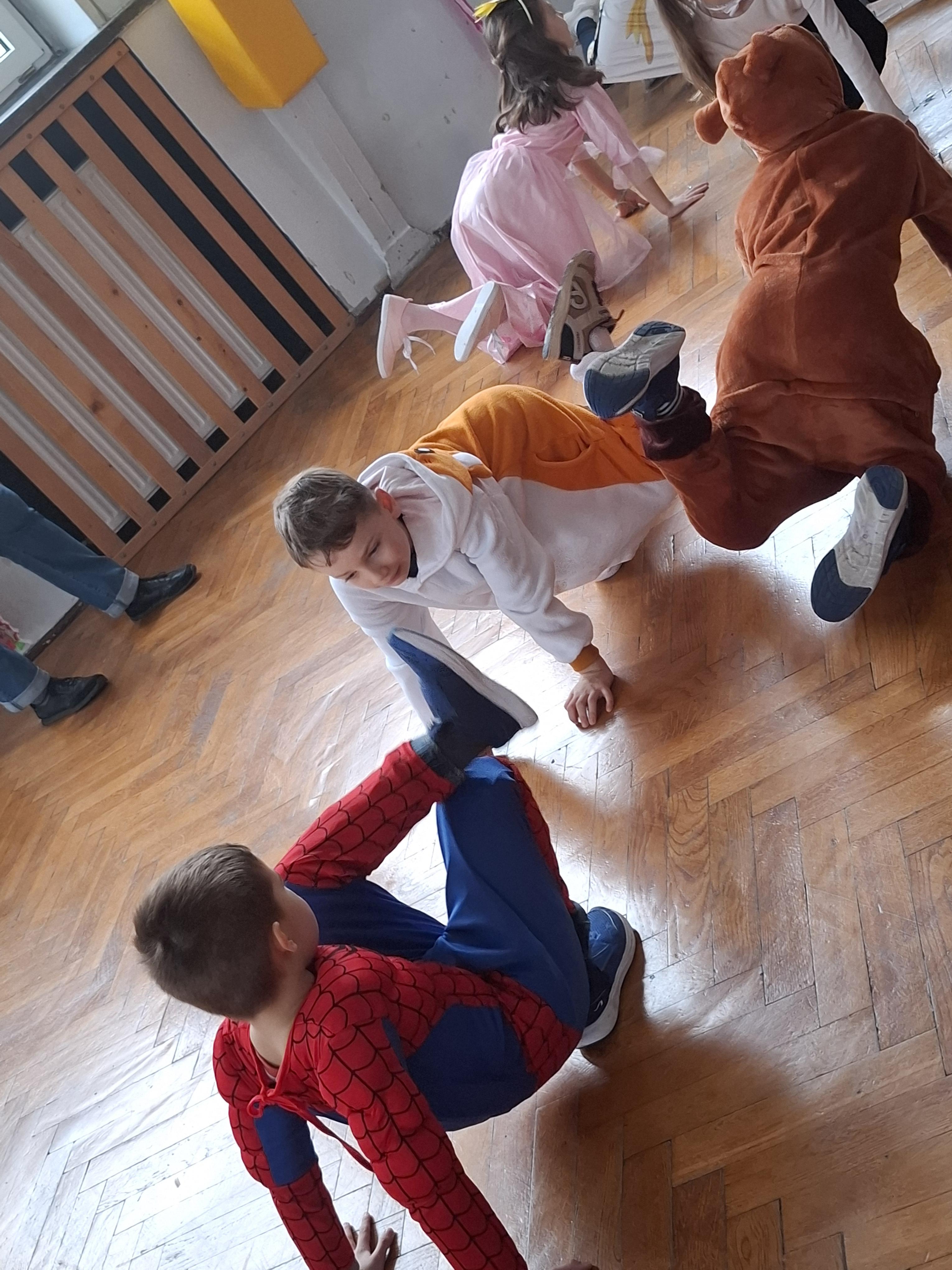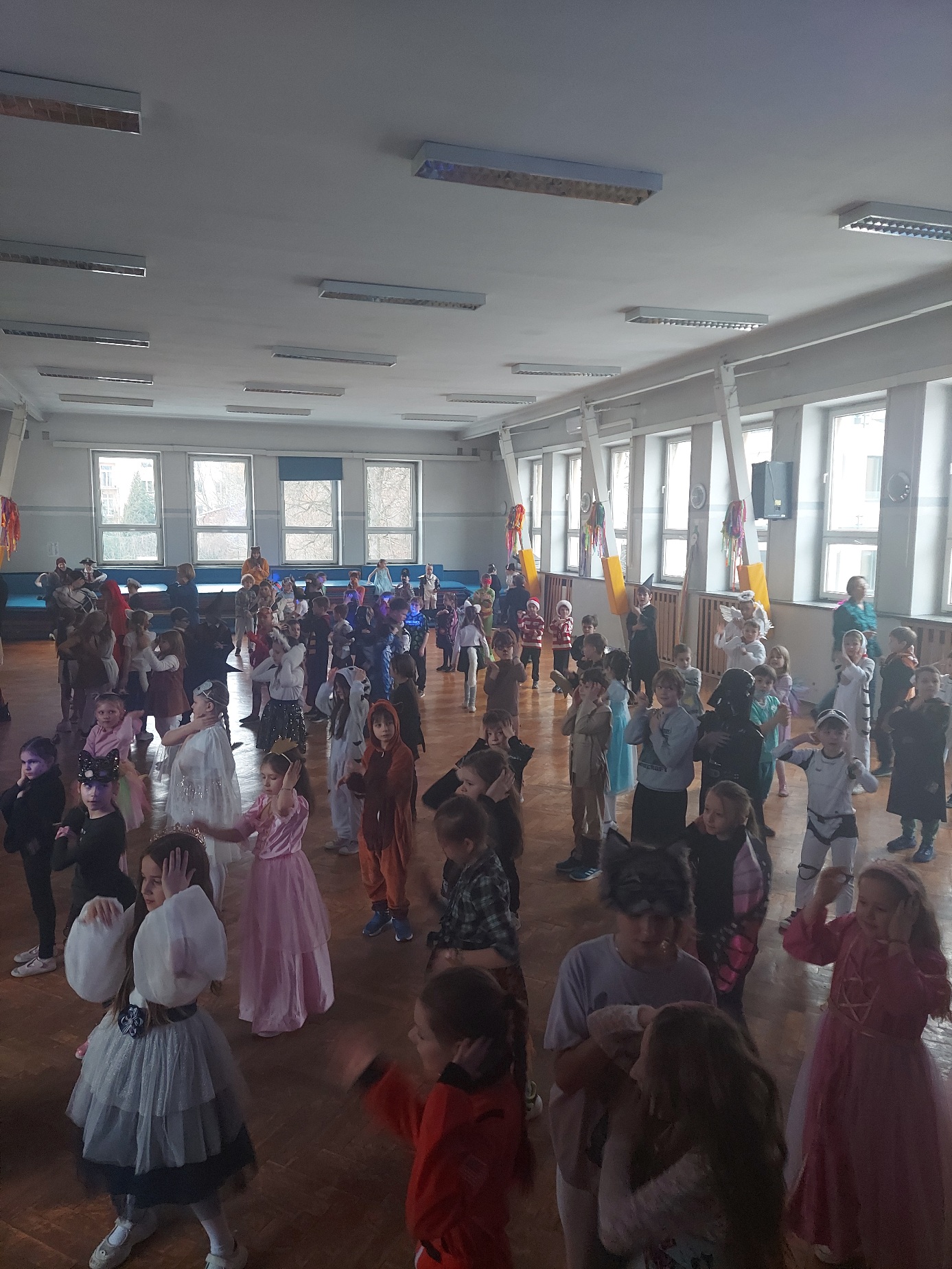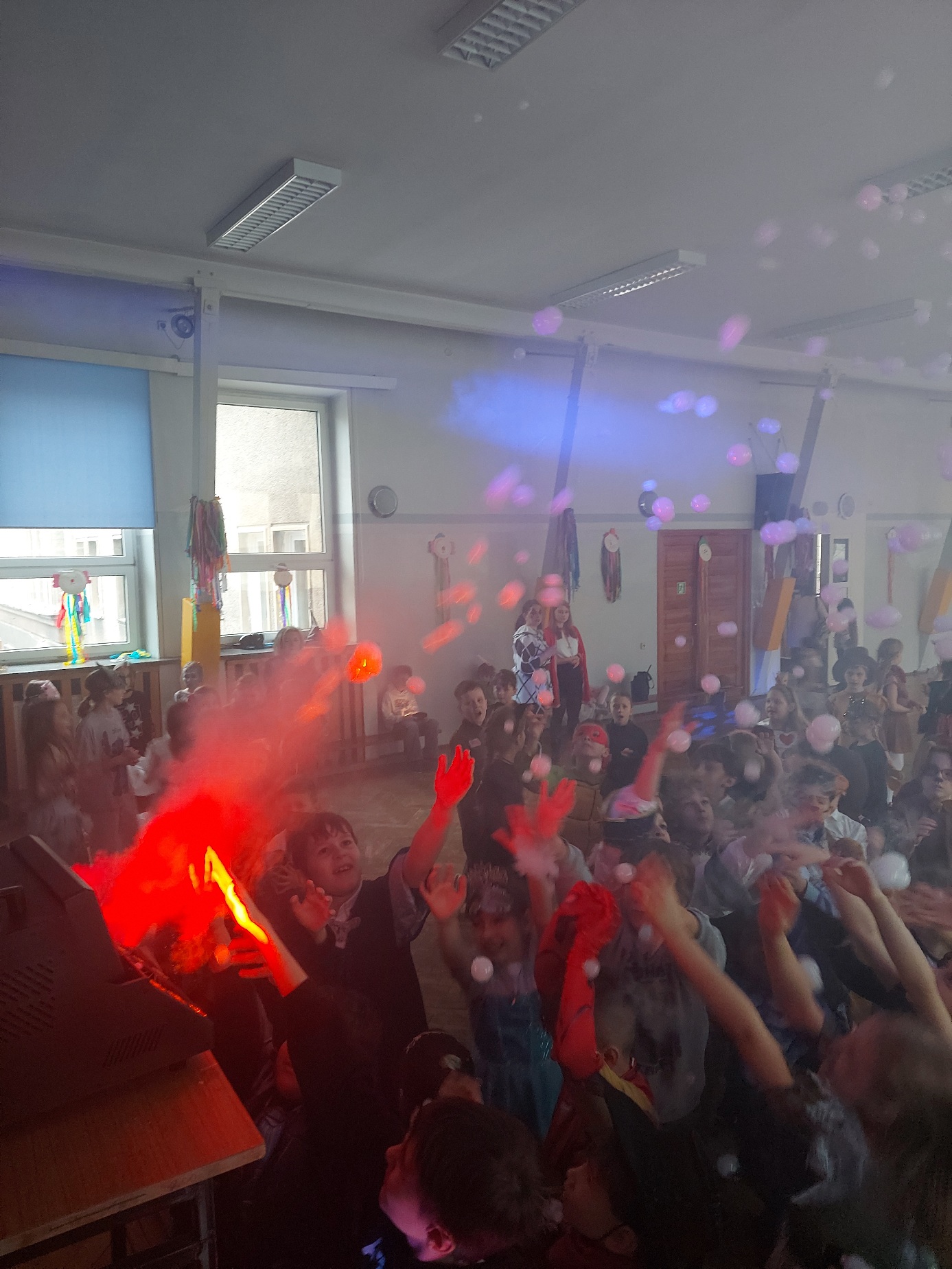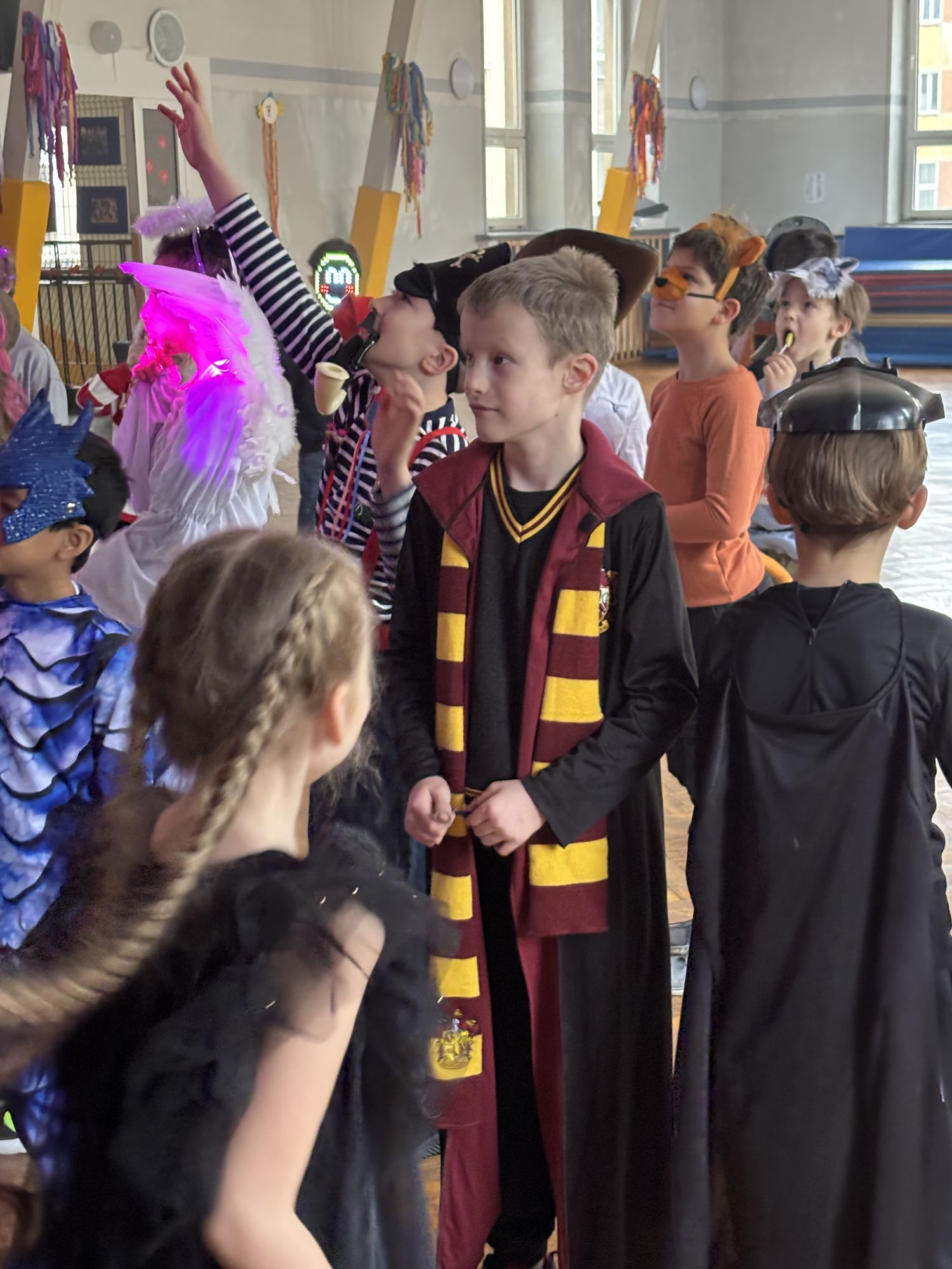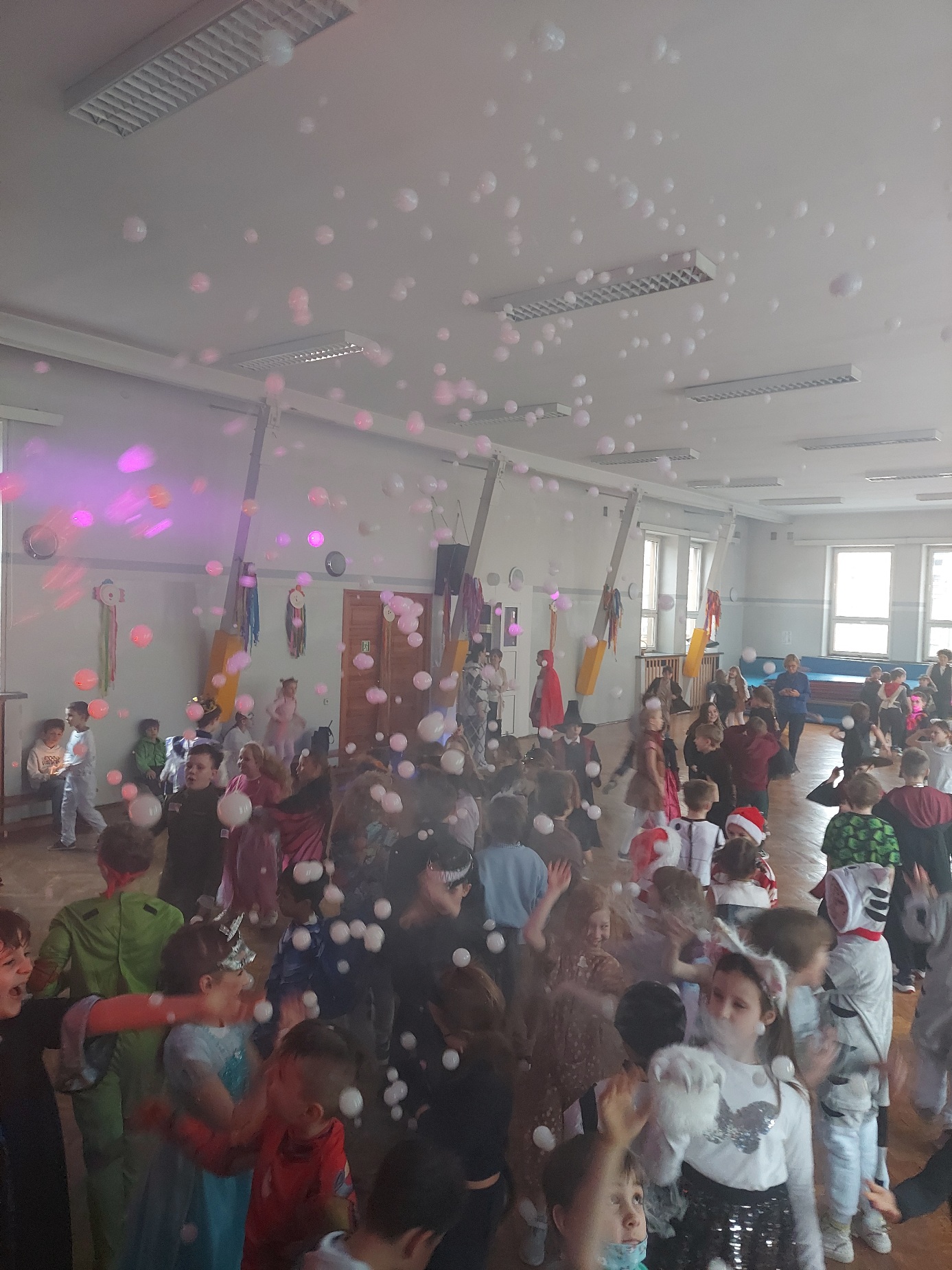 Bal karnawałowy dla uczniów klas 1–3 był wyjątkowym i radosnym wydarzeniem. Imprezę prowadził DJ, który od samego początku zadbał o świetną atmosferę i dobry kontakt z dziećmi. Żywiołowa muzyka dodawała wszystkim energii, a dodatkowo uczniowie mogli zgłaszać własne propozycje, co sprawiło im ogromną radość. Podczas balu nie zabrakło ciekawych zabaw ruchowych i tanecznych, w których brały udział wszystkie dzieci. Zachwyt wywoływały efekty specjalne, takie jak bańki mydlane oraz kolorowe światła, które dodały imprezie prawdziwie karnawałowego klimatu. Uczniowie bawili się znakomicie, uśmiech, energia i entuzjazm towarzyszyły im przez cały czas trwania balu. Zabawa była bardzo udana! Mamy nadzieję, że na długo pozostanie miłym wspomnieniem dla najmłodszych.