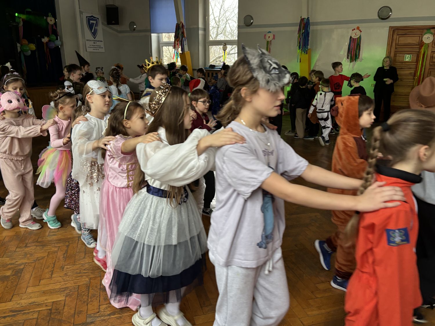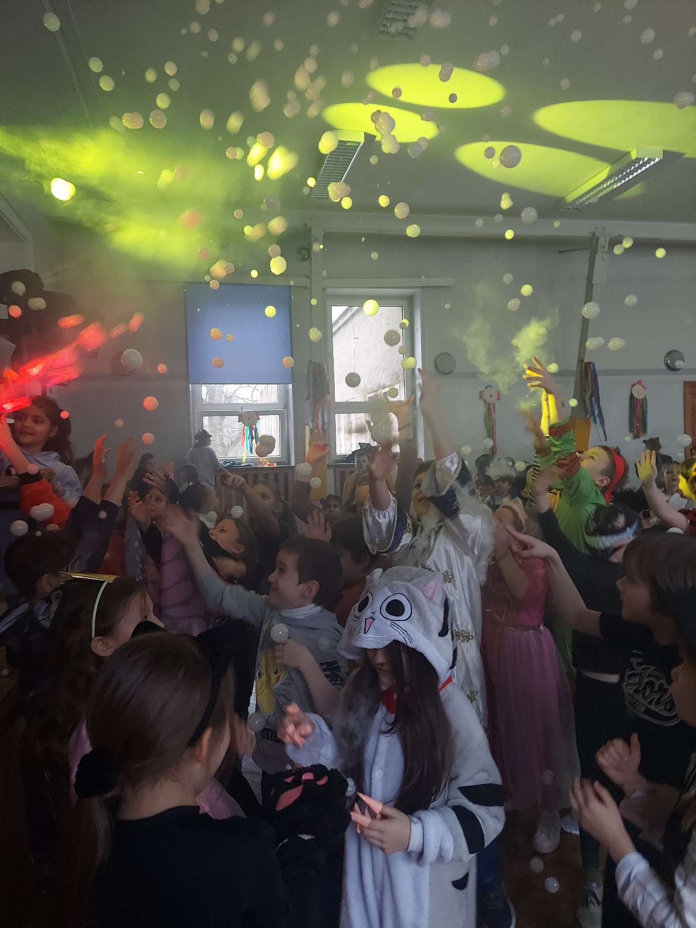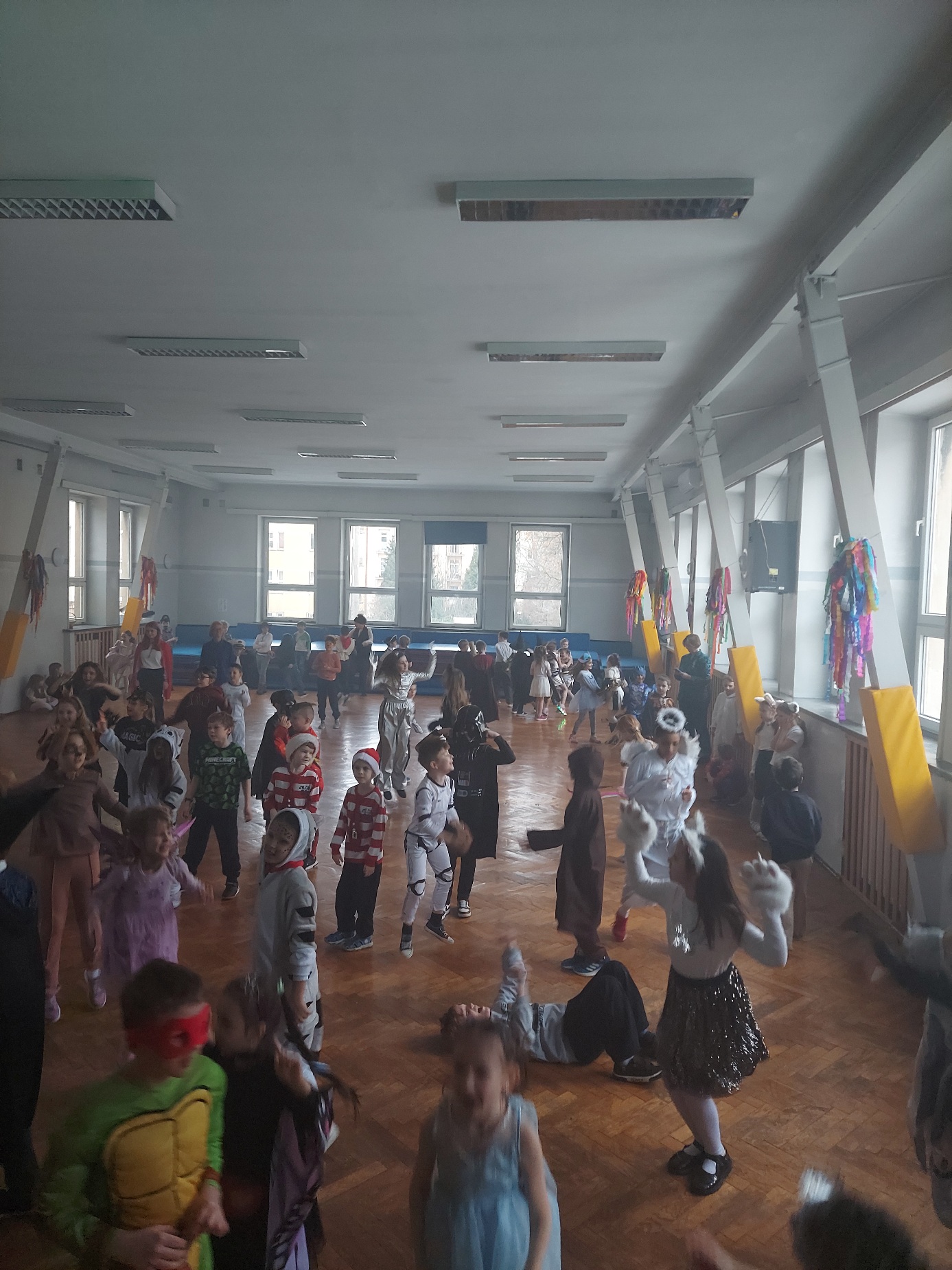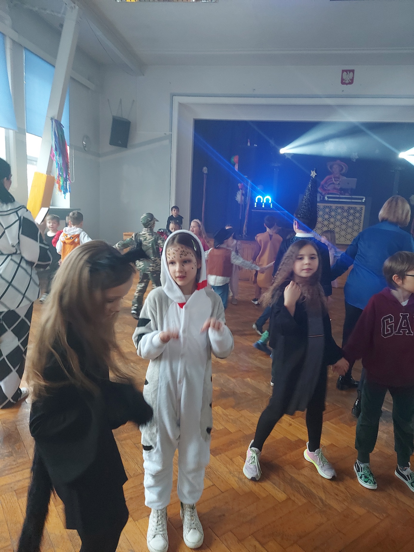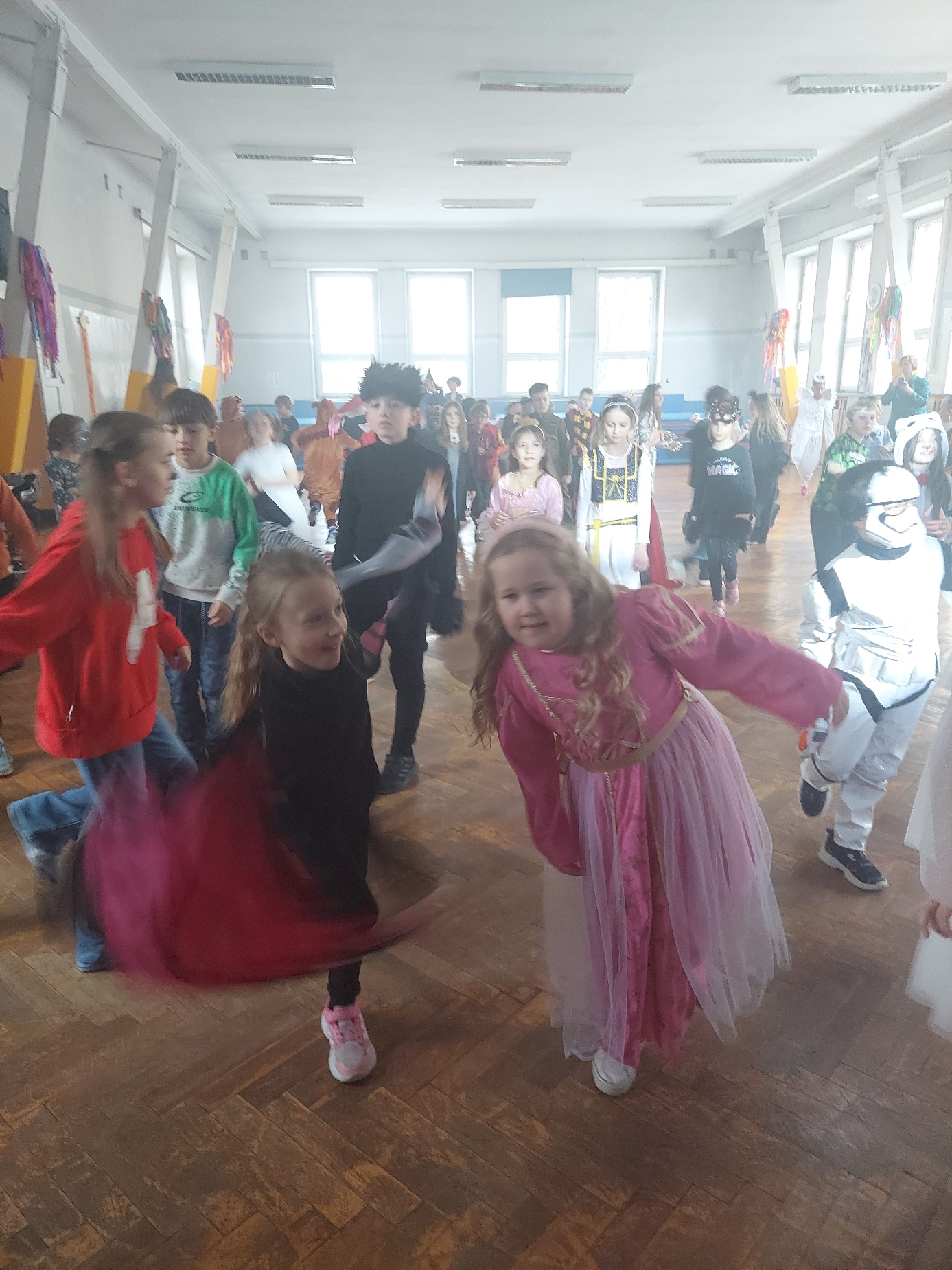 Bal karnawałowy dla uczniów klas 1–3 był wyjątkowym i radosnym wydarzeniem. Imprezę prowadził DJ, który od samego początku zadbał o świetną atmosferę i dobry kontakt z dziećmi. Żywiołowa muzyka dodawała wszystkim energii, a dodatkowo uczniowie mogli zgłaszać własne propozycje, co sprawiło im ogromną radość. Podczas balu nie zabrakło ciekawych zabaw ruchowych i tanecznych, w których brały udział wszystkie dzieci. Zachwyt wywoływały efekty specjalne, takie jak bańki mydlane oraz kolorowe światła, które dodały imprezie prawdziwie karnawałowego klimatu. Uczniowie bawili się znakomicie, uśmiech, energia i entuzjazm towarzyszyły im przez cały czas trwania balu. Zabawa była bardzo udana! Mamy nadzieję, że na długo pozostanie miłym wspomnieniem dla najmłodszych.