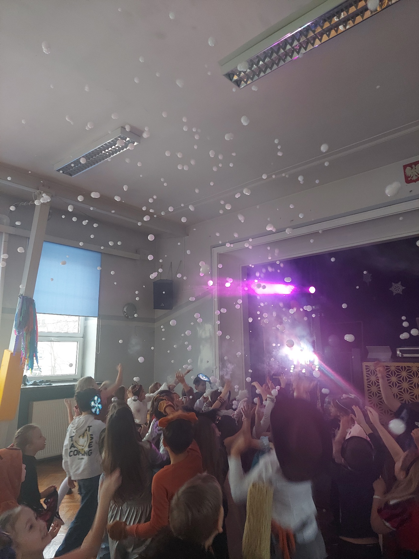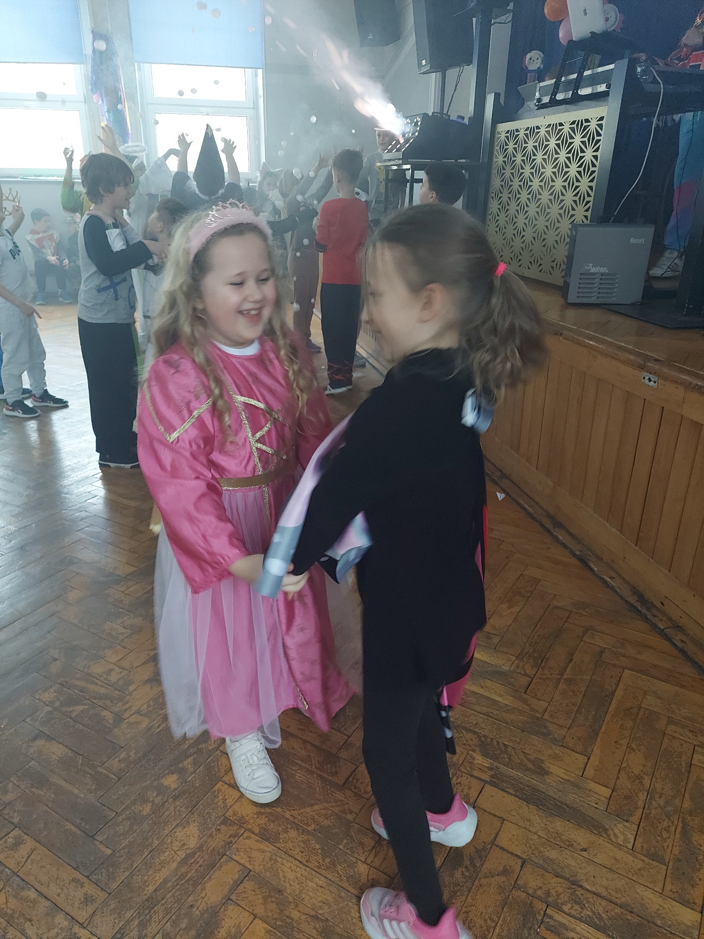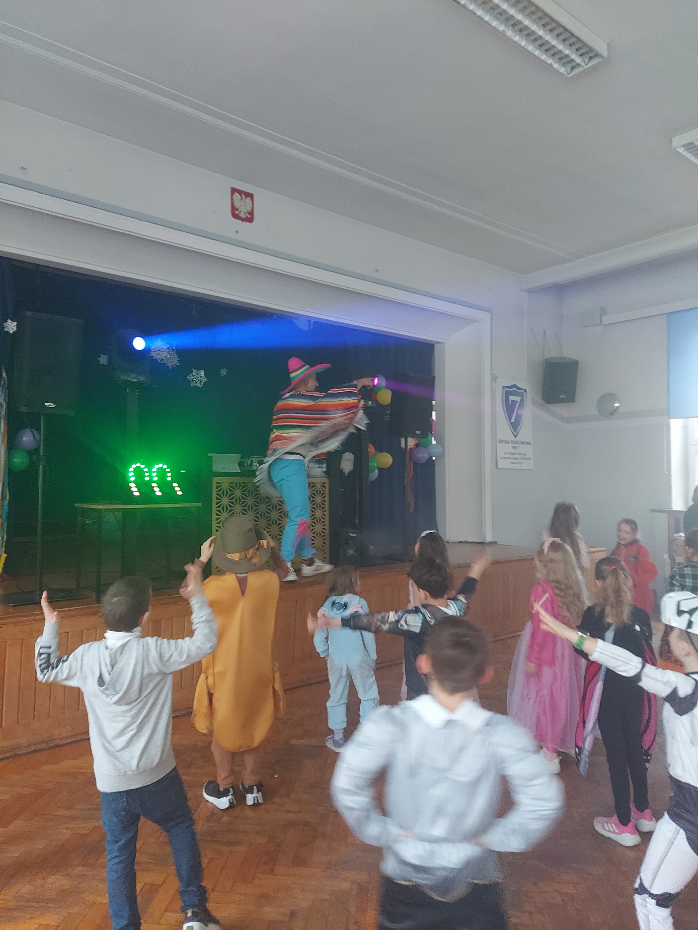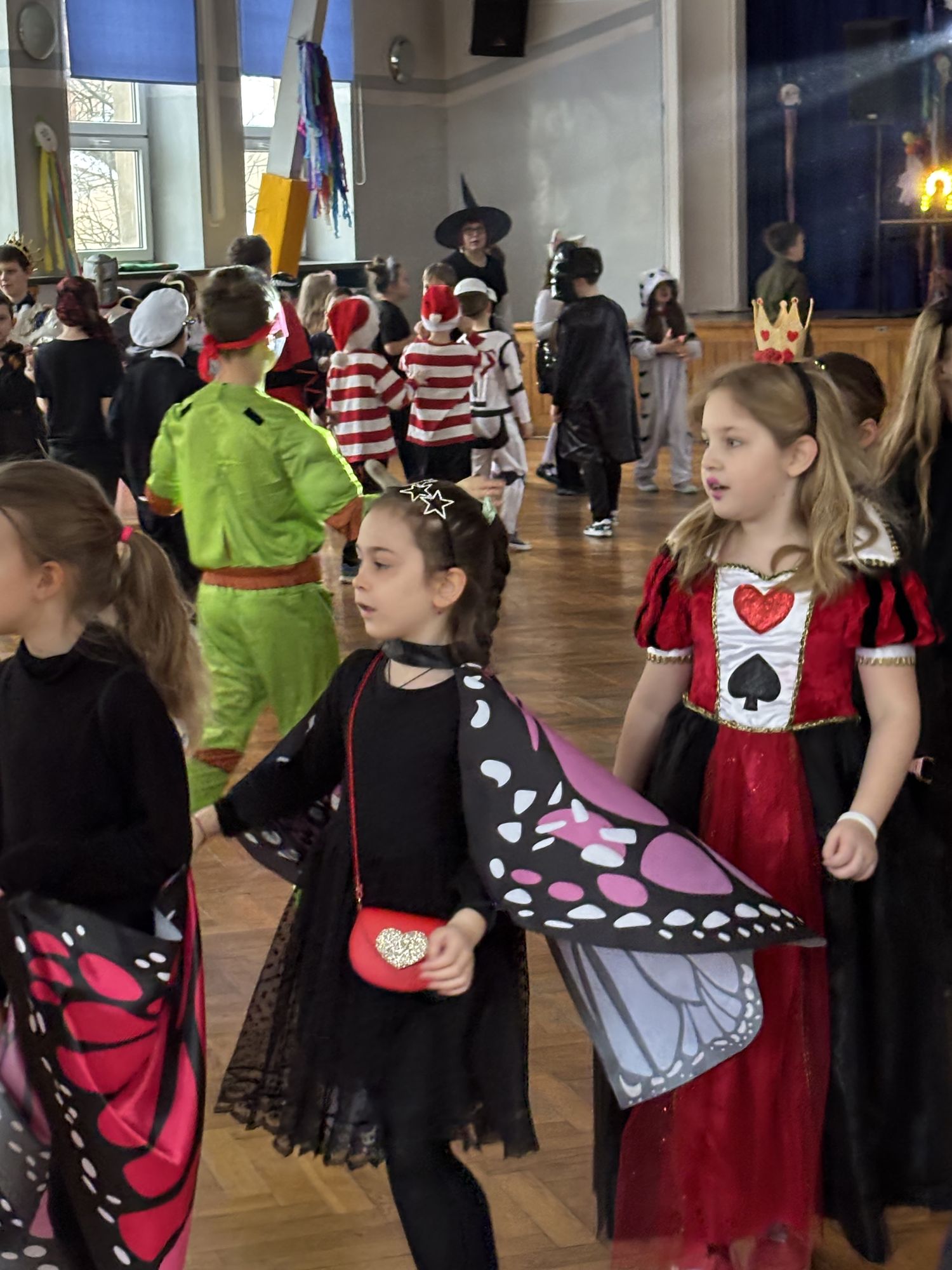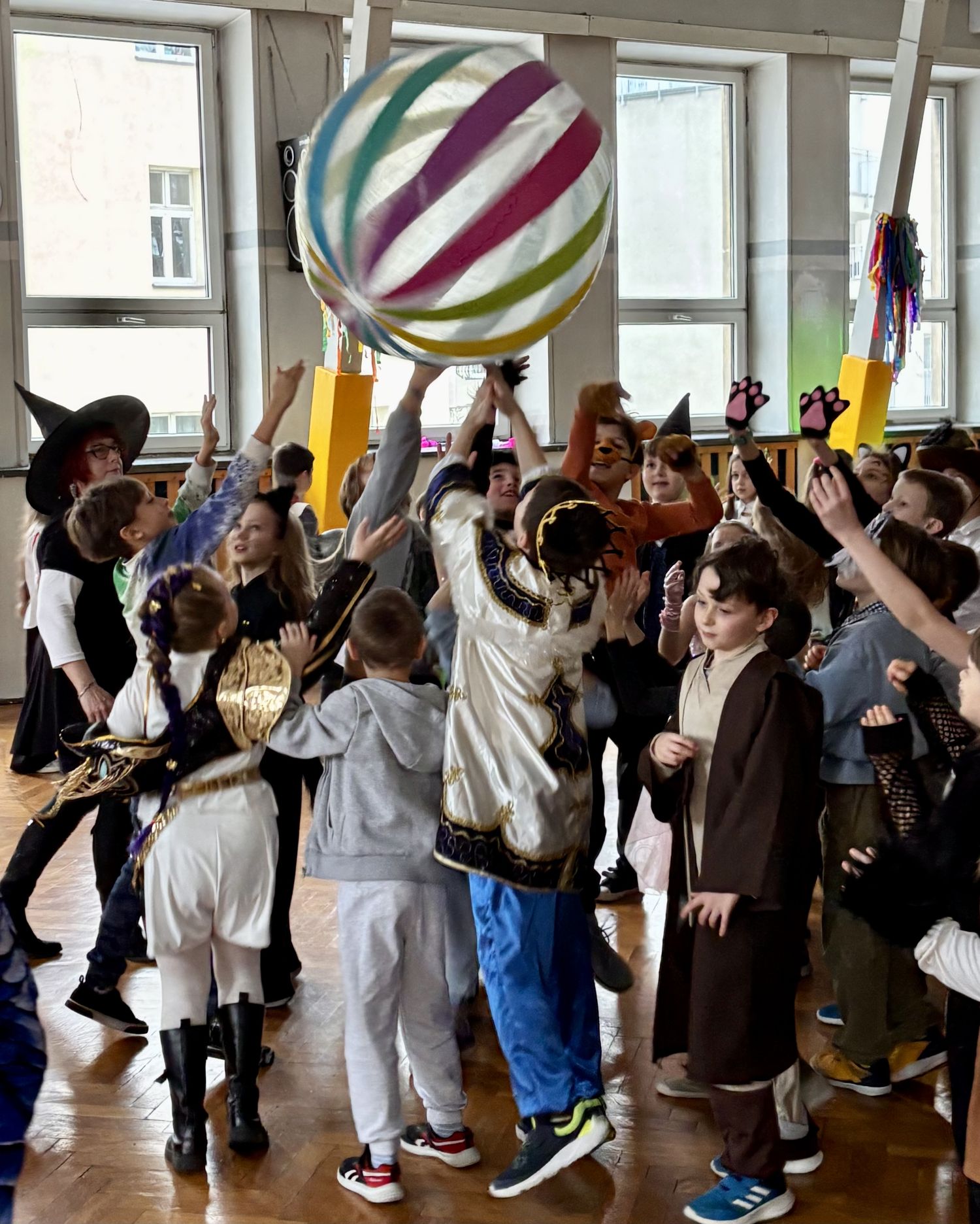 Bal karnawałowy dla uczniów klas 1–3 był wyjątkowym i radosnym wydarzeniem. Imprezę prowadził DJ, który od samego początku zadbał o świetną atmosferę i dobry kontakt z dziećmi. Żywiołowa muzyka dodawała wszystkim energii, a dodatkowo uczniowie mogli zgłaszać własne propozycje, co sprawiło im ogromną radość. Podczas balu nie zabrakło ciekawych zabaw ruchowych i tanecznych, w których brały udział wszystkie dzieci. Zachwyt wywoływały efekty specjalne, takie jak bańki mydlane oraz kolorowe światła, które dodały imprezie prawdziwie karnawałowego klimatu. Uczniowie bawili się znakomicie, uśmiech, energia i entuzjazm towarzyszyły im przez cały czas trwania balu. Zabawa była bardzo udana! Mamy nadzieję, że na długo pozostanie miłym wspomnieniem dla najmłodszych.