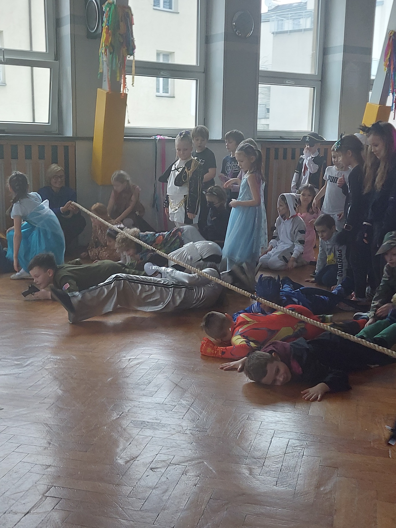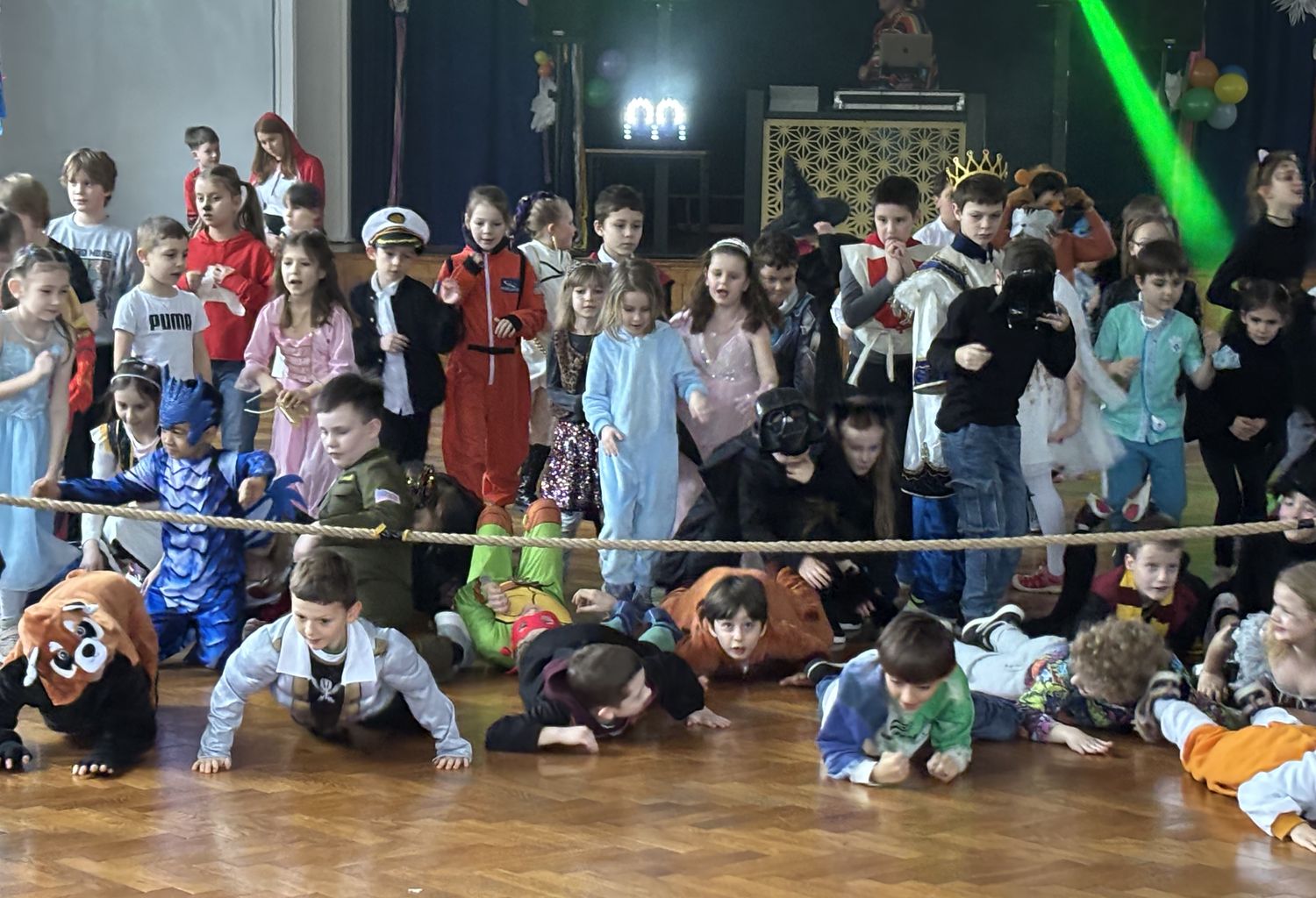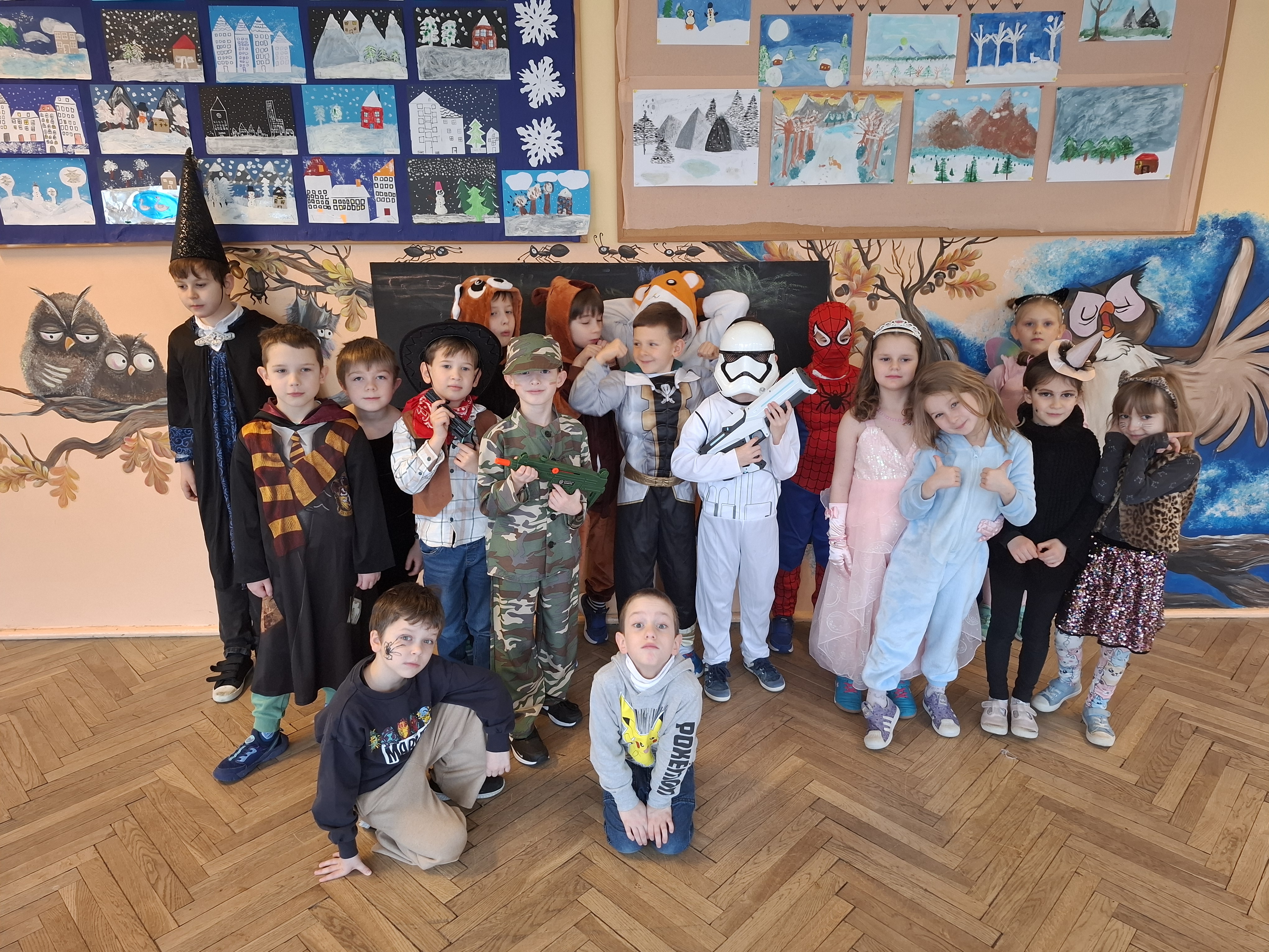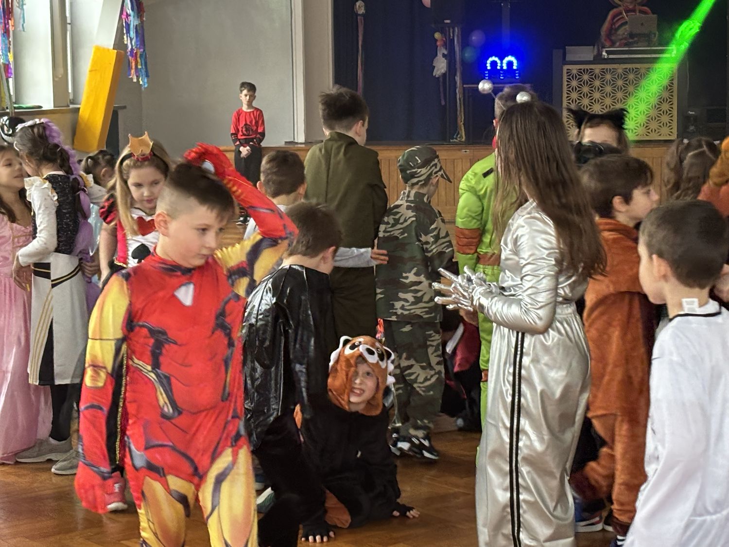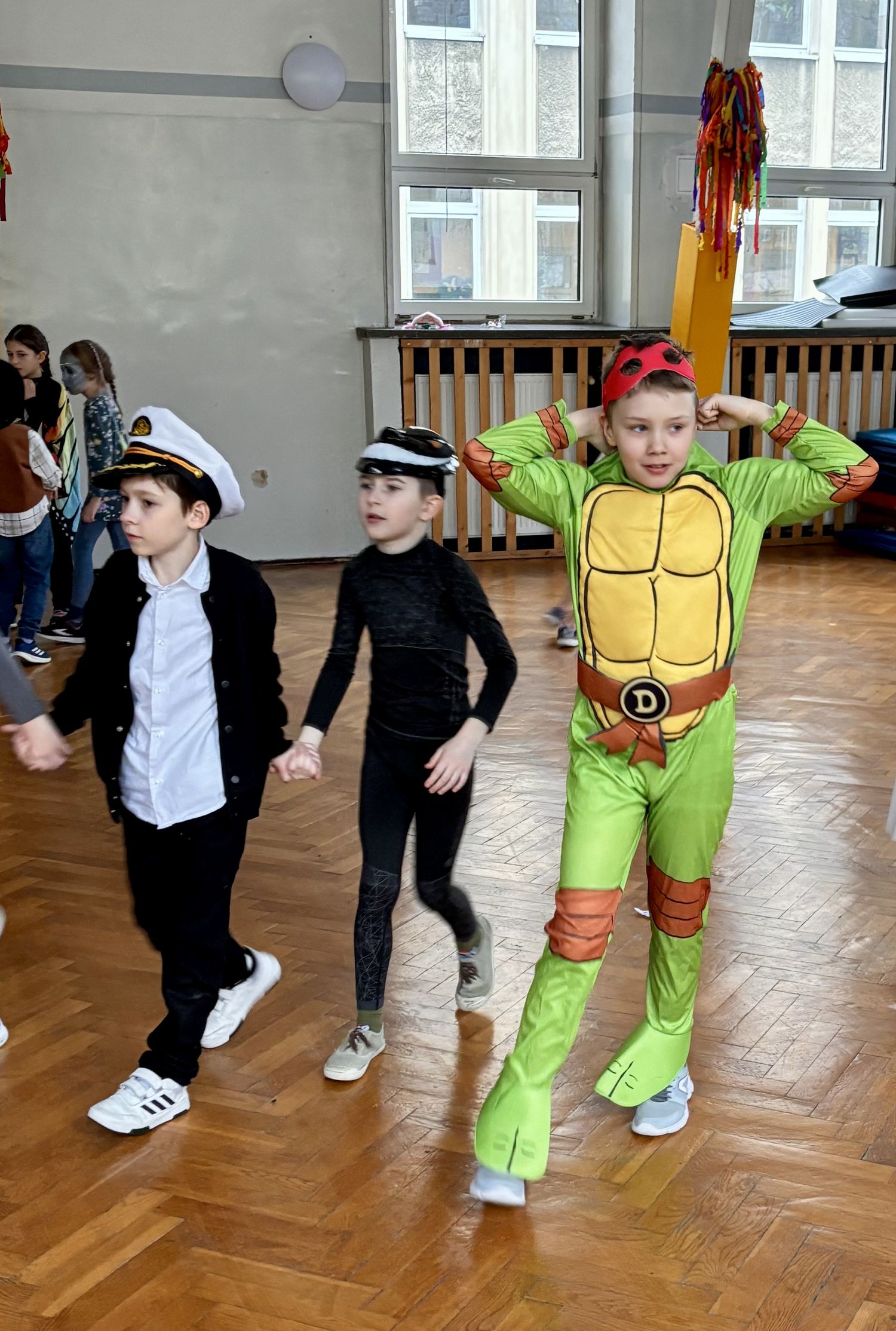 Bal karnawałowy dla uczniów klas 1–3 był wyjątkowym i radosnym wydarzeniem. Imprezę prowadził DJ, który od samego początku zadbał o świetną atmosferę i dobry kontakt z dziećmi. Żywiołowa muzyka dodawała wszystkim energii, a dodatkowo uczniowie mogli zgłaszać własne propozycje, co sprawiło im ogromną radość. Podczas balu nie zabrakło ciekawych zabaw ruchowych i tanecznych, w których brały udział wszystkie dzieci. Zachwyt wywoływały efekty specjalne, takie jak bańki mydlane oraz kolorowe światła, które dodały imprezie prawdziwie karnawałowego klimatu. Uczniowie bawili się znakomicie, uśmiech, energia i entuzjazm towarzyszyły im przez cały czas trwania balu. Zabawa była bardzo udana! Mamy nadzieję, że na długo pozostanie miłym wspomnieniem dla najmłodszych.
