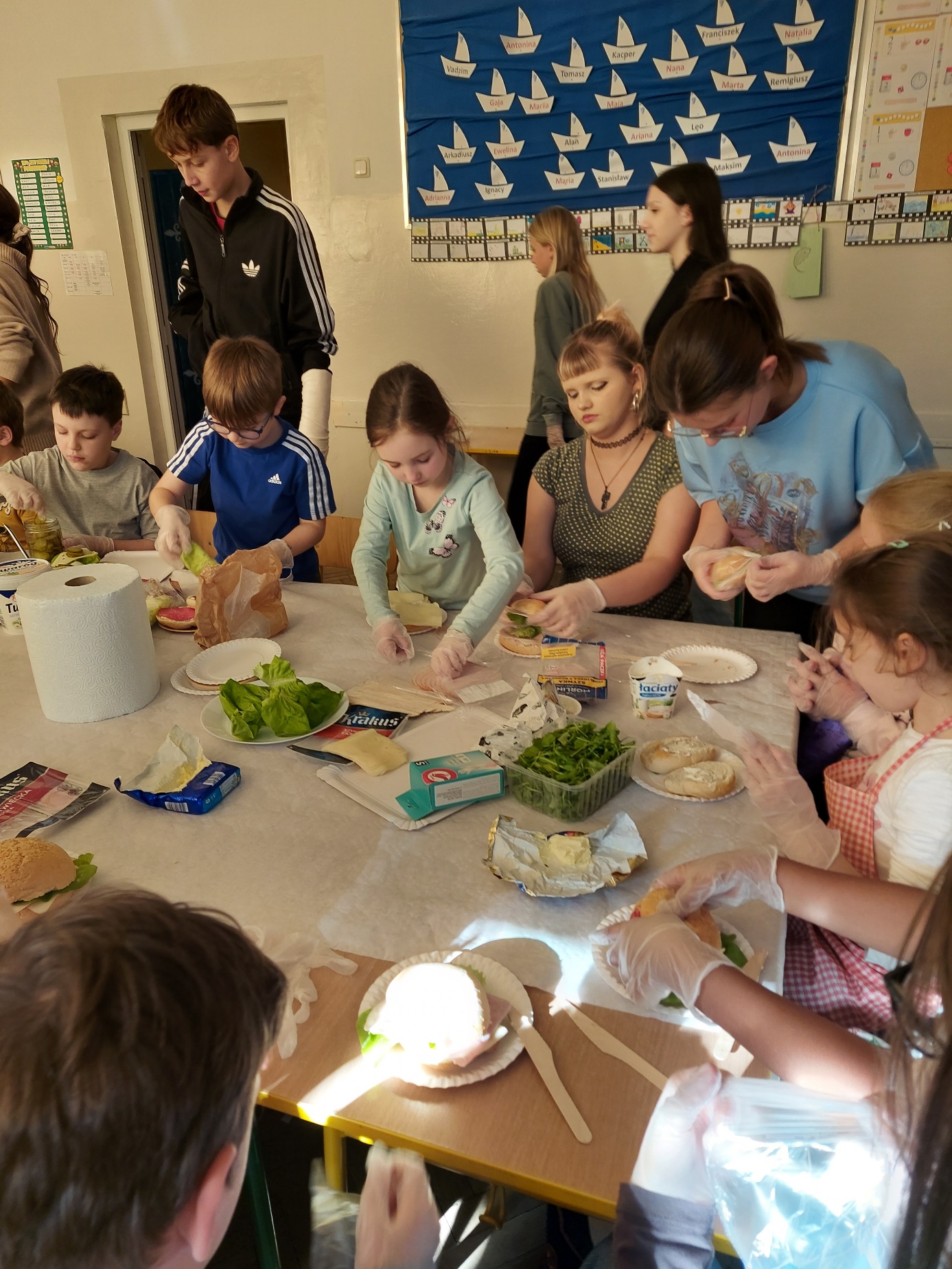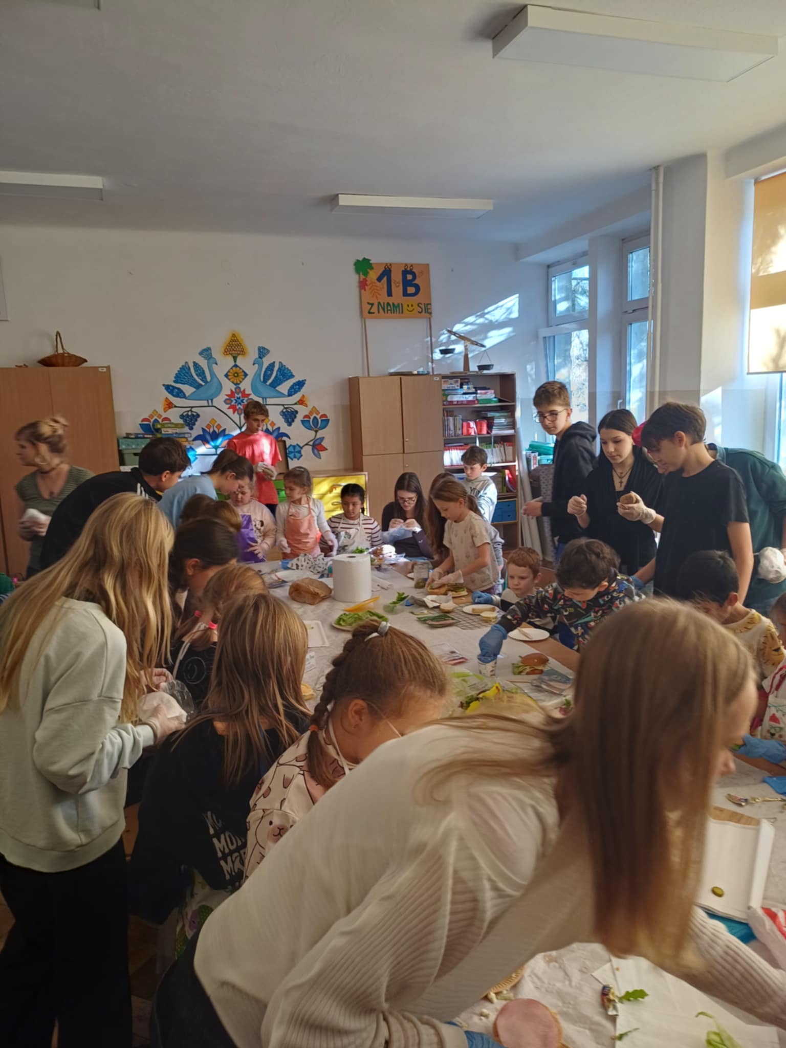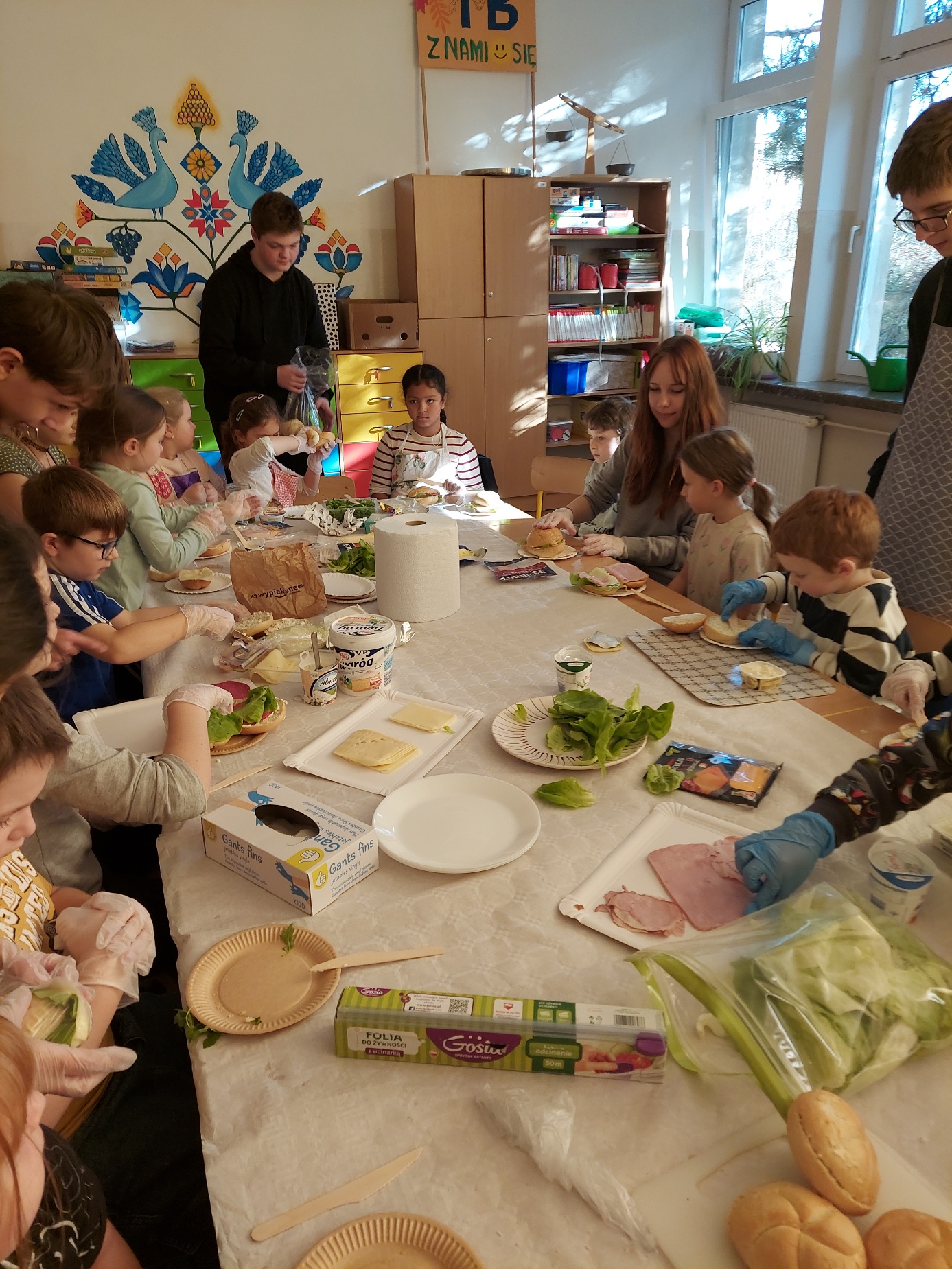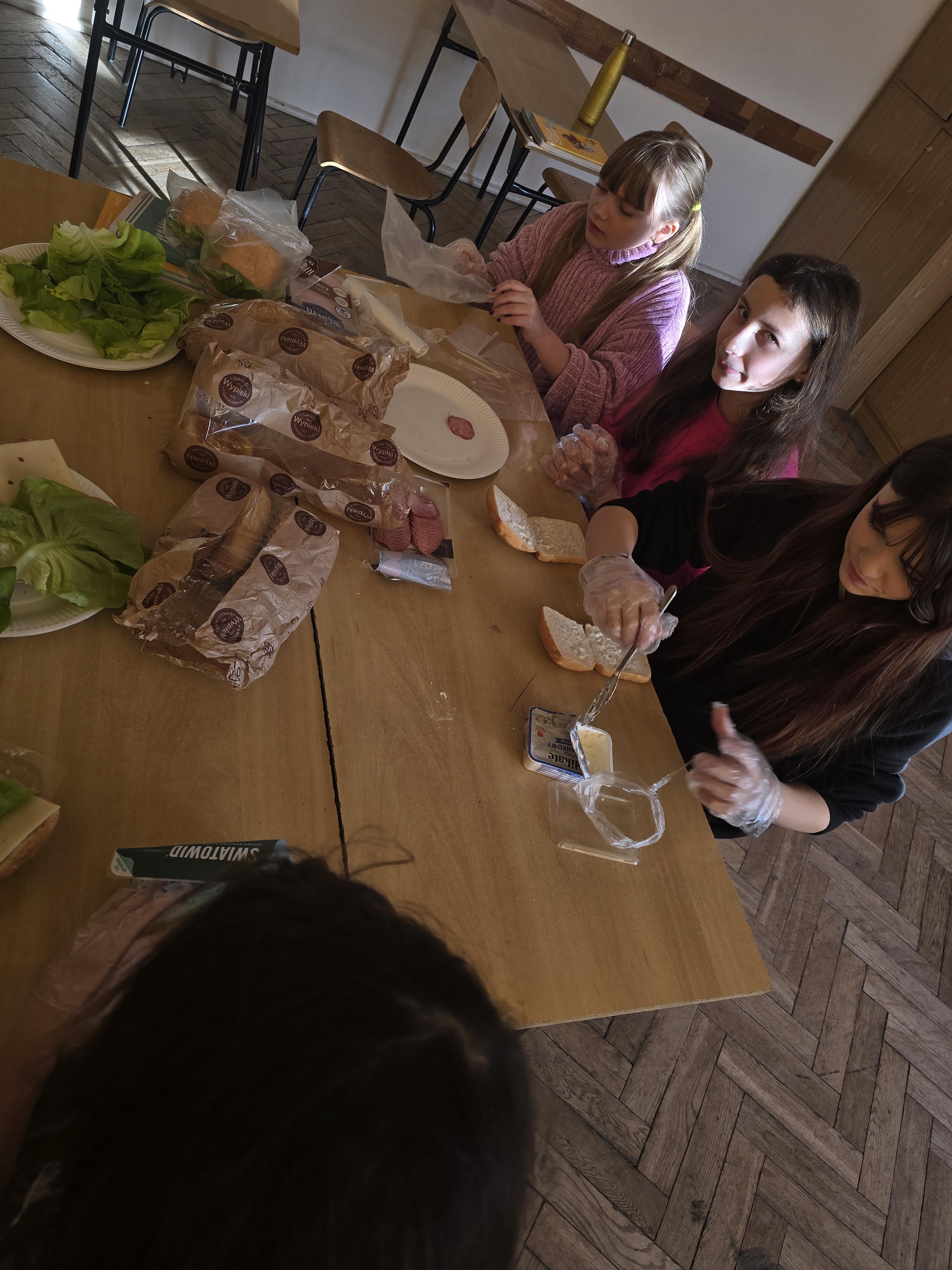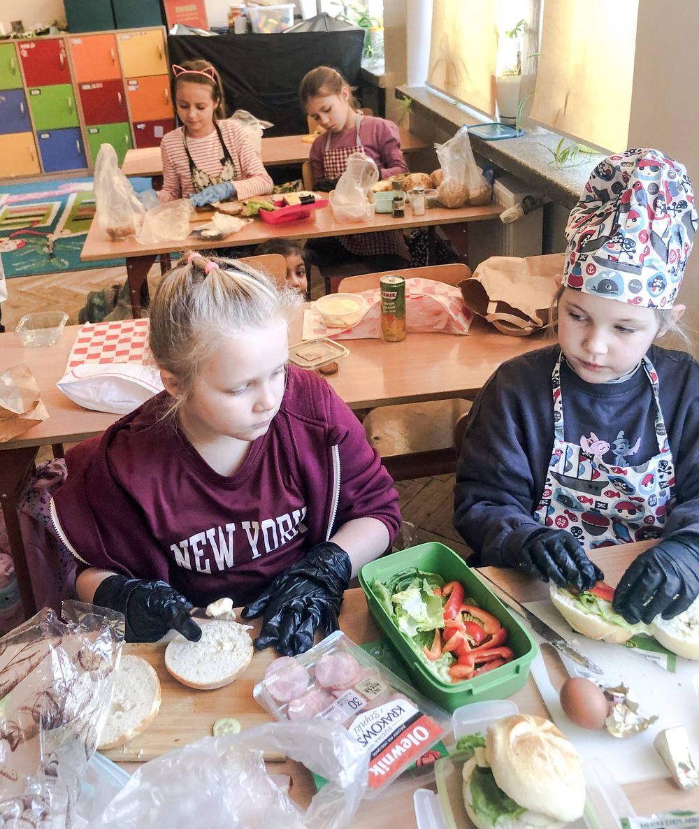 Do południa Szkolny Klub Wolontariatu „Siedmiokąt Pomocy” wsparł dzieci z Przedszkola św. Virginii- Montessori, pomagając im w trzech grupach przygotować aż 100 bułek. Wspólnymi siłami udało się przygotować 557 bułek, które następnie zostały przekazane na Mały Rynek, gdzie w ten weekend obchodzono 9. Światowy Dzień Ubóstwa.
