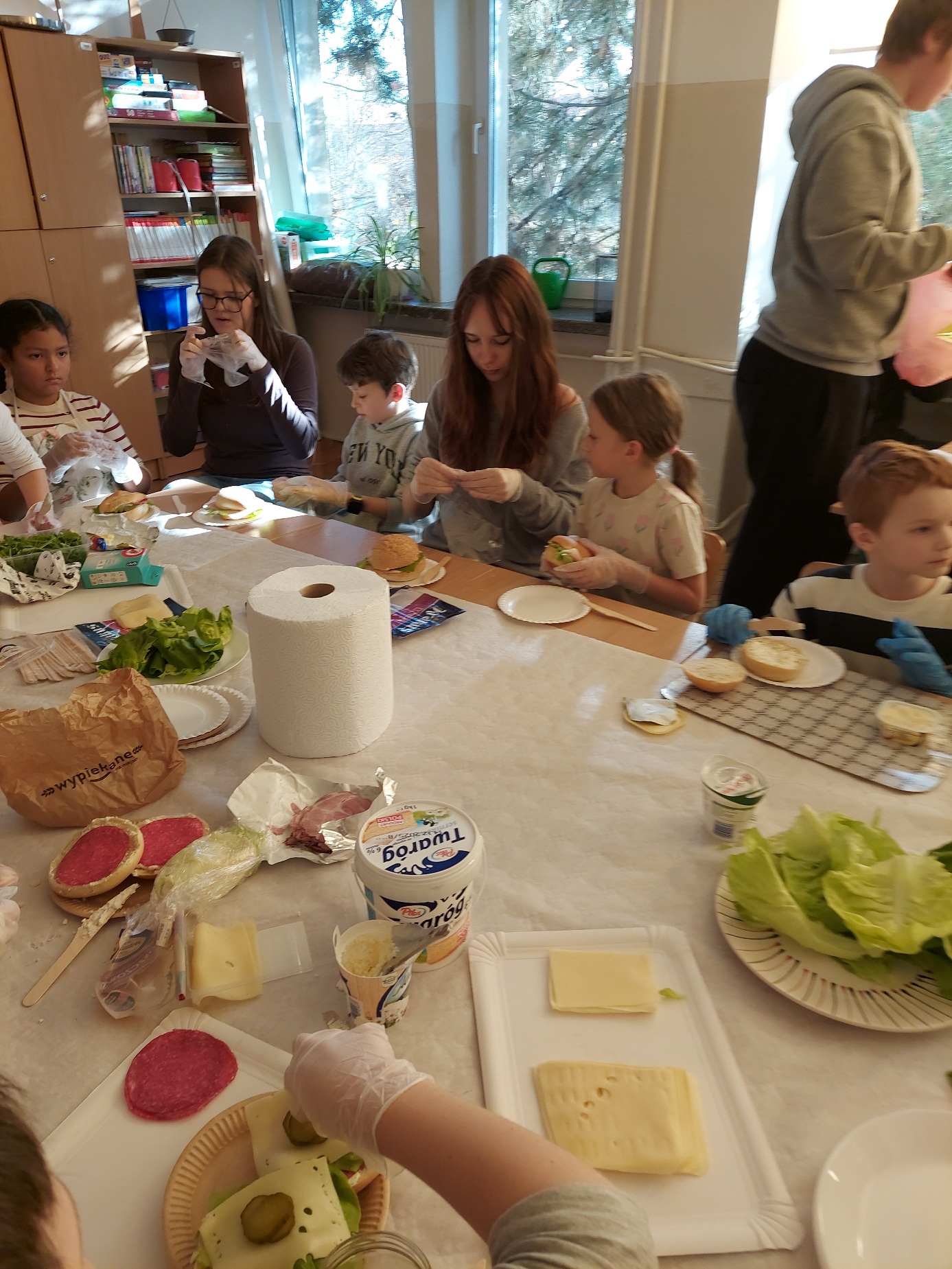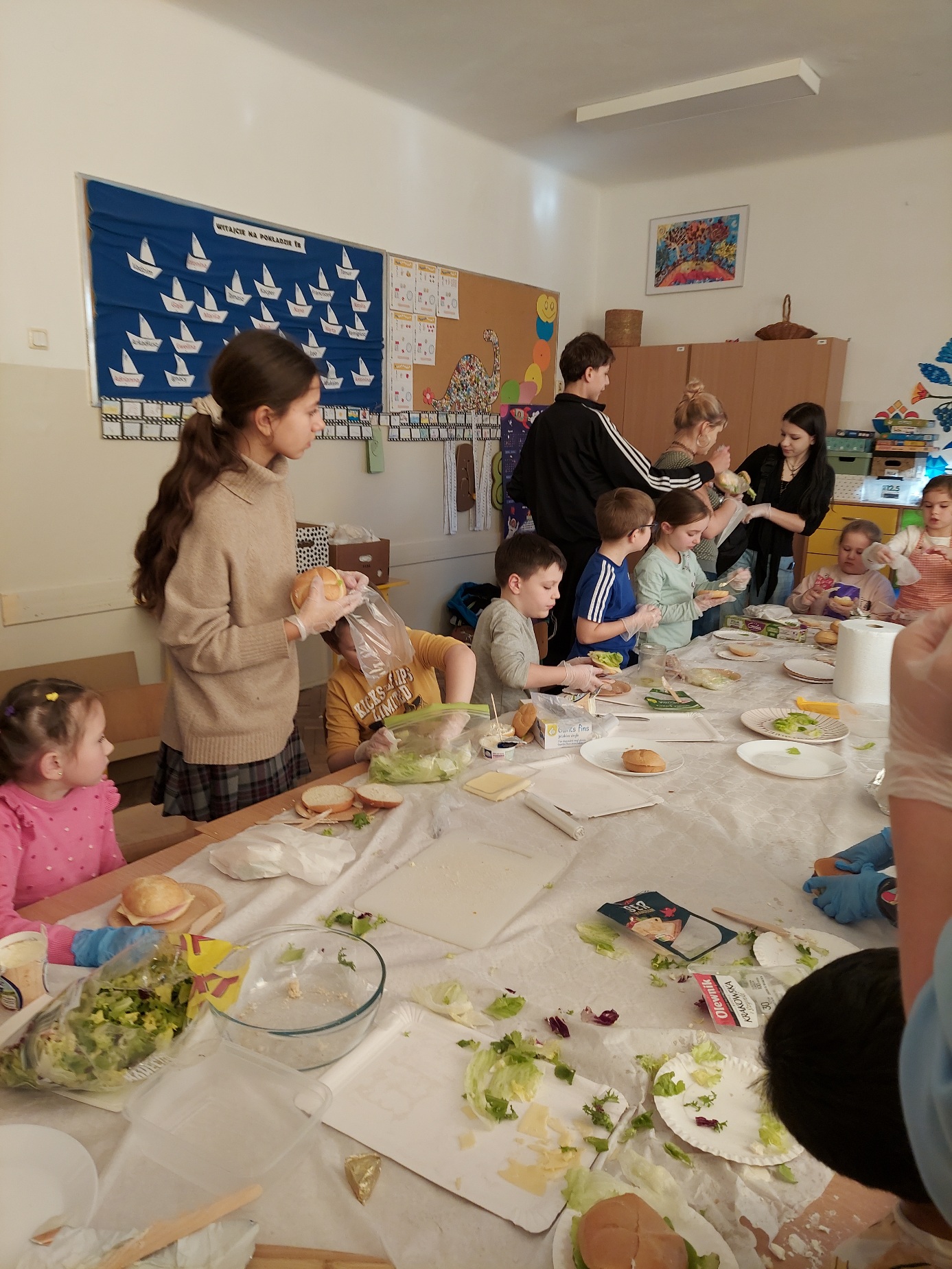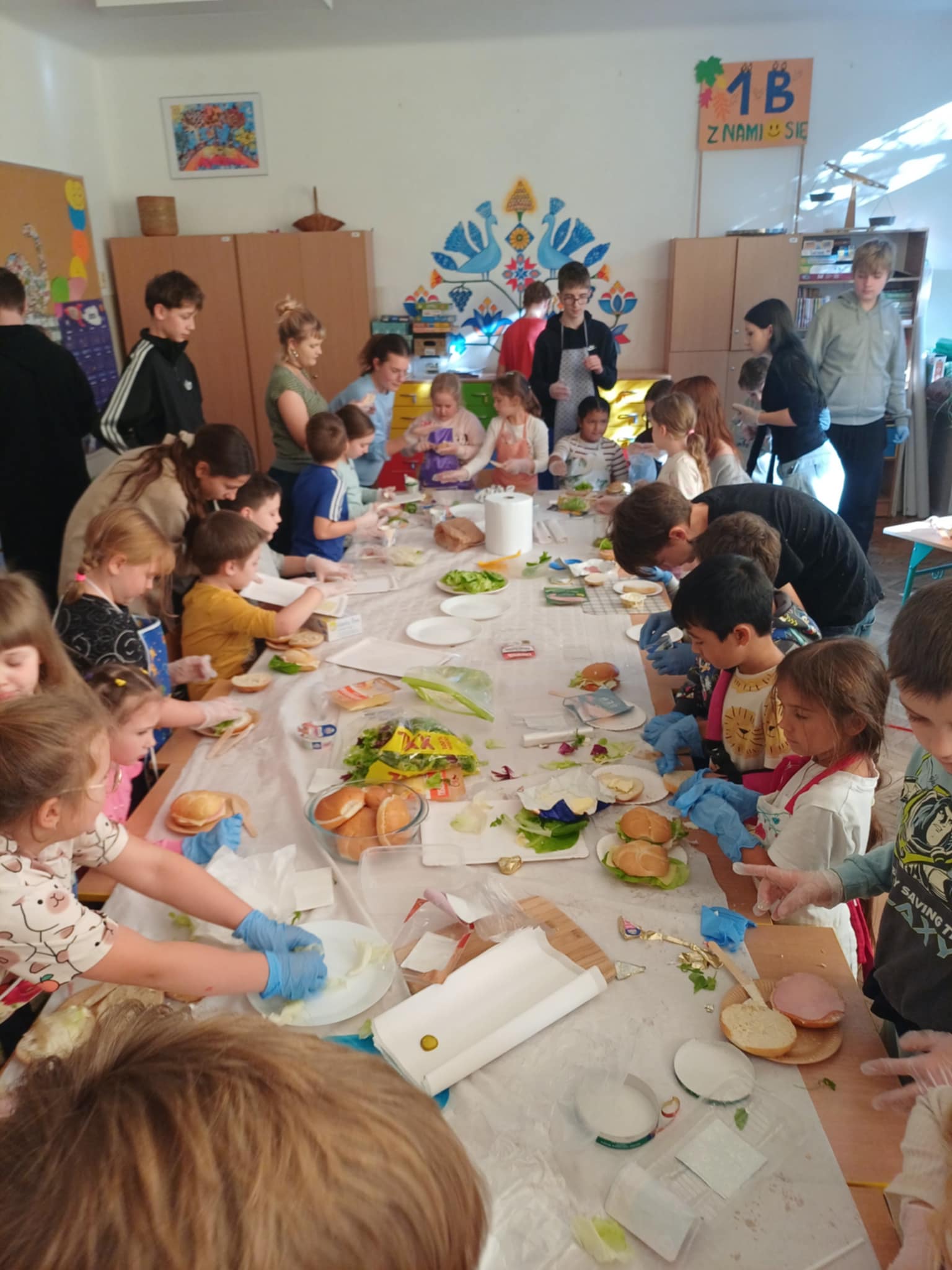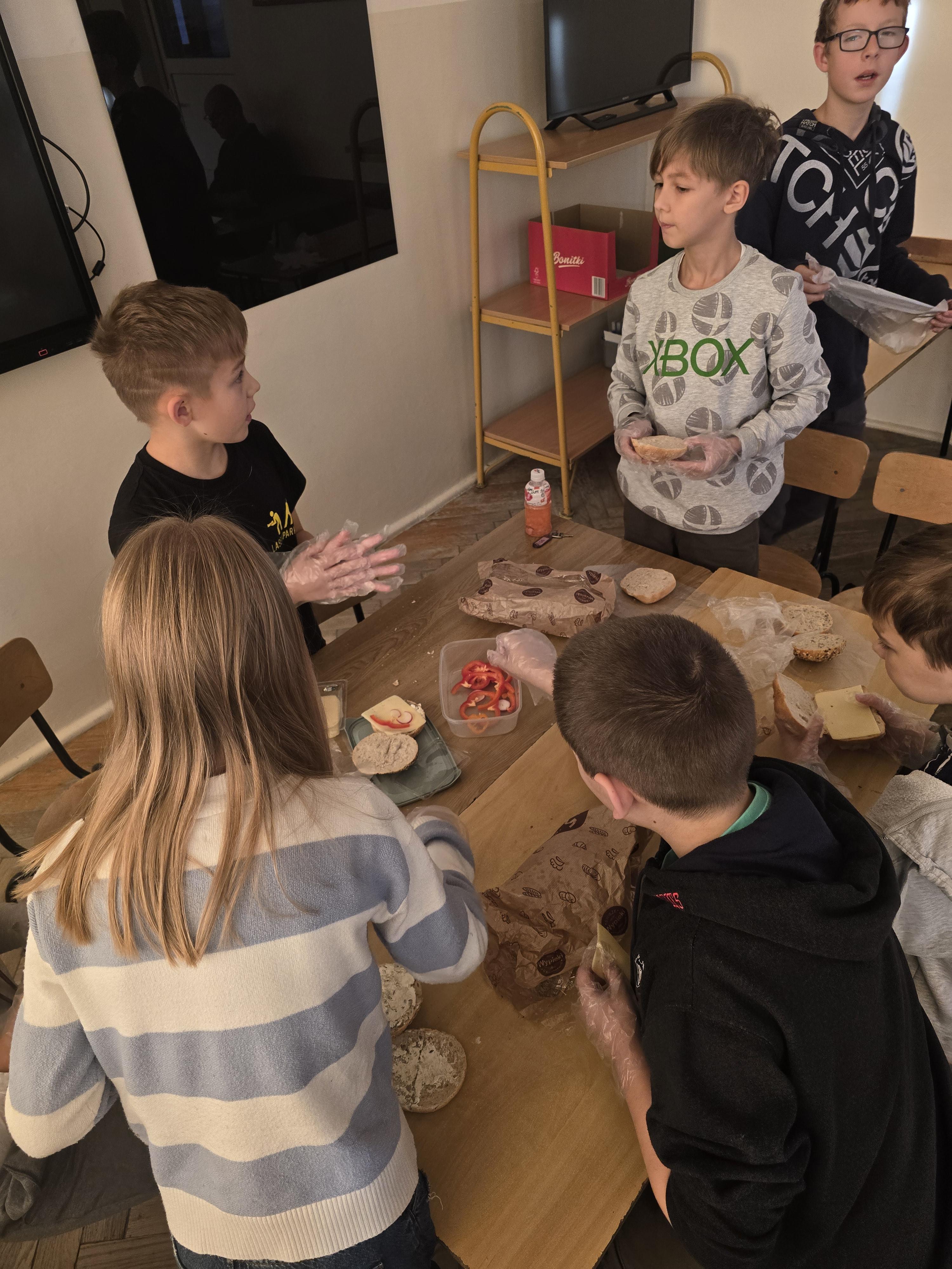 Do południa Szkolny Klub Wolontariatu „Siedmiokąt Pomocy” wsparł dzieci z Przedszkola św. Virginii- Montessori, pomagając im w trzech grupach przygotować aż 100 bułek. Wspólnymi siłami udało się przygotować 557 bułek, które następnie zostały przekazane na Mały Rynek, gdzie w ten weekend obchodzono 9. Światowy Dzień Ubóstwa.