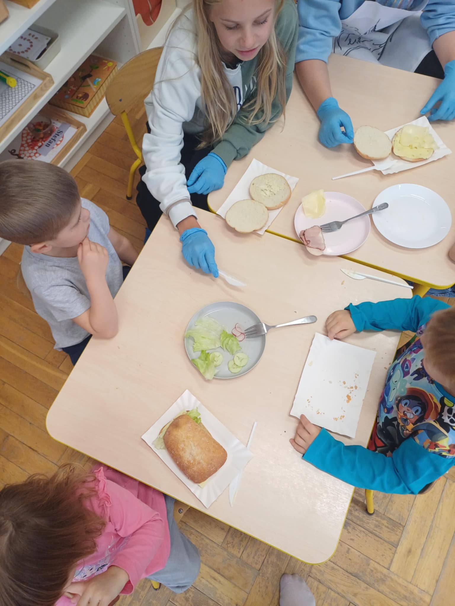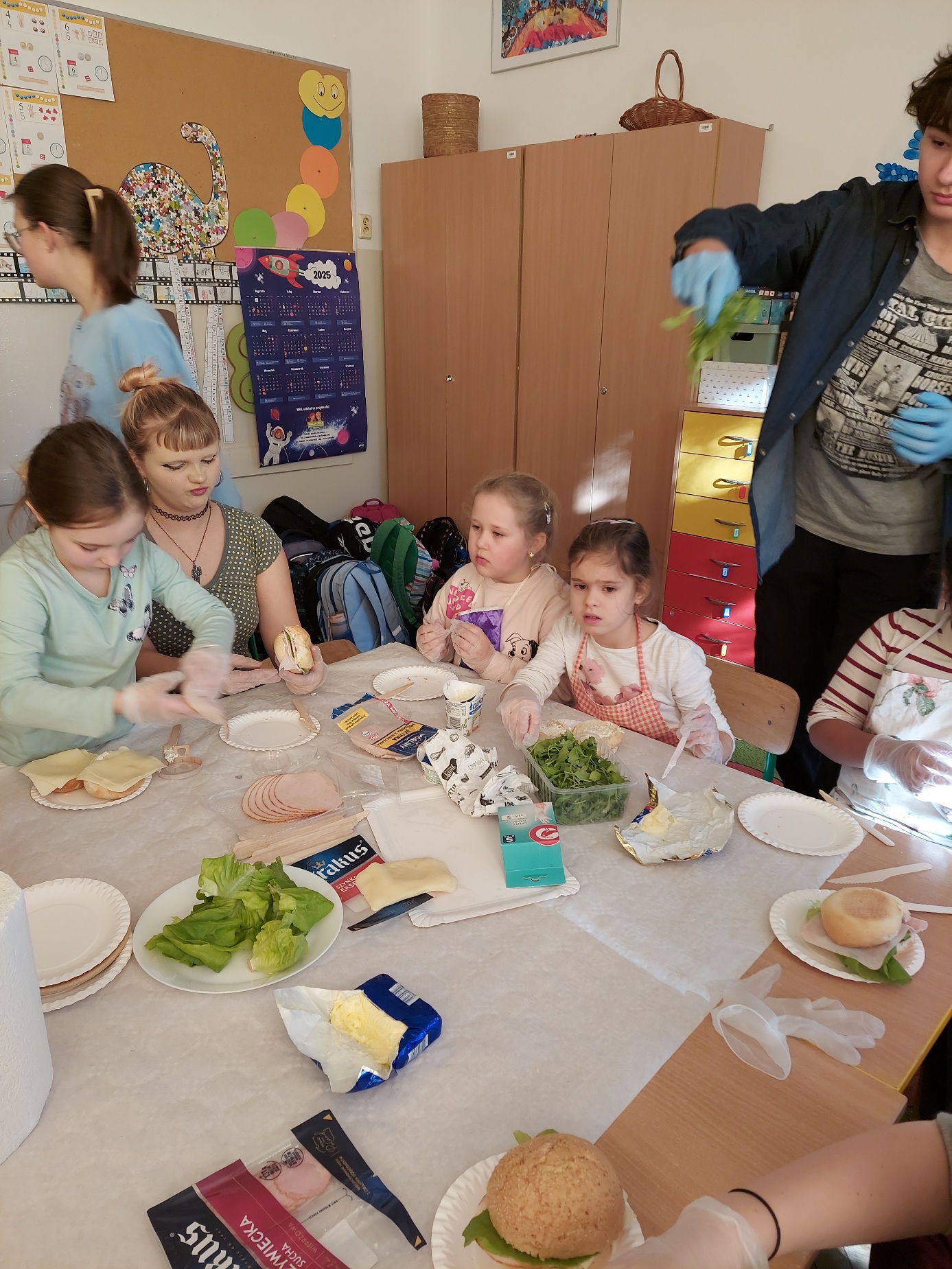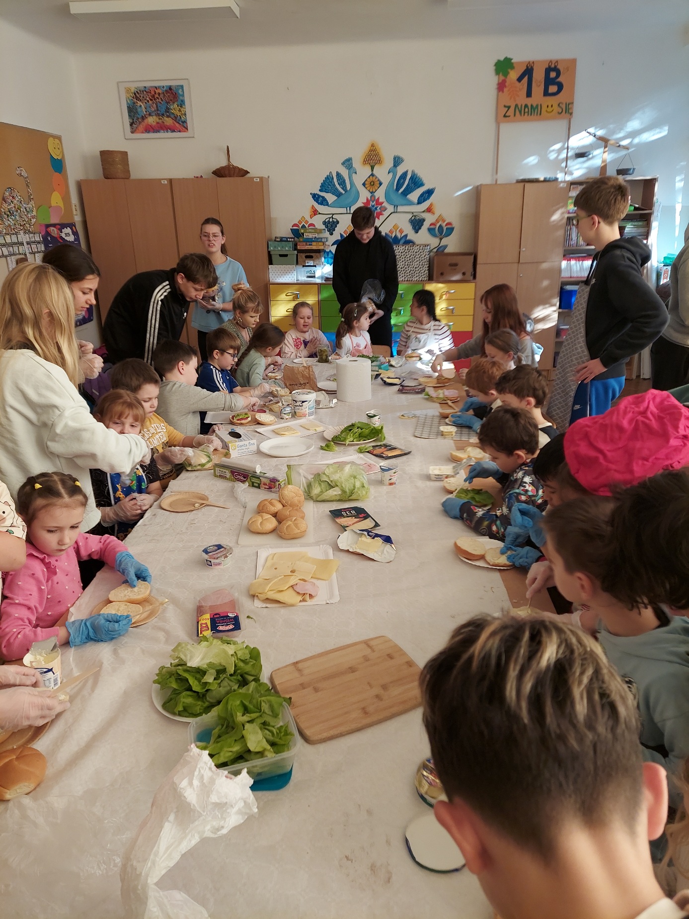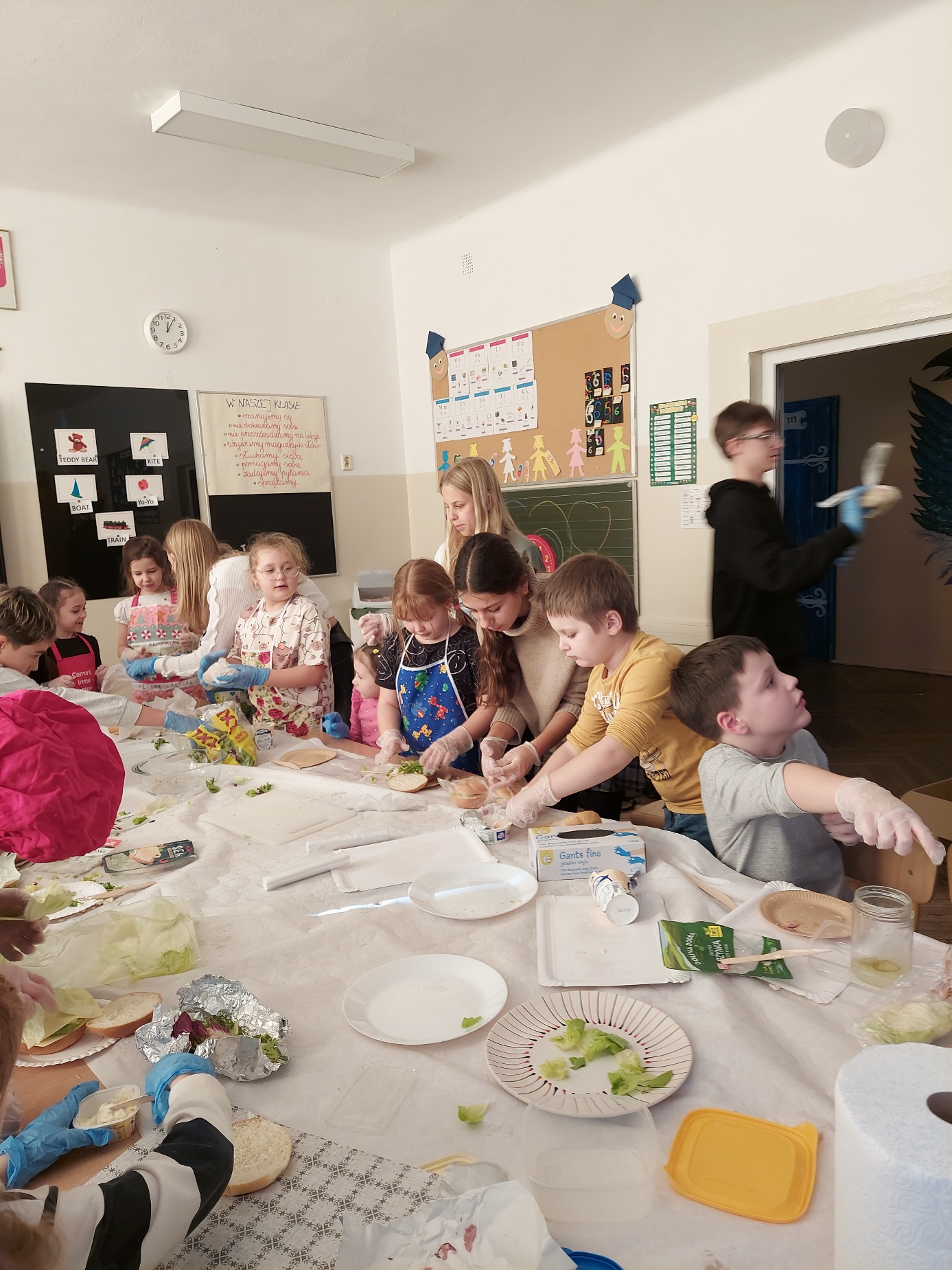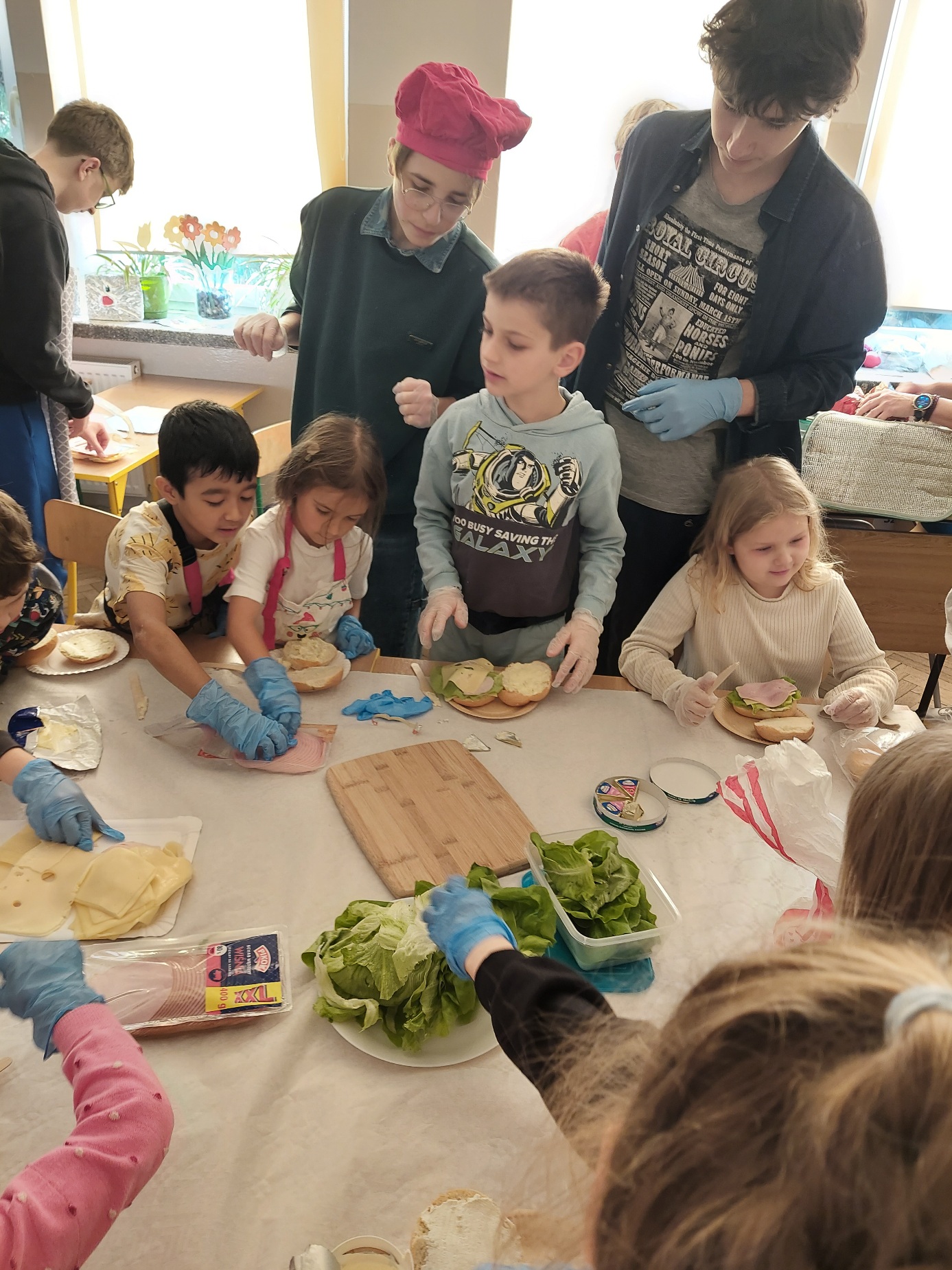 Do południa Szkolny Klub Wolontariatu „Siedmiokąt Pomocy” wsparł dzieci z Przedszkola św. Virginii- Montessori, pomagając im w trzech grupach przygotować aż 100 bułek. Wspólnymi siłami udało się przygotować 557 bułek, które następnie zostały przekazane na Mały Rynek, gdzie w ten weekend obchodzono 9. Światowy Dzień Ubóstwa.