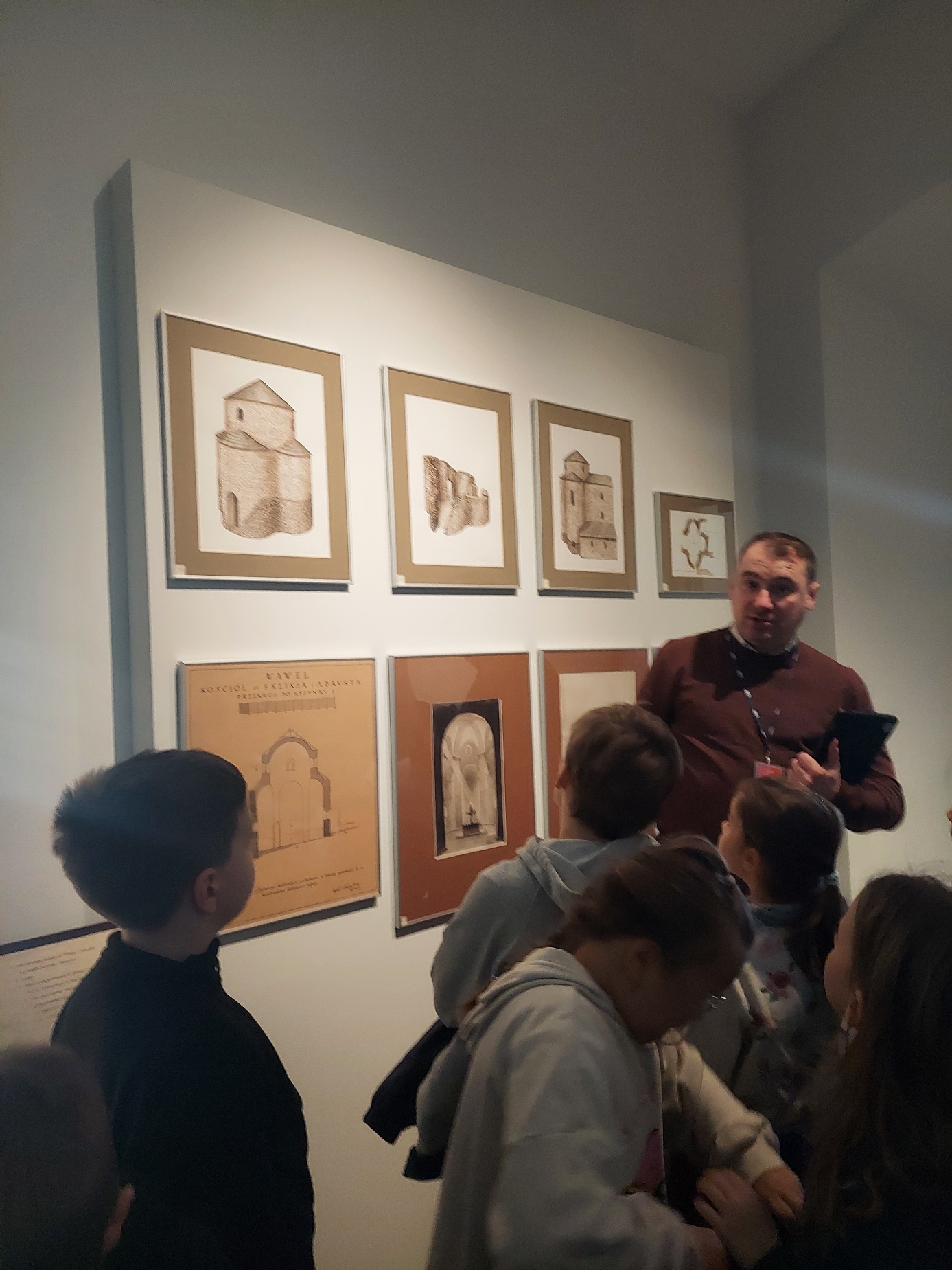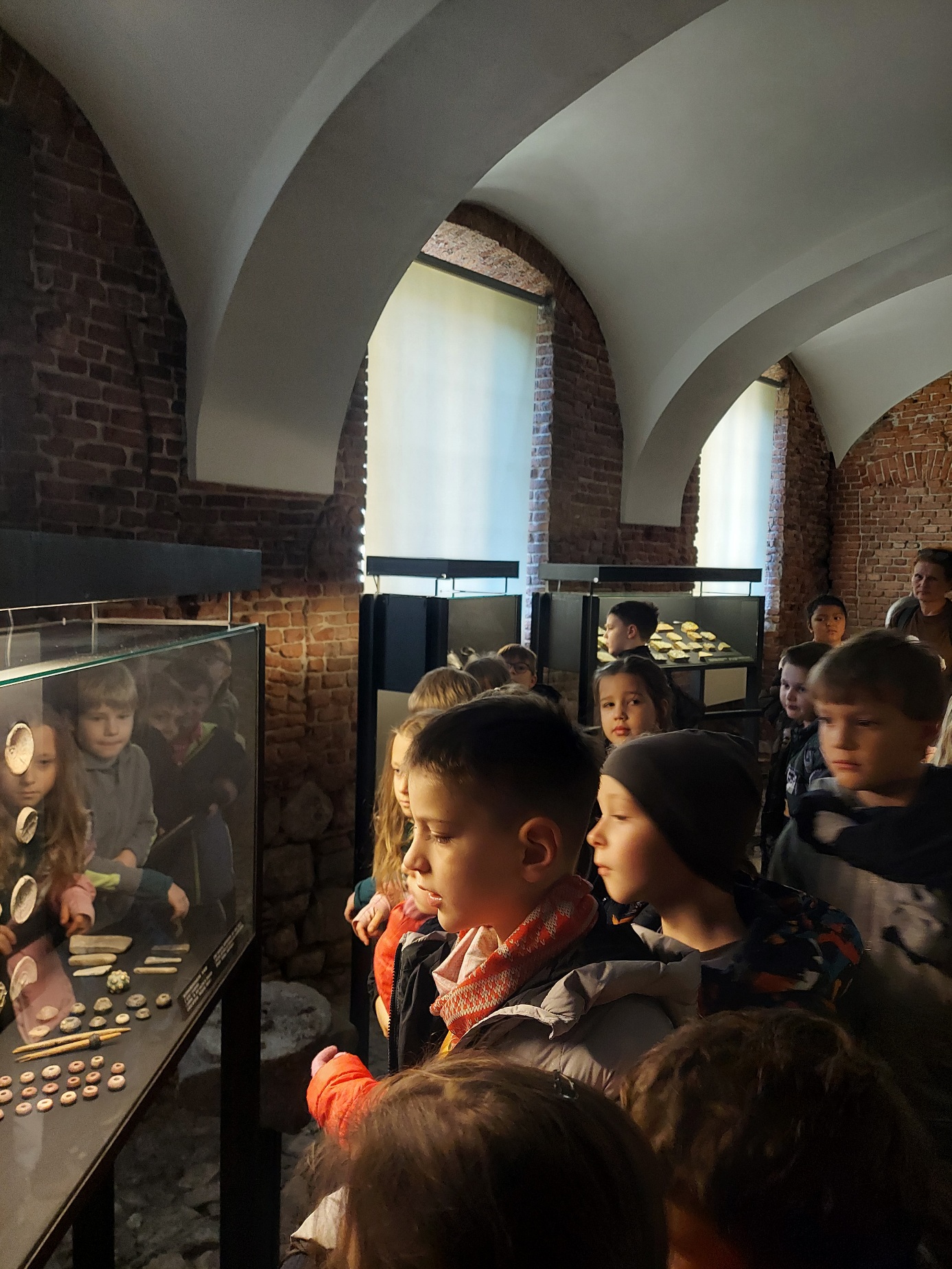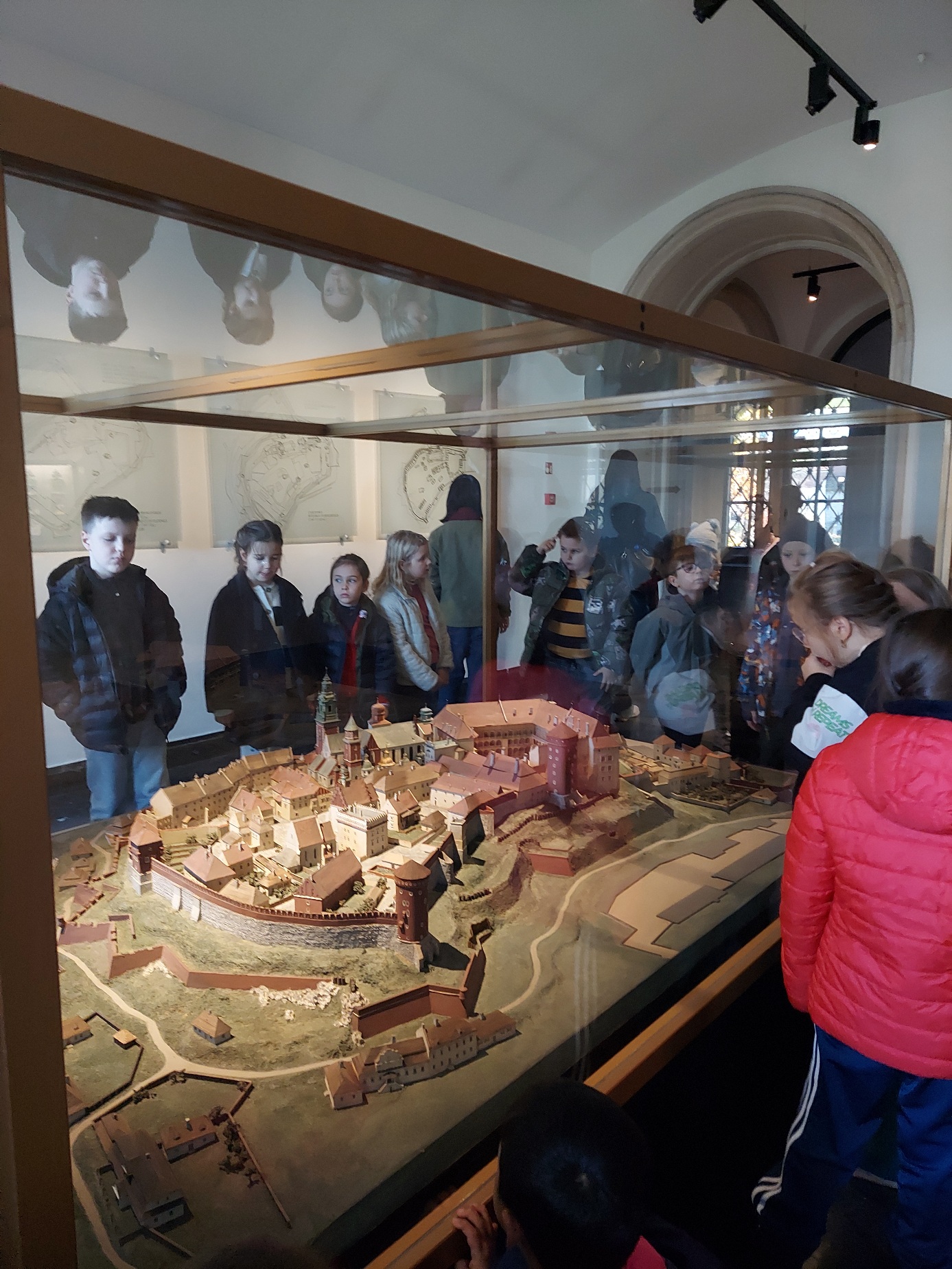 Uczniowie klasy 1b wybrali się na Zamek Wawelski i odbyli podróż w odległe czasy, poznając historię wawelskiego wzgórza. Dzięki pracy archeologów Wawel nie zaginął, ale został odkopany i pokazany zwiedzającym. Na trasie zwiedzania uczniowie zobaczyli najstarszą w Polsce przedromańską, kamienną budowlę, czyli Rotundę św. Feliksa i Adaukta. Interesujący był zbiór kafli z pieców, które znajdowały się w komnatach królewskich. W miejscu kuchni królewskiej można było oglądać oryginalną, ceglaną posadzkę. Liczne wykopaliska archeologiczne umieszczone zostały w gablotach. Wśród niezwykłych eksponatów były żelazne nożyczki, biżuteria, drewniane łyżwy ,grzebienie, igły do szycia, gliniane garnki, zabawki, buty o bardzo małych rozmiarach. Dzieci mogły także obserwować pracę archeologów, którzy aktualnie pracują na wzgórzu wawelskim. Szukają śladów kościołów pod wezwaniem św. Michała i św. Jerzego. Odkrywanie tajemnic nieznanego Wawelu okazało się ciekawą lekcją historii.