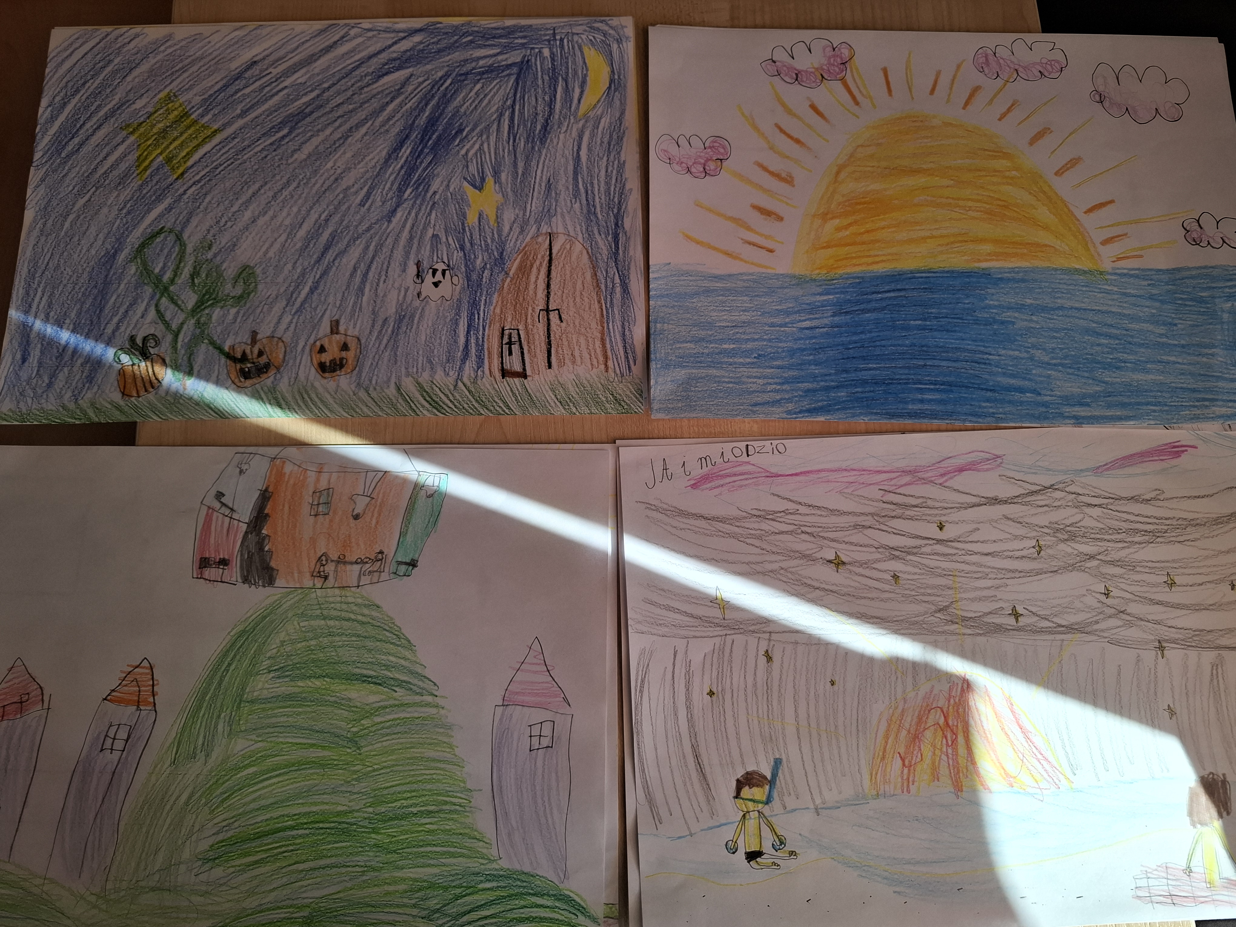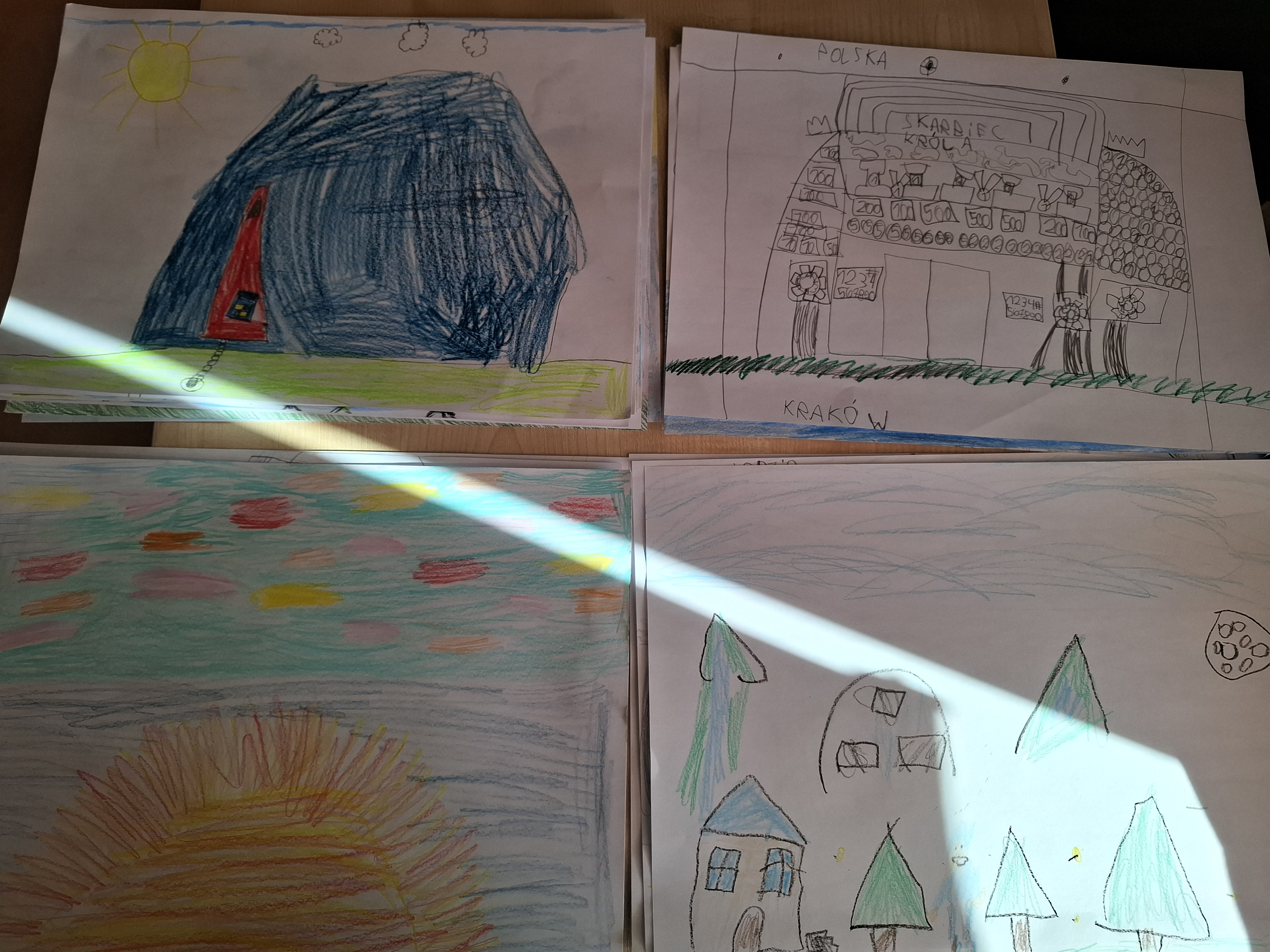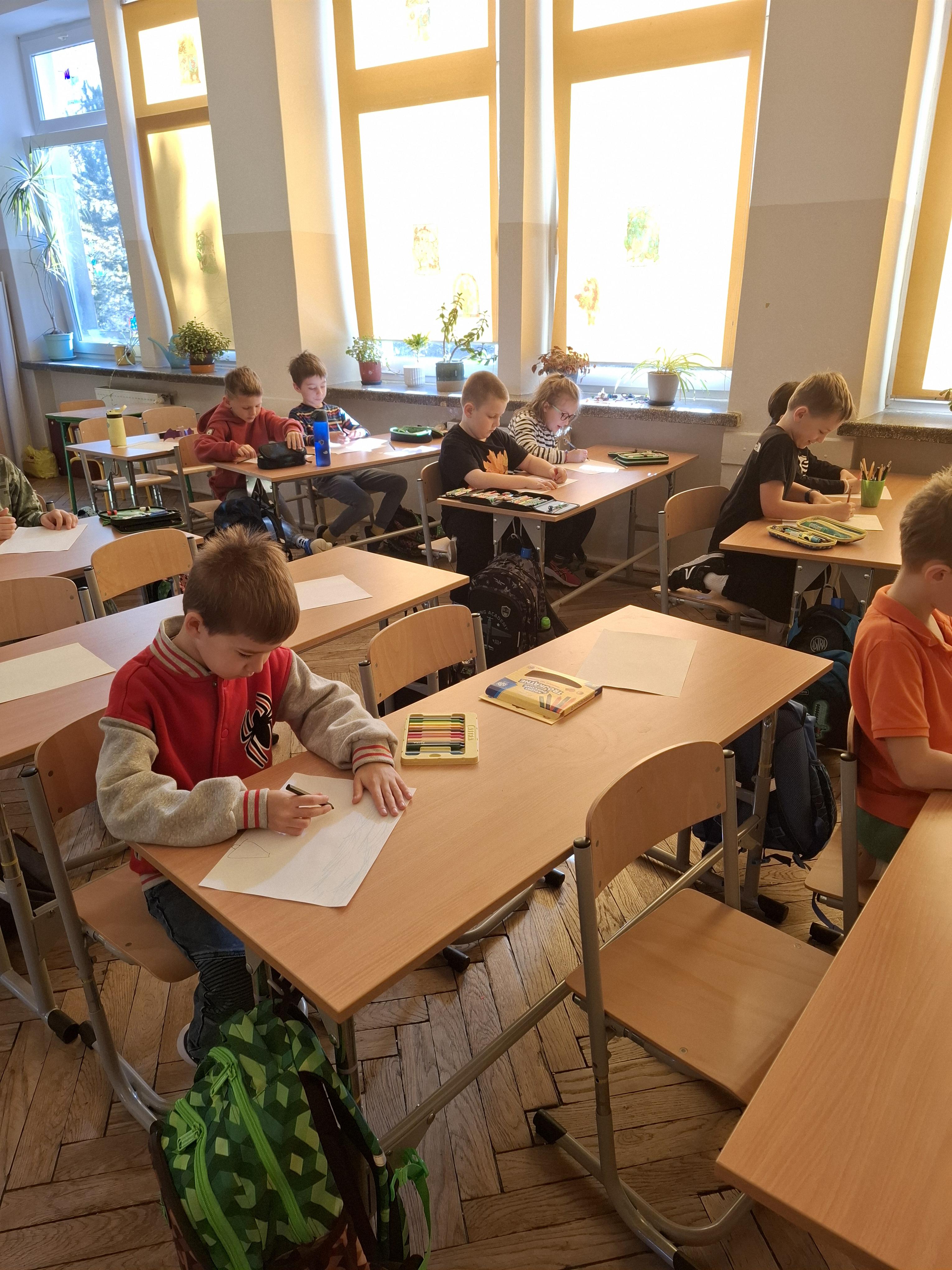 Klasa 1 a zrealizowała kolejny scenariusz projektu "Strażnicy tradycji pt." Z jakich okazji ślemy pocztówki?". Okazuje się, że w dzisiejszych czasach mało kto wysyła kartki z pozdrowieniami czy życzeniami, gdyż najczęściej robimy to za pomocą telefonu czy poczty elektronicznej. Po obejrzeniu krótkiego filmu o historii powstania pocztówek uczniowie zastanawiali się nad głównym pytaniem dzisiejszych zajęć. Ponieważ tekst na nich wysyłany musi być krótki wspólnie ustalaliśmy , co napisać z okazji imienin lub urodzin, co z okazji świąt a jaki tekst zamieścić wysyłając pozdrowienia z wakacji. Pomogły im w tym przyniesione pocztówki napisane przez byłych uczniów z różnej okazji. Następnie pierwszoklasiści przyglądali się, jak należy zaadresować taką pocztówkę, aby dotarła do adresata. Jako pracę plastyczną każdy zaprojektował i wykonał własną pocztówkę, z której stworzony będzie collage i wysłany jako kartka pocztowa do jednej ze szkół w Polsce. Musi być napisana z wykorzystaniem gwary krakowskiej, będzie to więc nie lada wyzwanie dla uczniów.